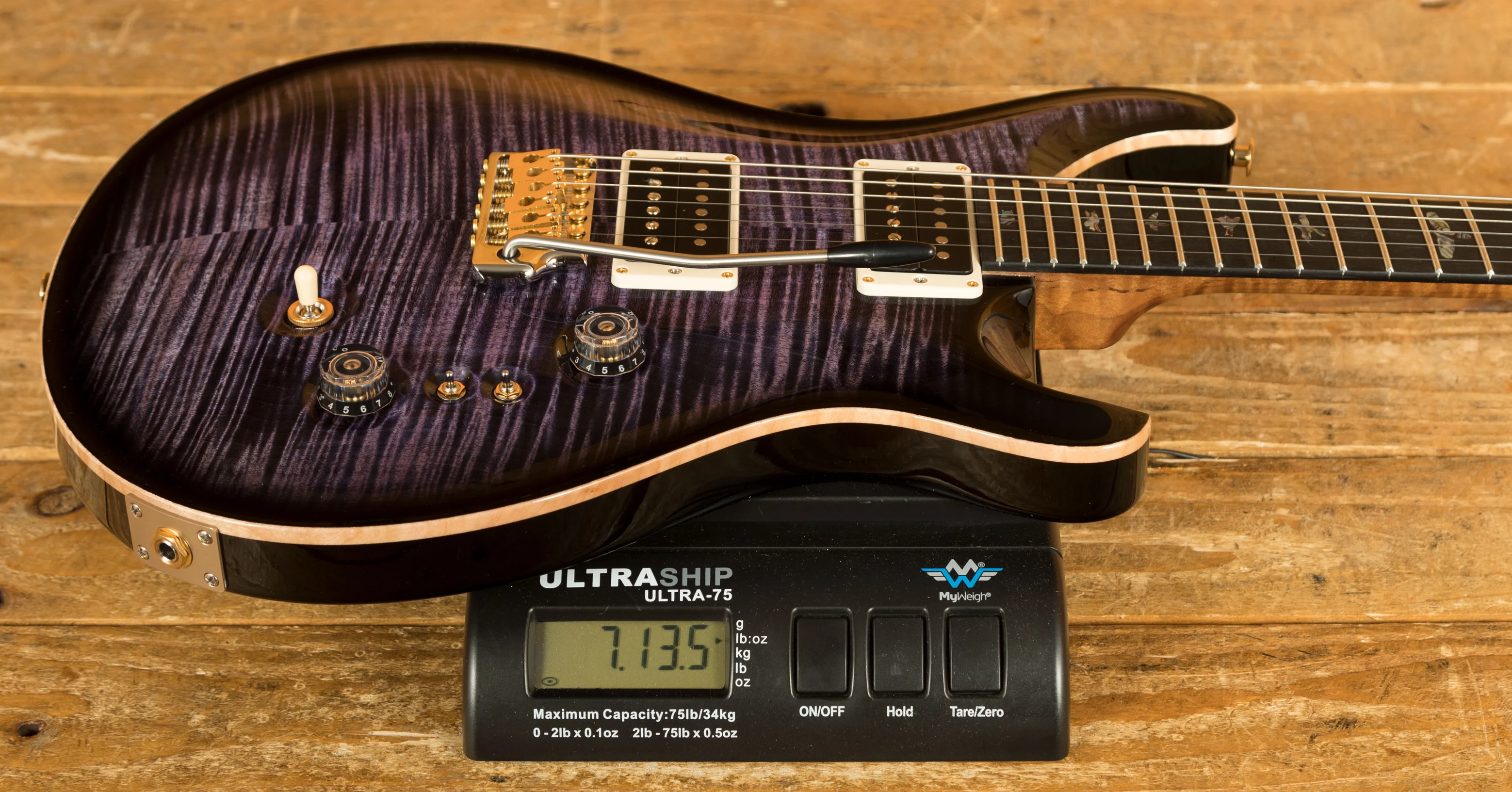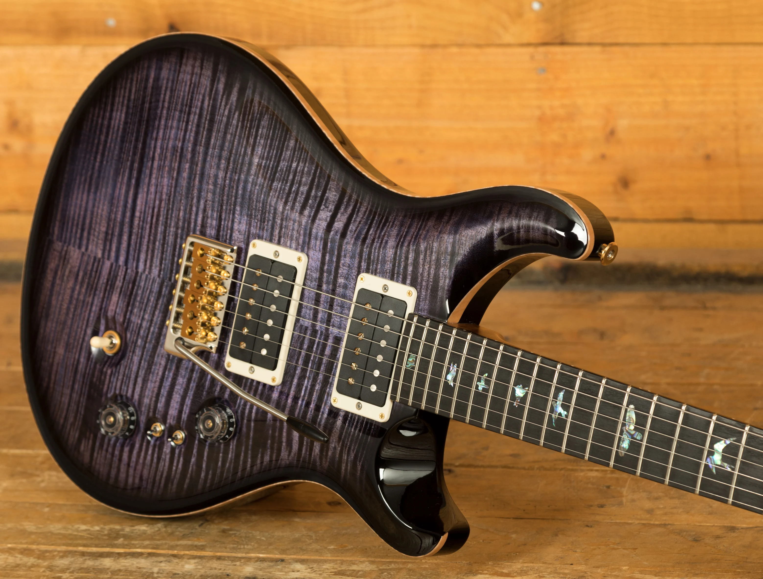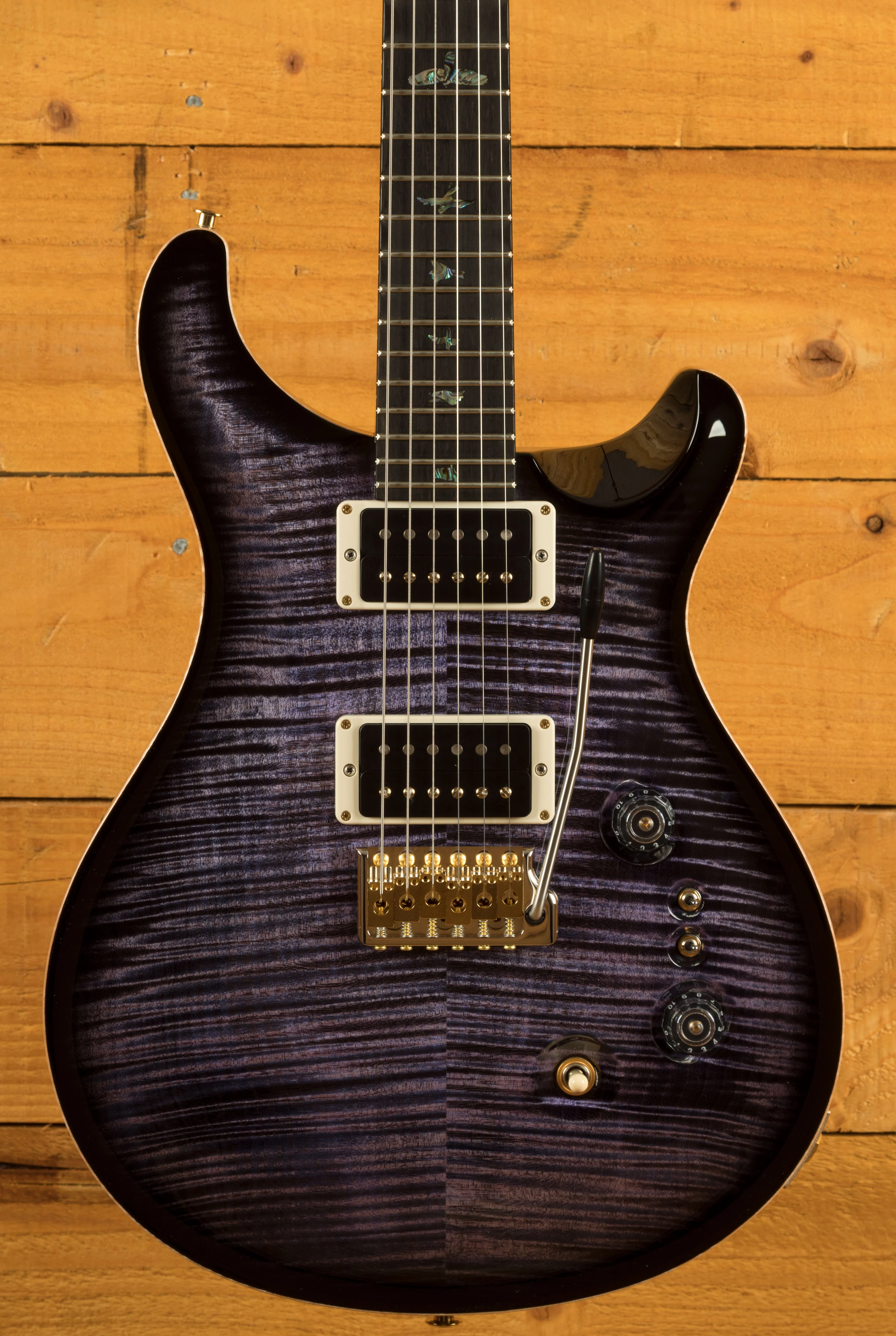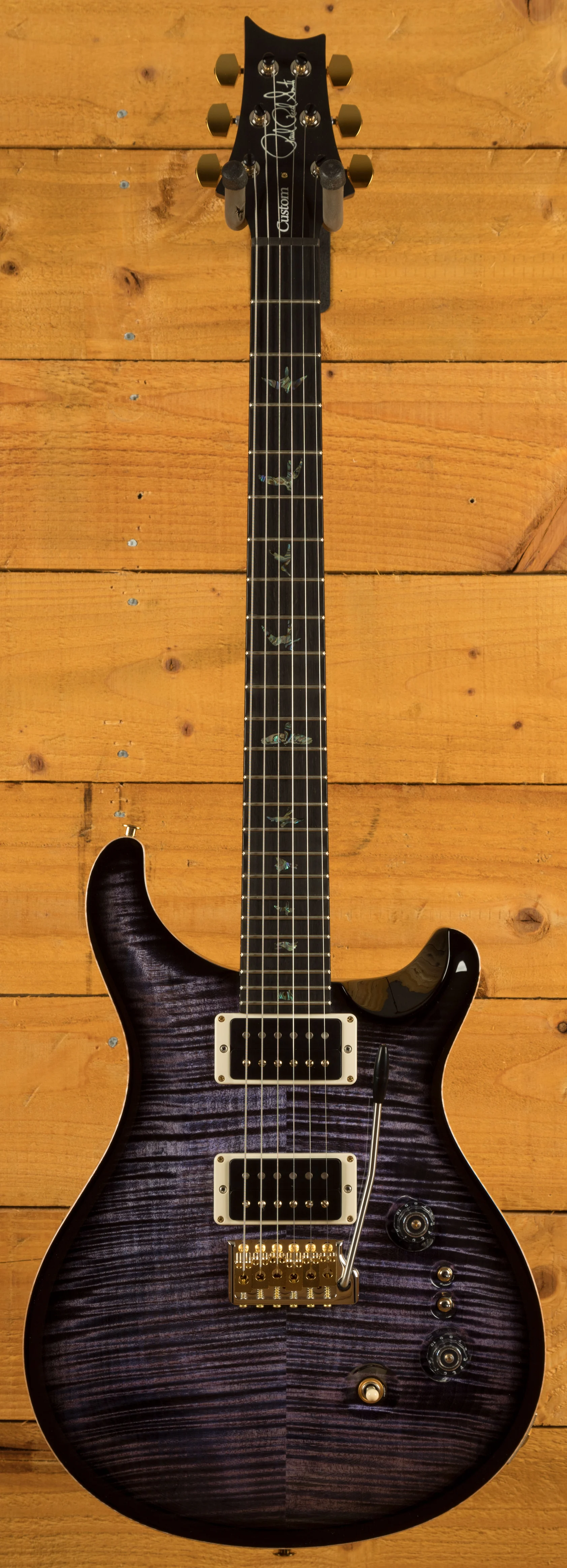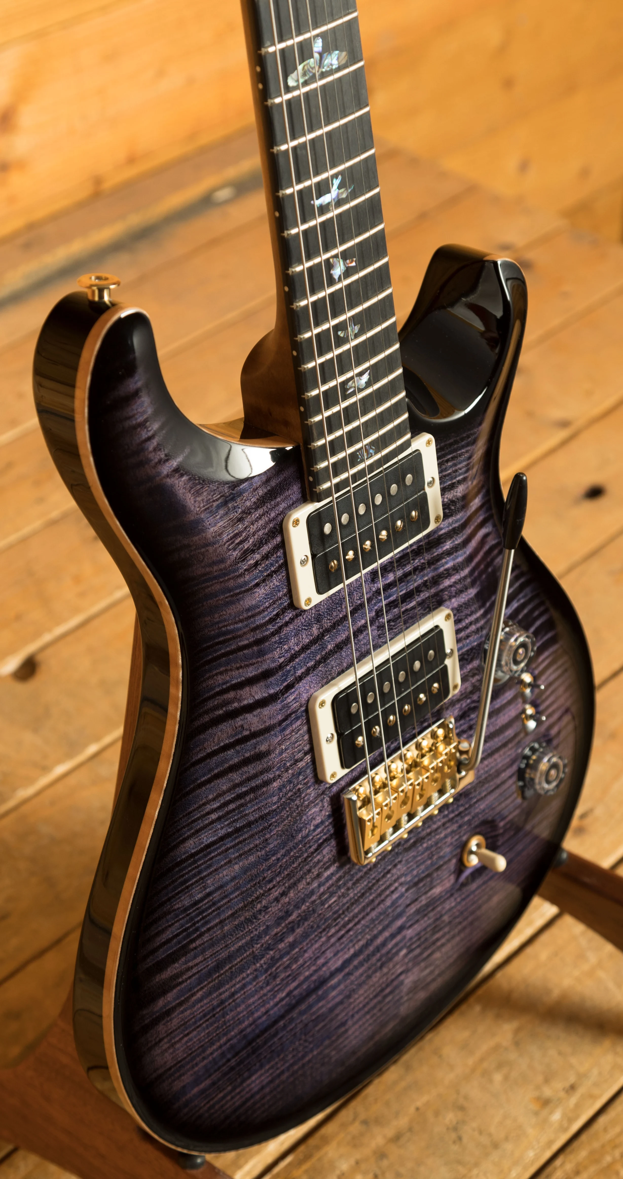 With a stunning carved Wood Library Maple Top and a One-Piece Mahogany back, finished in Purple Mist the Custom 24-08 looks every bit as good as it sounds.