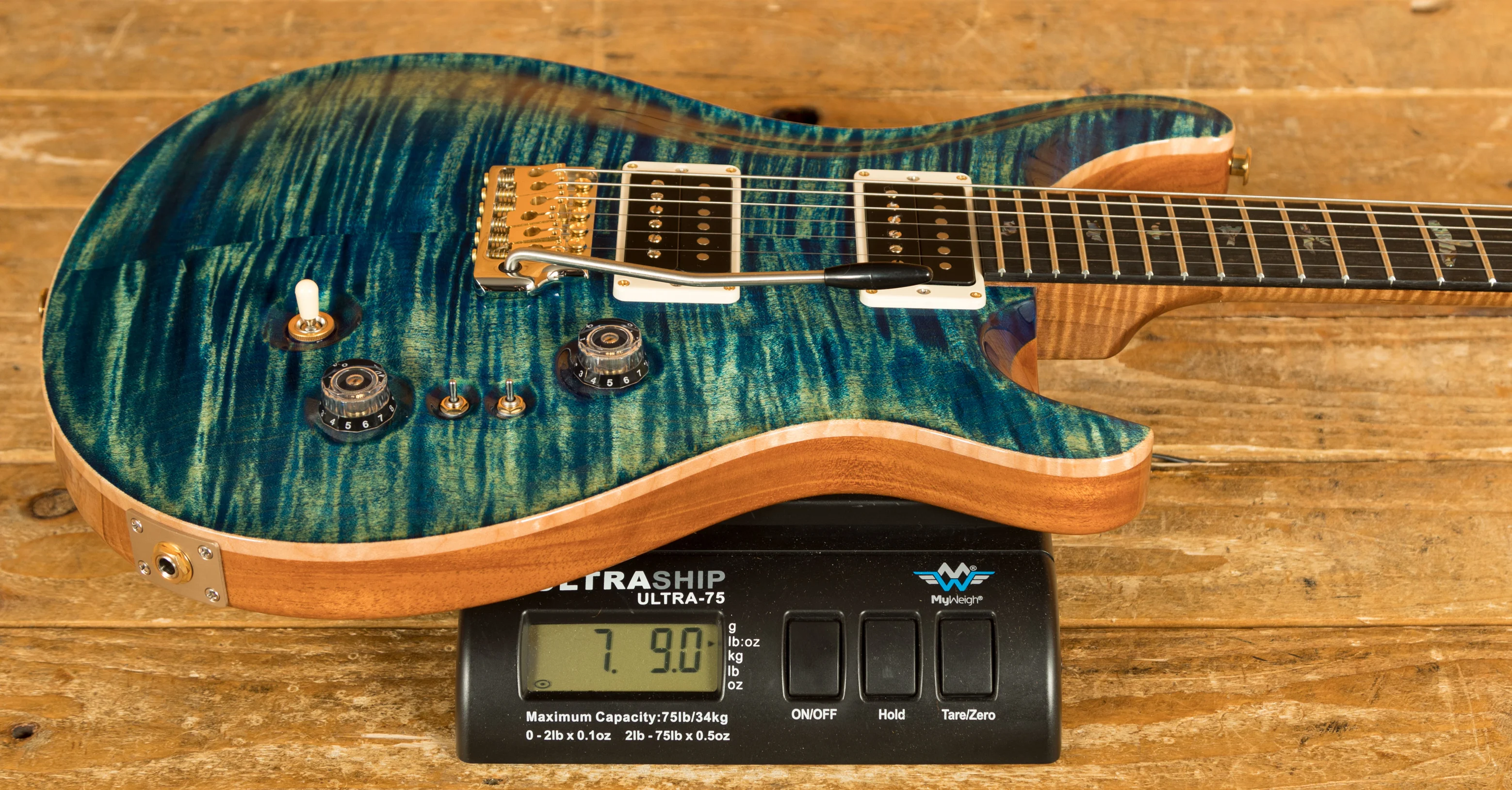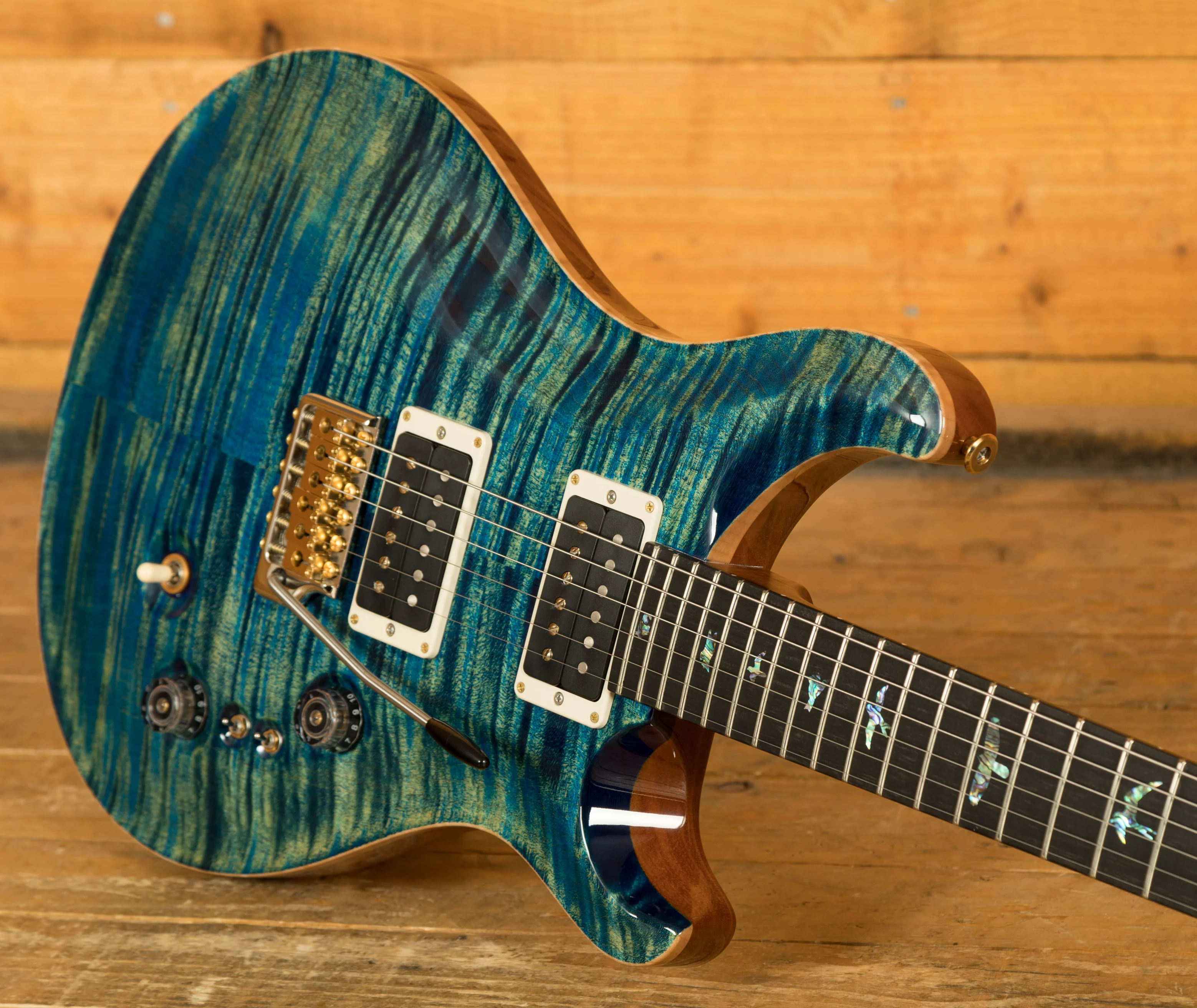With a stunning carved Wood Library Maple Top and a One-Piece Mahogany back, finished in River Blue the Custom 24-08 looks every bit as good as it sounds.
