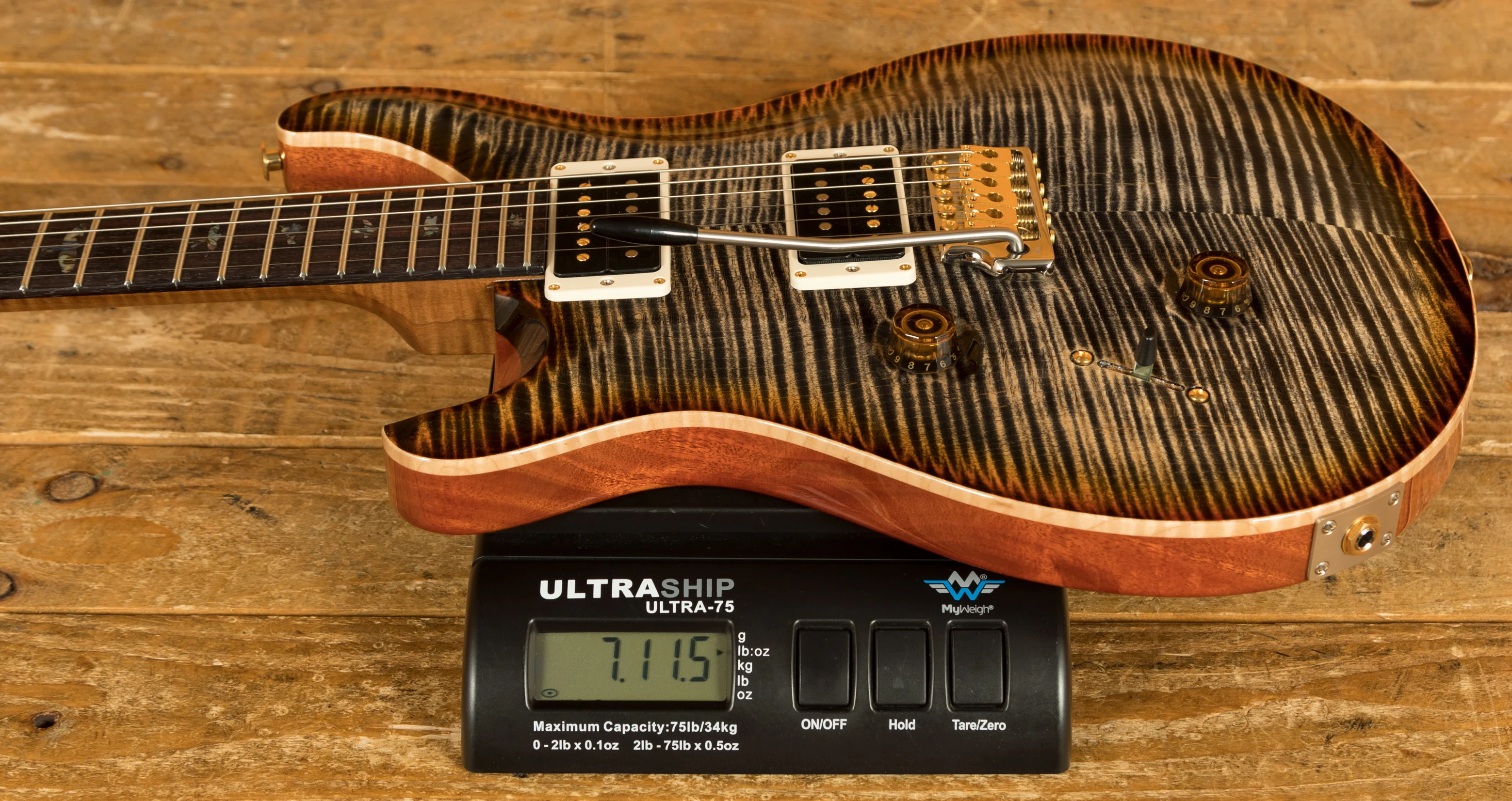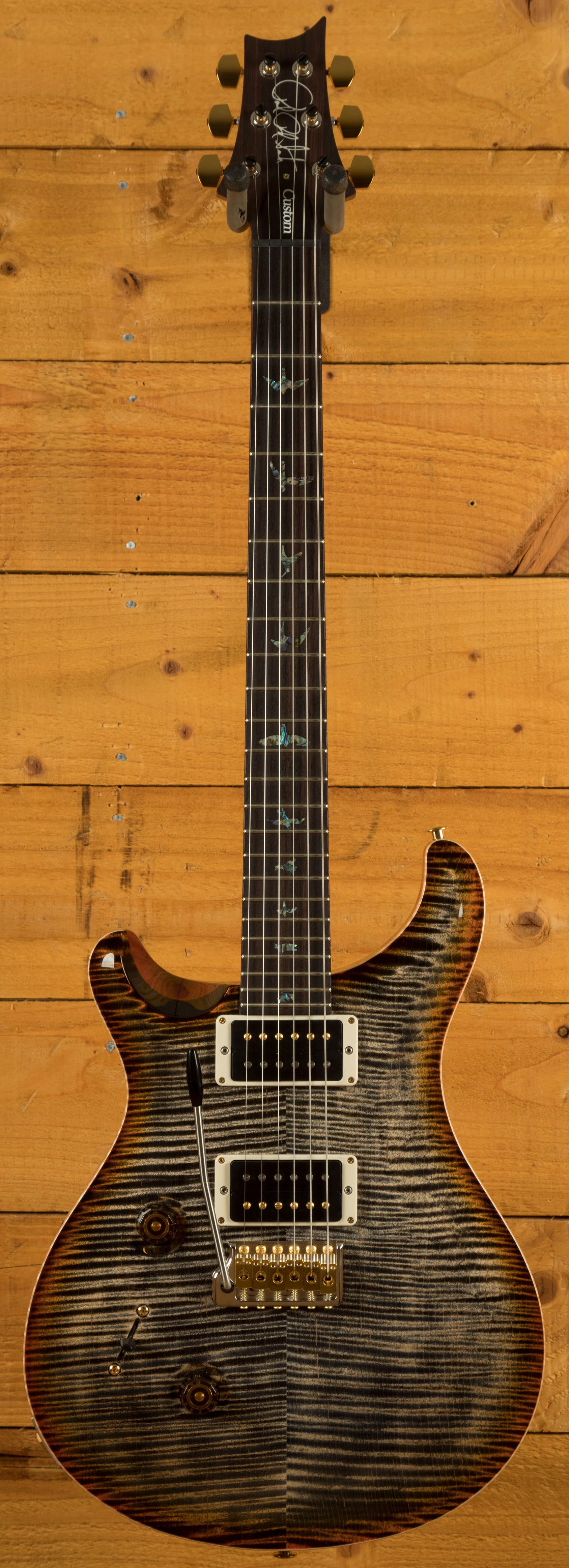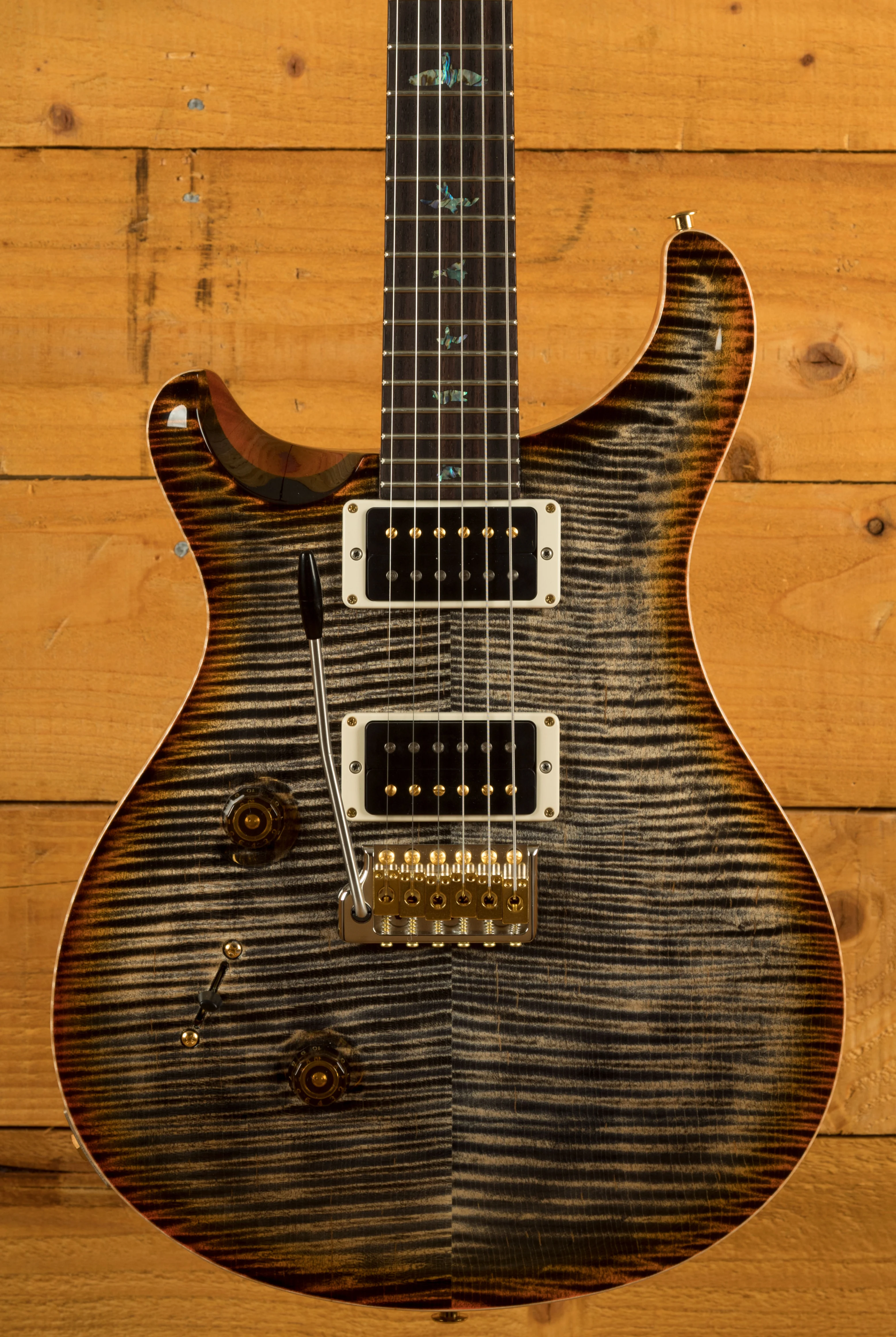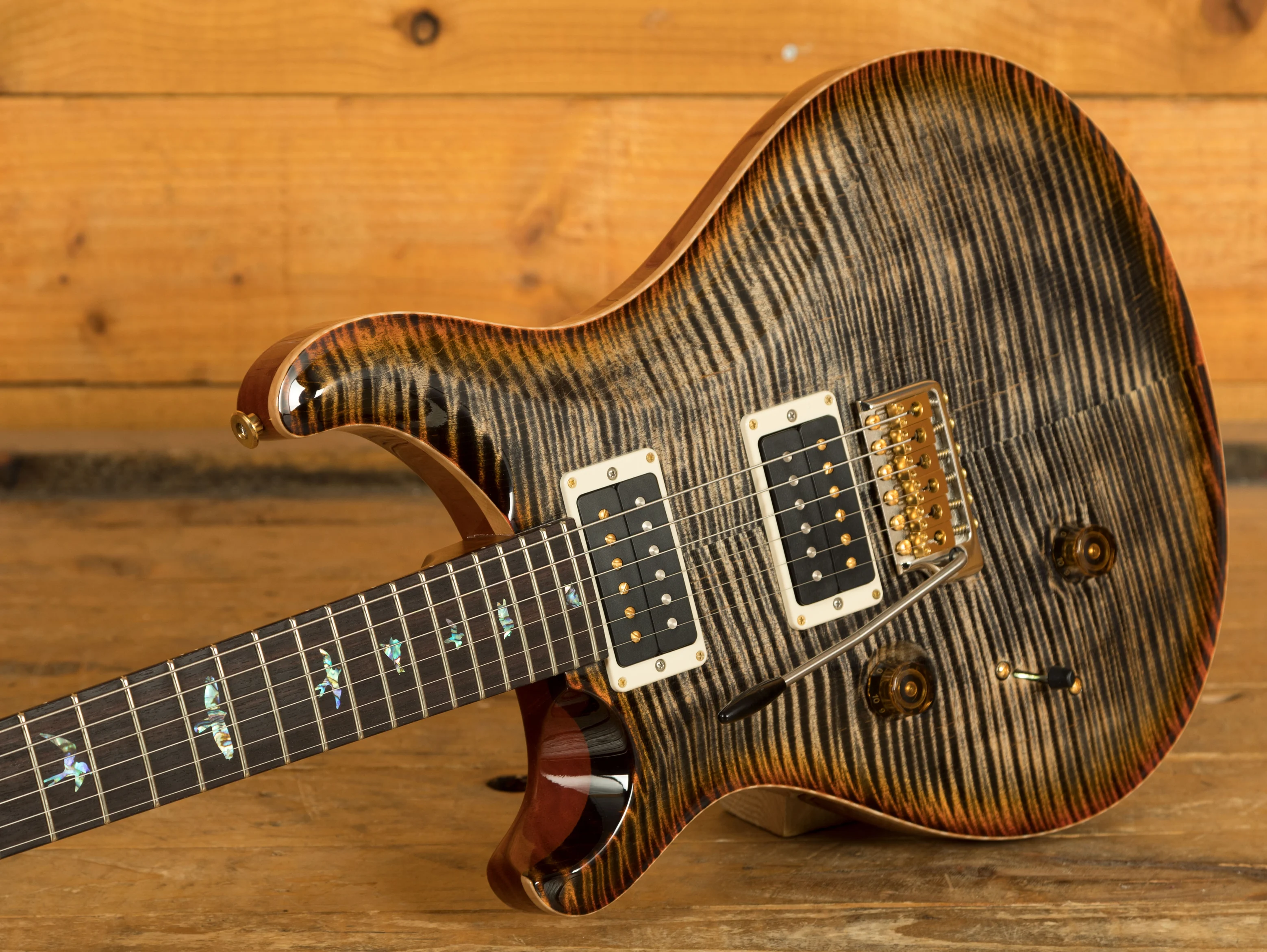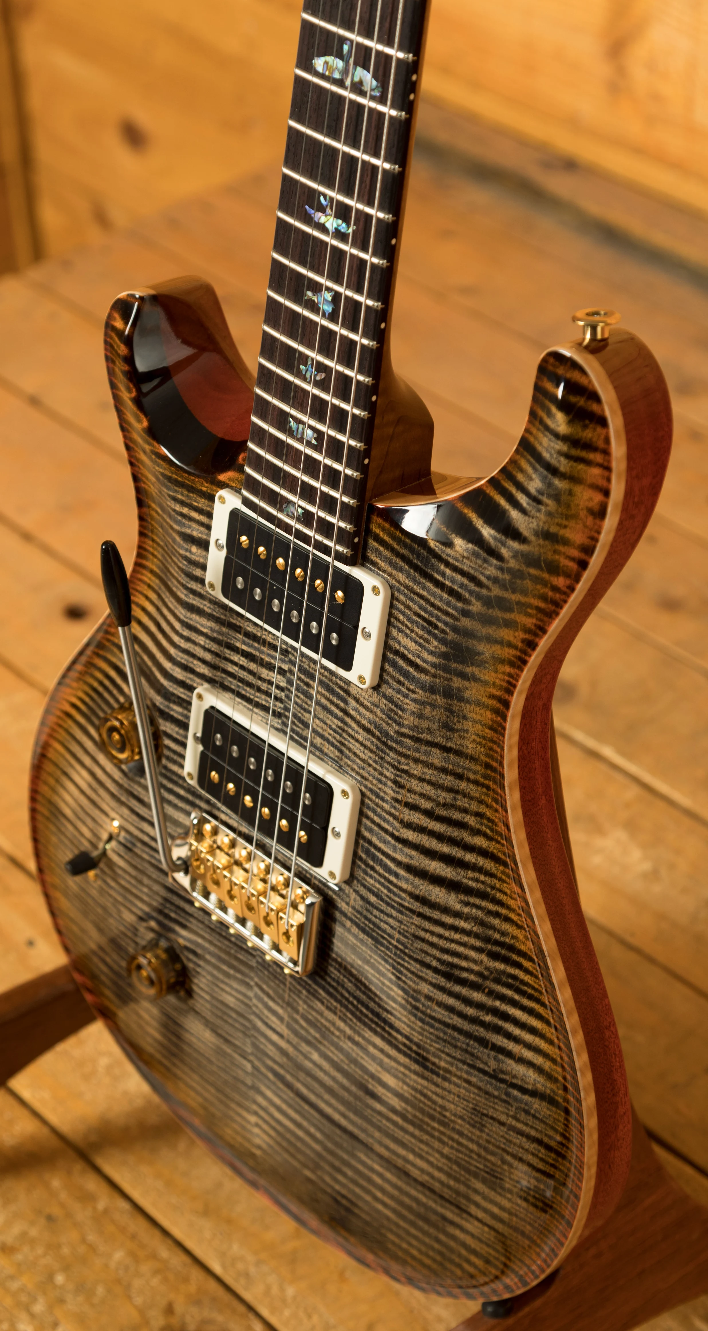 With a stunning carved Wood Library Maple Top and a One-Piece Mahogany back, finished in Burnt Maple Leaf the Custom 24 looks every bit as good as it sounds.