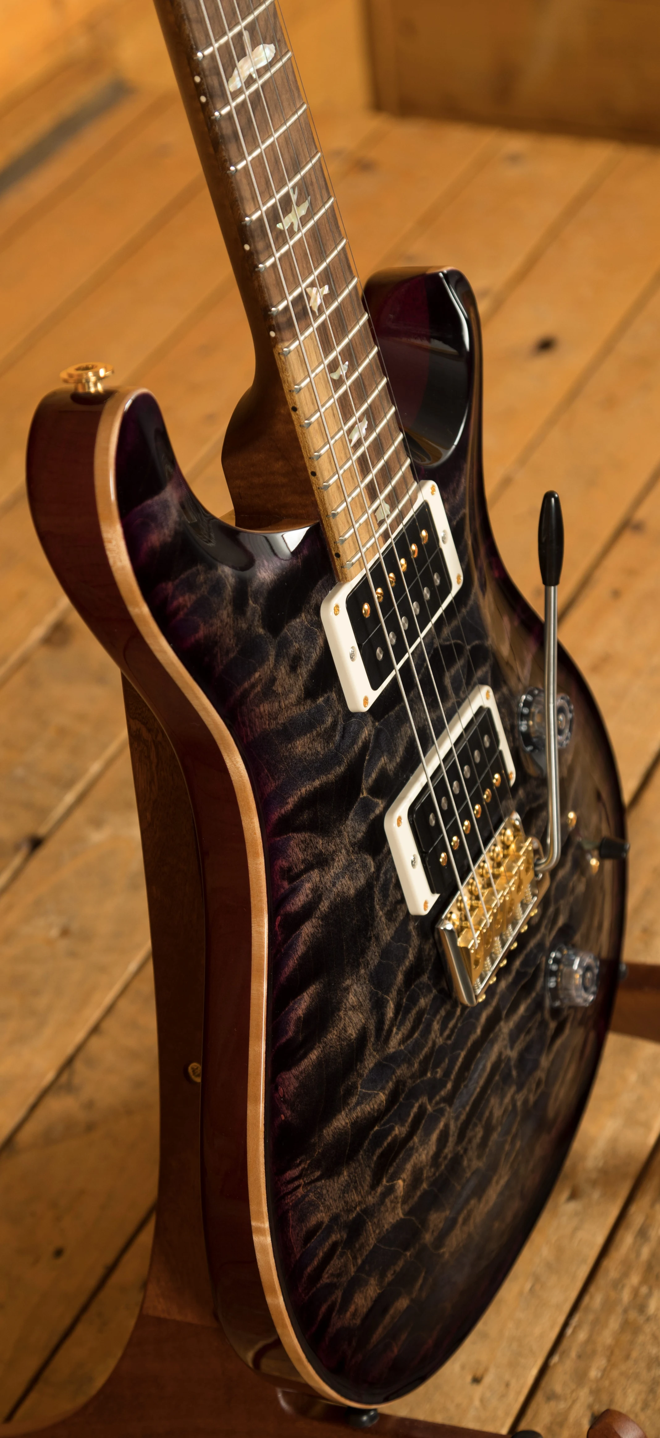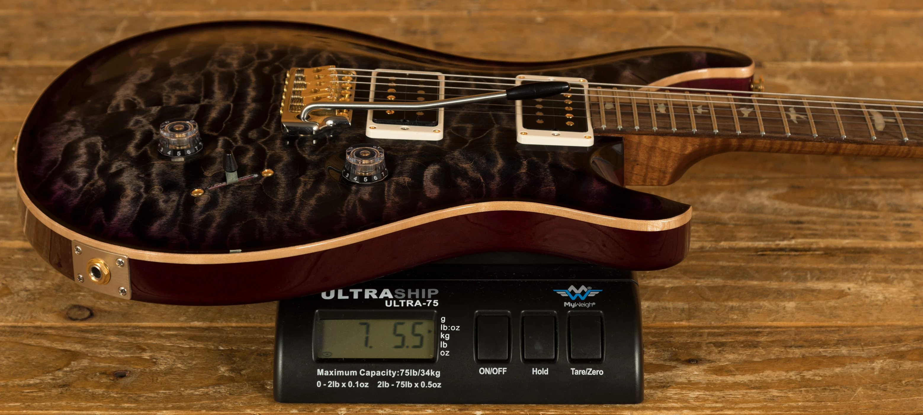 With an incredible 10 top quilt maple top finished in the gorgeous Charcoal Purpleburst finish it's a visually striking guitar. The Mahogany body really enhances the tonal palette of this guitar, allowing for great sustain and resonance, this guitar really sings!
