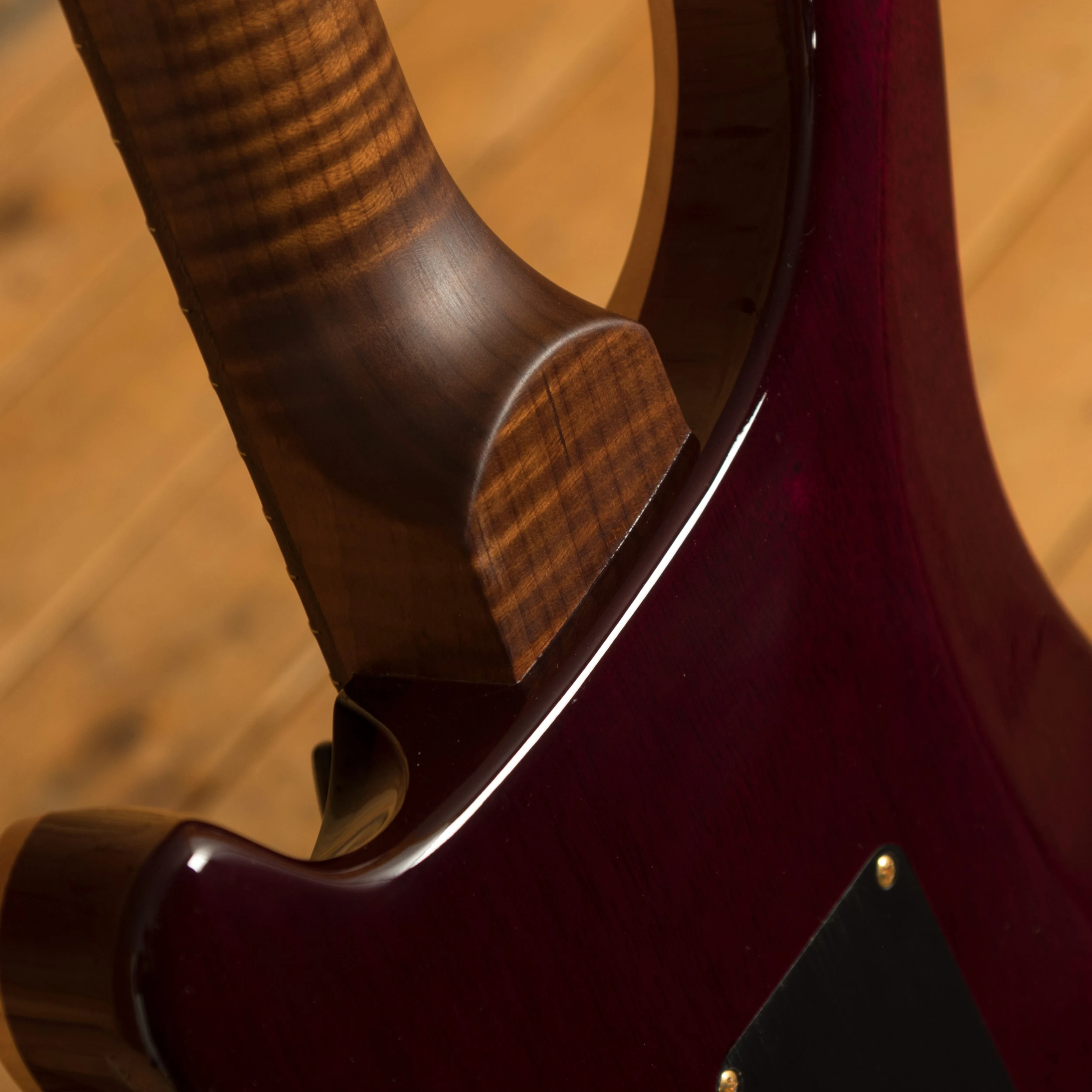The neck on this guitar is truly incredible, a pattern thin satin roasted flame maple neck boasts a Ziricote fingerboard bearing the classic Old School bird inlays and offers a comfortable and stable performance. This combination and finish of neck is striking and breathtaking