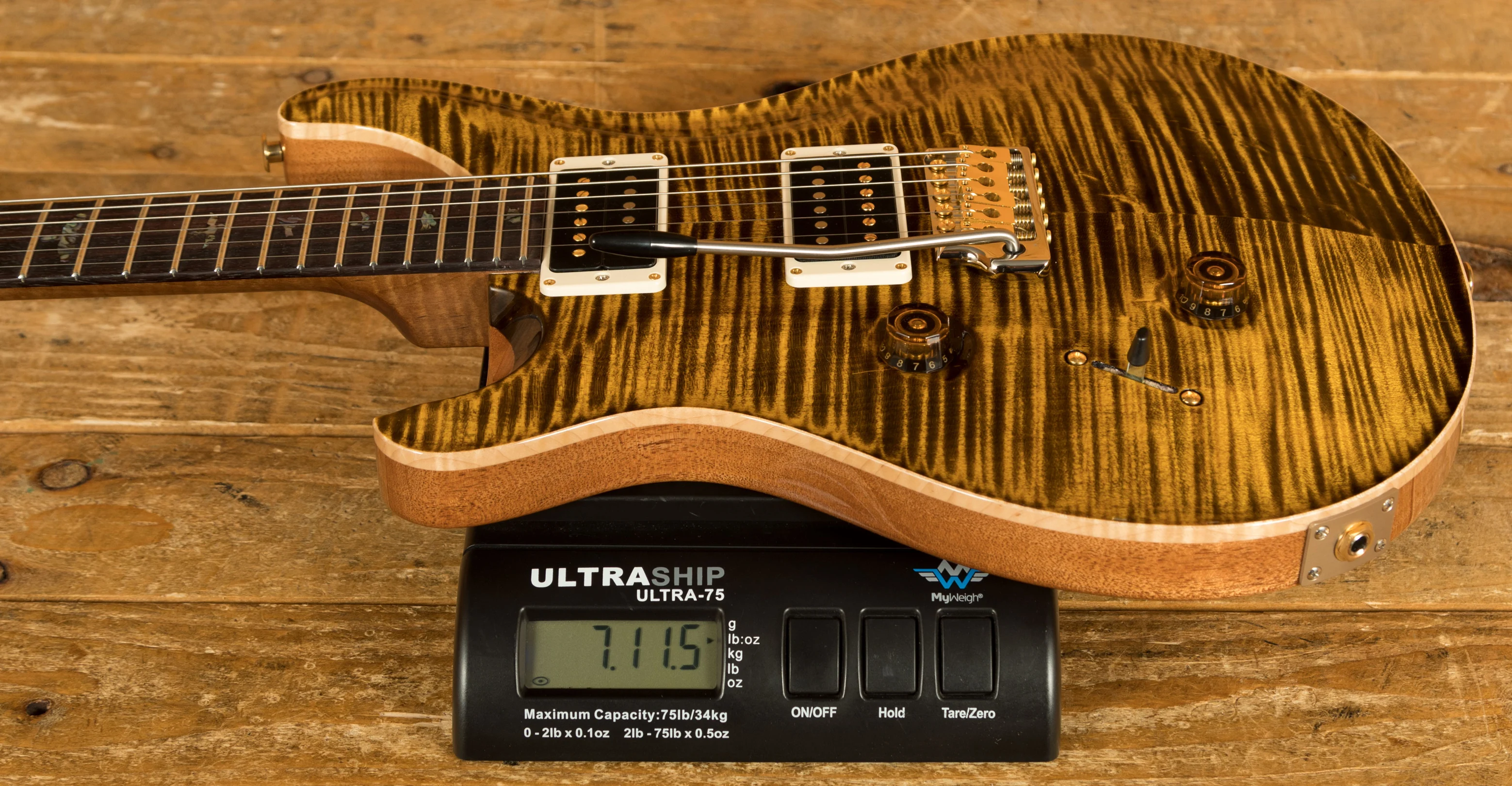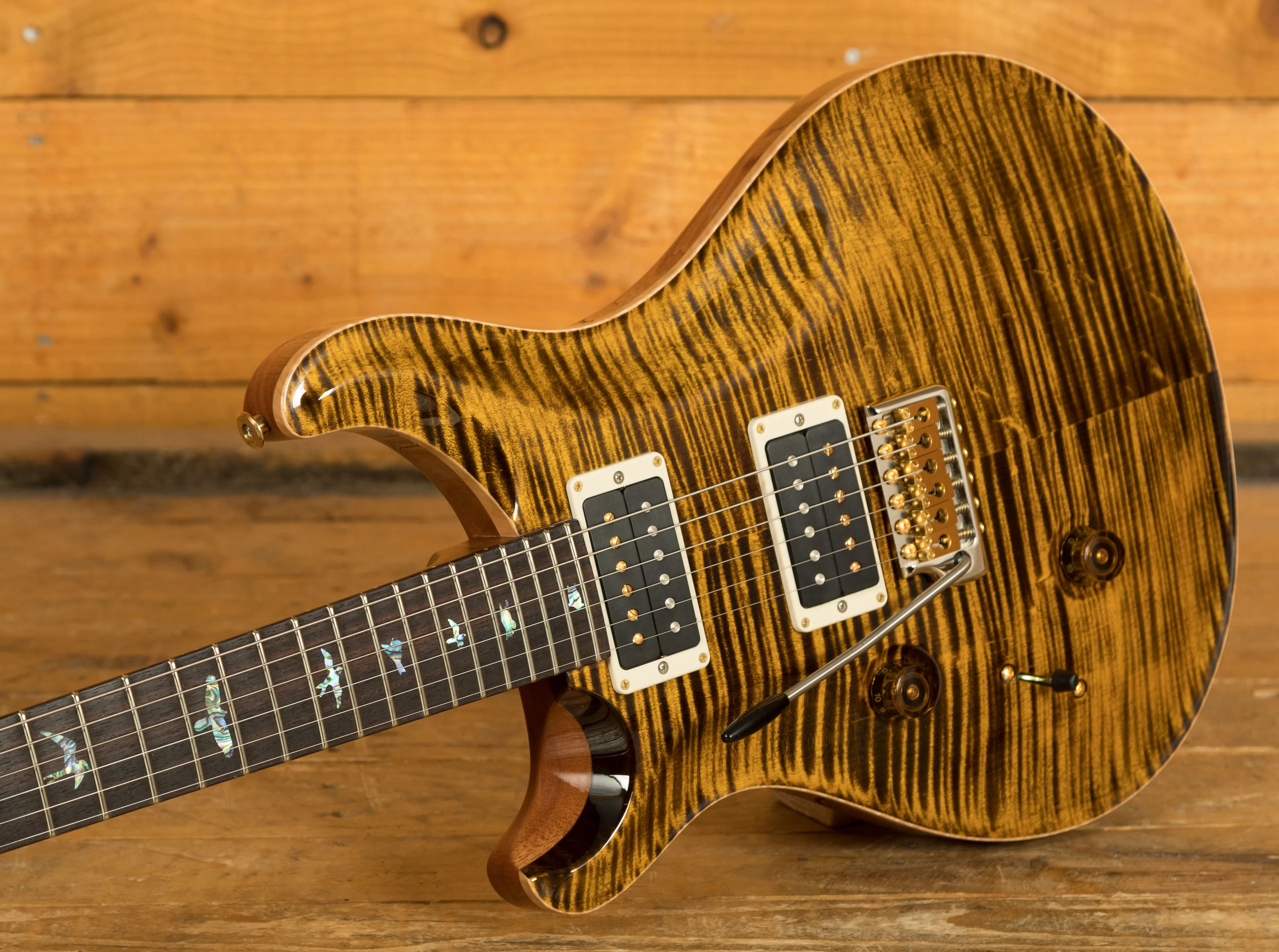 With a stunning carved Wood Library Maple Top and a One-Piece Mahogany back, finished in Yellow Tiger the Custom 24 looks every bit as good as it sounds.