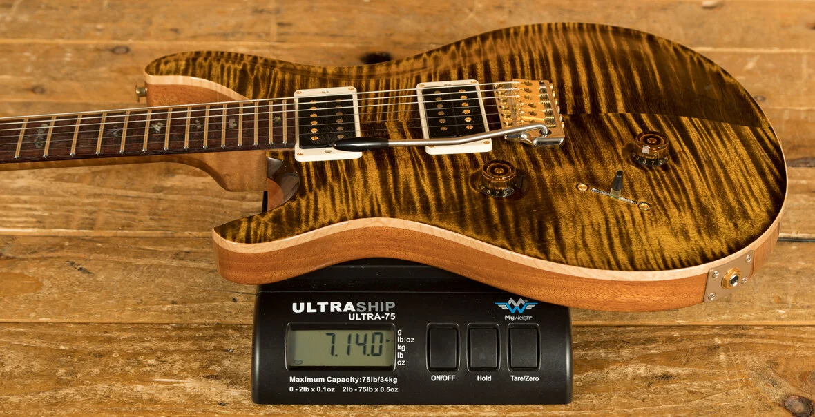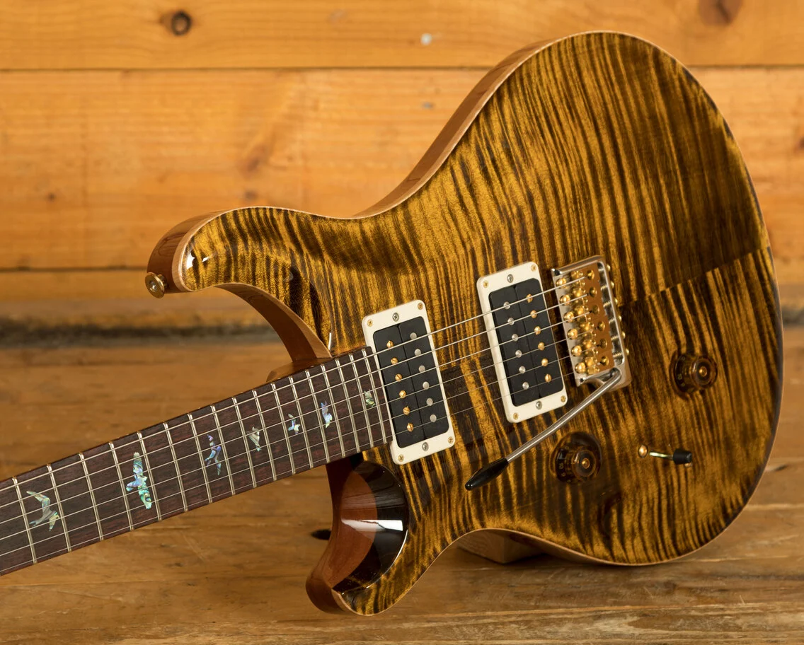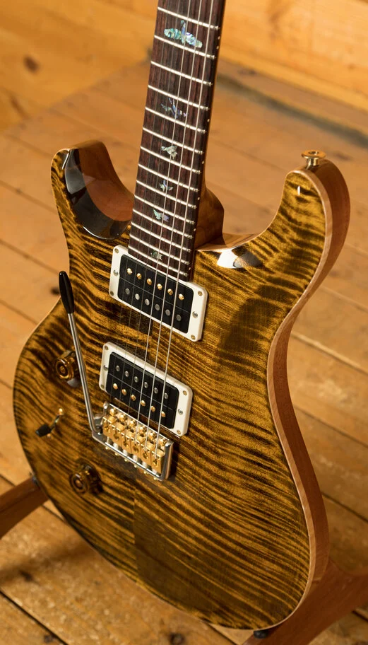 With a stunning carved Wood Library Maple Top and a One-Piece Mahogany back, finished in Yellow Tiger the Custom 24 looks every bit as good as it sounds.