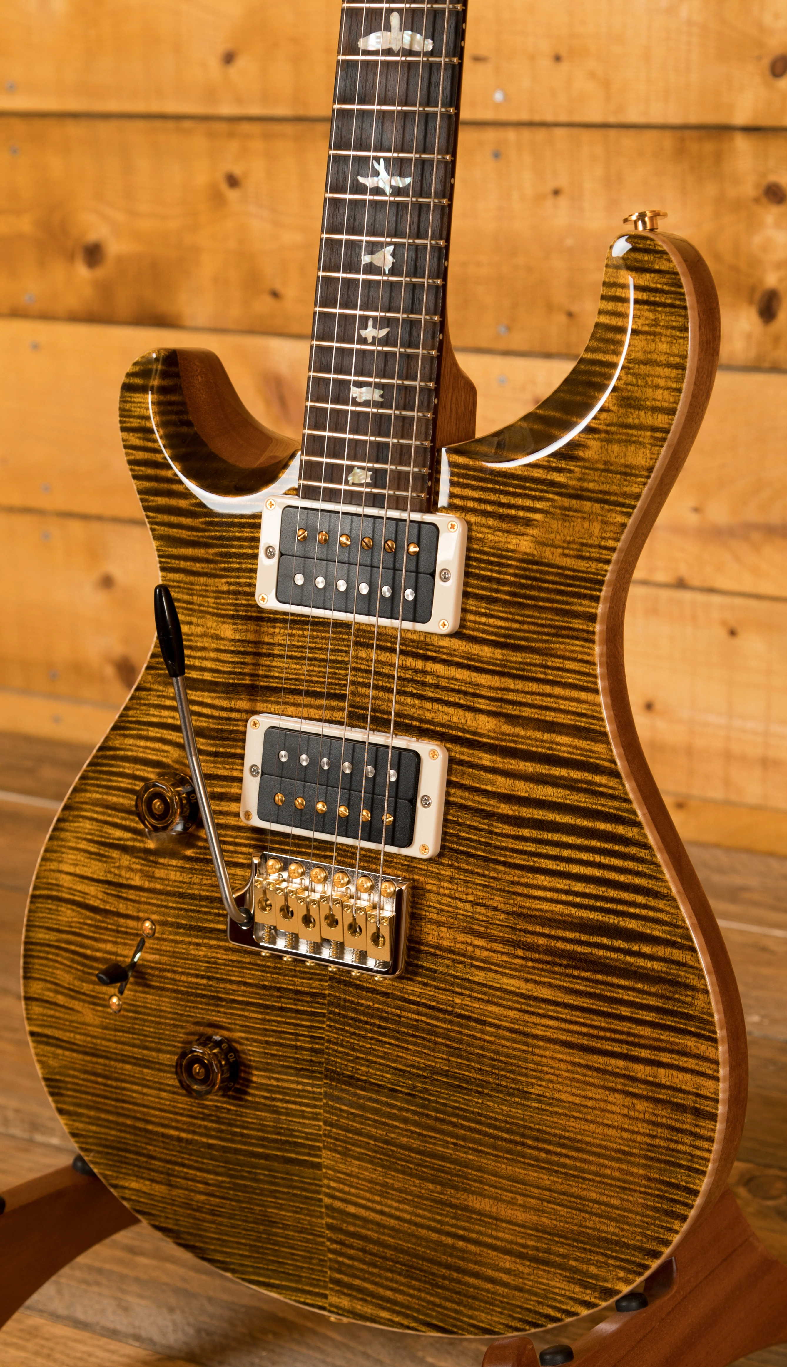 This Custom 24 is something a little more special though. Coming from the PRS Wood Library it features a select collection of tone woods kept back for special run models such as this. This allows customers to benefit from wood combinations and specs not normally found on other PRS production models.