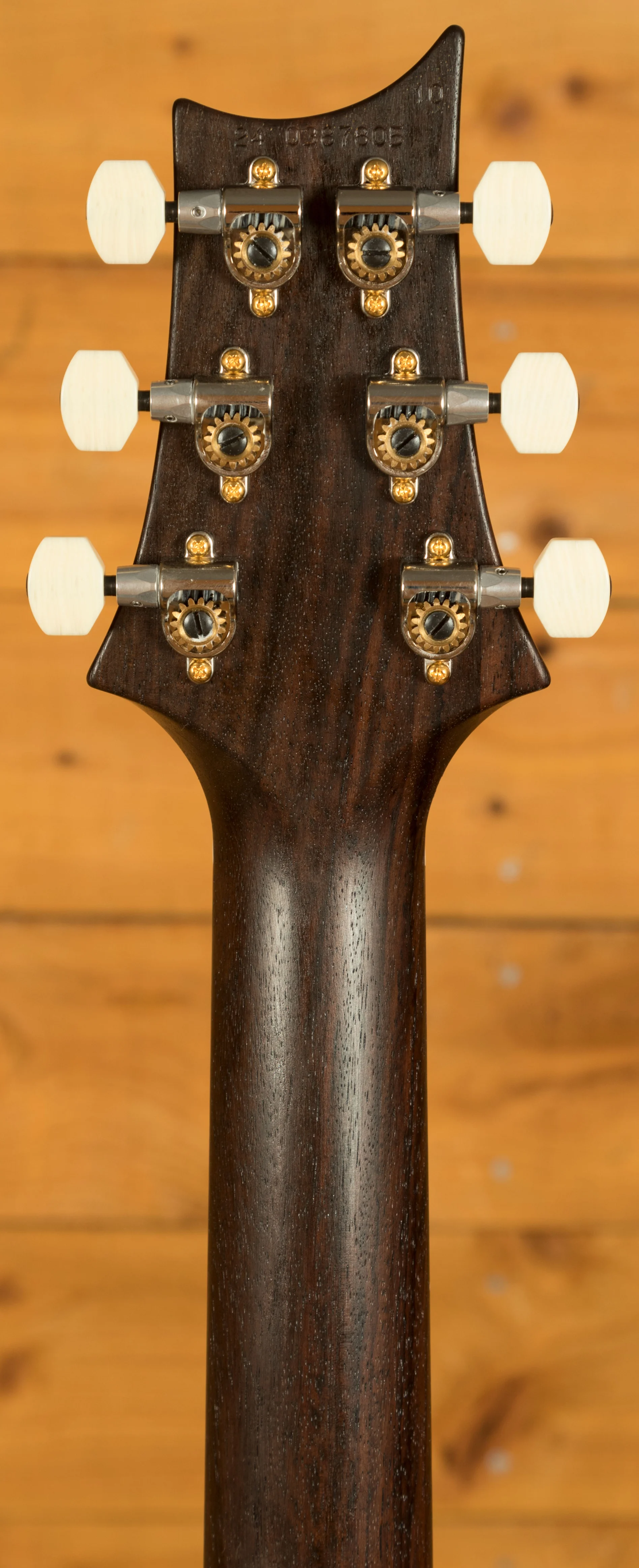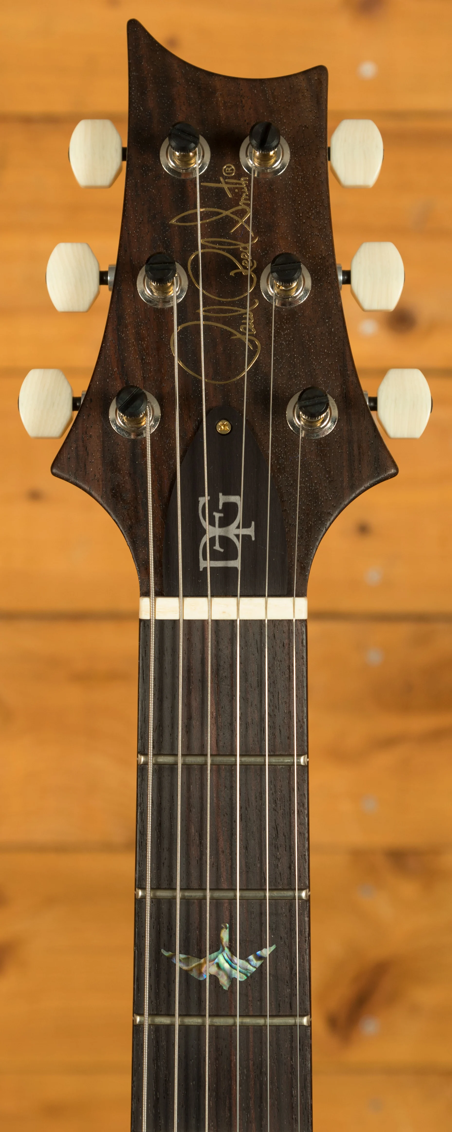 Discover the artistry of this PRS Ltd Edition Wood Library DGT David Grissom Signature Model, handcrafted at PRSs Stevensville, Maryland facility as a tribute to the legendary guitarists style. This limited-edition guitar showcases a hand-selected flame maple 10 top with exposed maple edges over a swamp ash back, finished in a premium hue that highlights the woods stunning figuring and natural grain. The all-rosewood DGT carve neck, paired with a matching East Indian rosewood fingerboard adorned with paua bird inlays, offers a 25" scale length, a DGT profile for exceptional playability, and 22 frets for seamless access across the fretboard. The rare satin finish on the neck provides a smooth, comfortable feel, a departure from PRSs usual gloss, enhancing tone transfer and playability. With a lead time of well over 2 years for Wood Library guitars, this model stands out as amazing valueits price is not significantly higher than a standard model, making it a remarkable opportunity. The hybrid hardware further enhances tonal resonance, making this a visual and sonic standout.