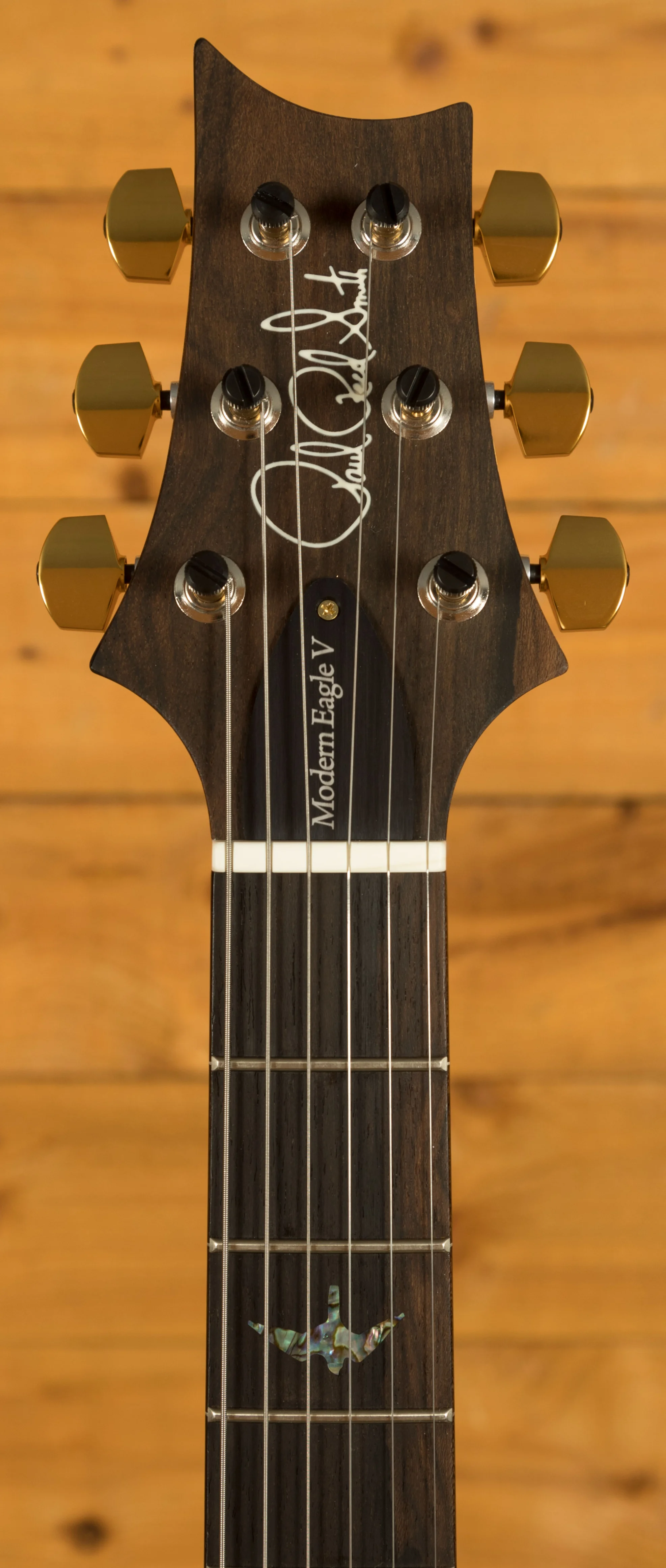 The Modern Eagle V guitar introduces groundbreaking innovation with its versatile pickup configuration and unique electronics. With a hum/single/hum (five-coil) setup and intuitive controls, it offers a wide range of tones for recording or live performances. Featuring a 5-way blade switch and push/pull tone control, players can access various pickup combinations, including all three simultaneously. Additionally, mini toggles allow for individual coil separation, expanding the sonic possibilities with classic and modern tones.