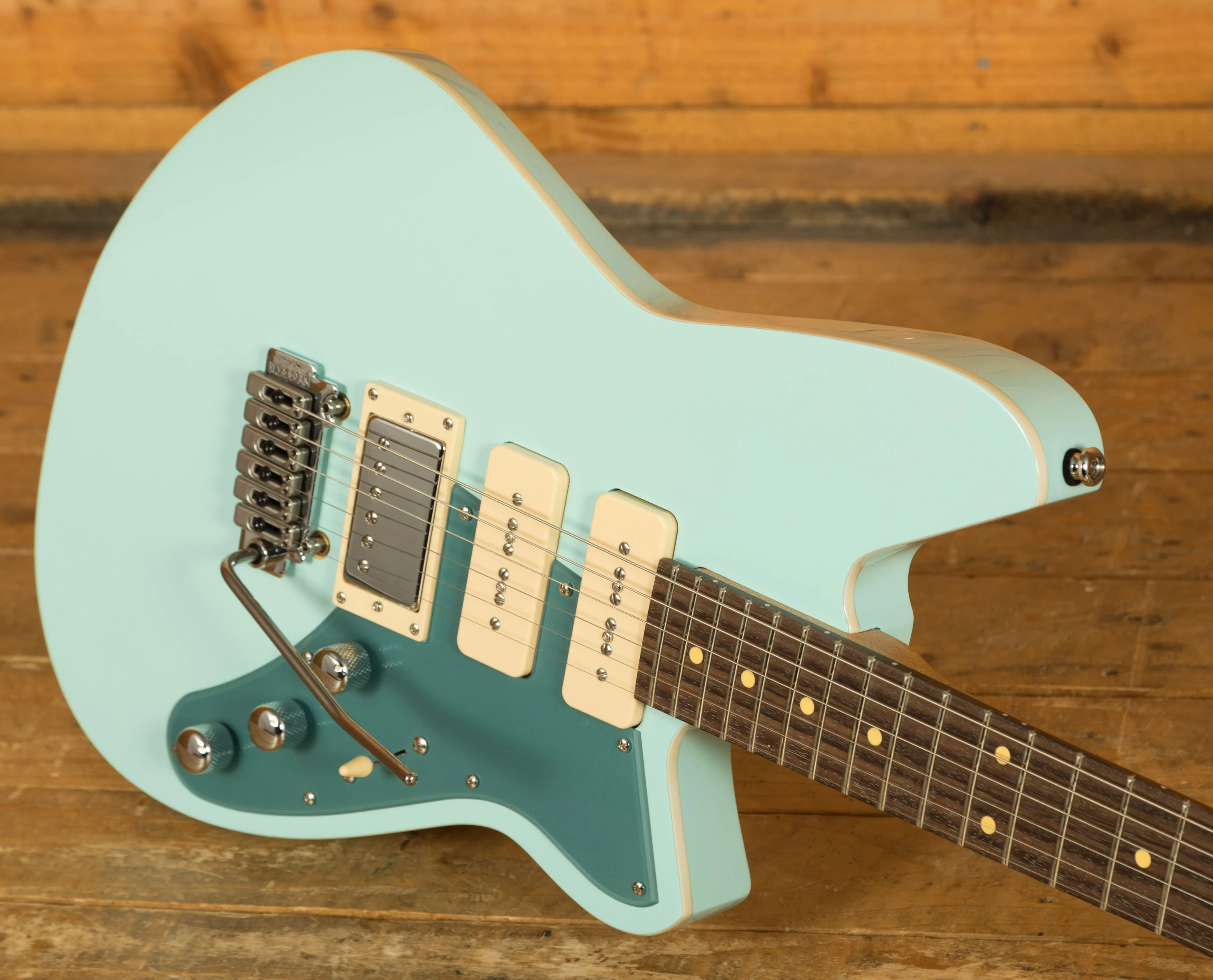 Equipped with a host of premium features, including pin-lock tuners, a Wilkinson tremolo system, and a treble bleed circuit, the Six Gun HPP is designed to meet the demands of even the most discerning players. And with its hand-initialled headstock and meticulous attention to detail, each Reverend guitar is a testament to the craftsmanship and dedication of our team.