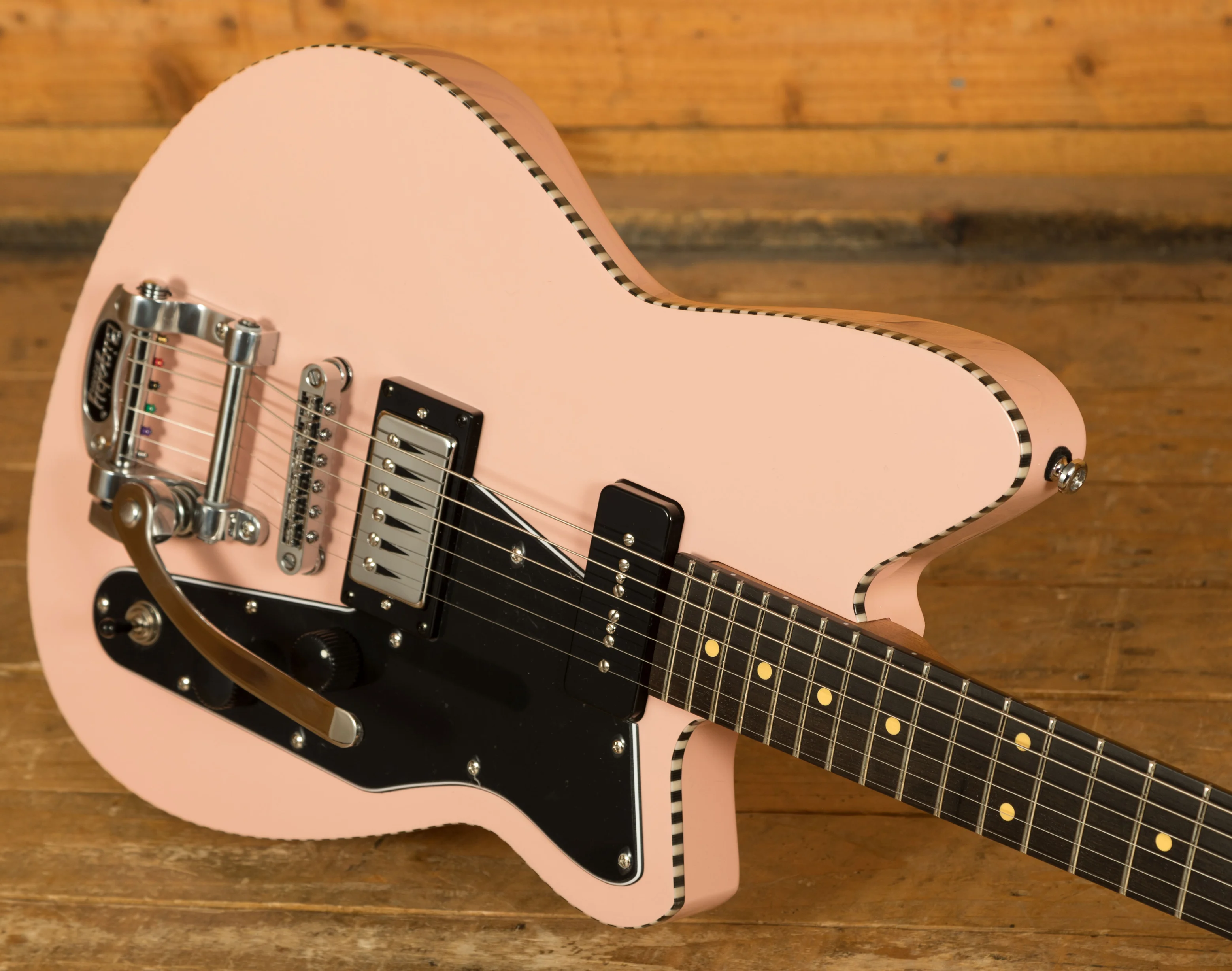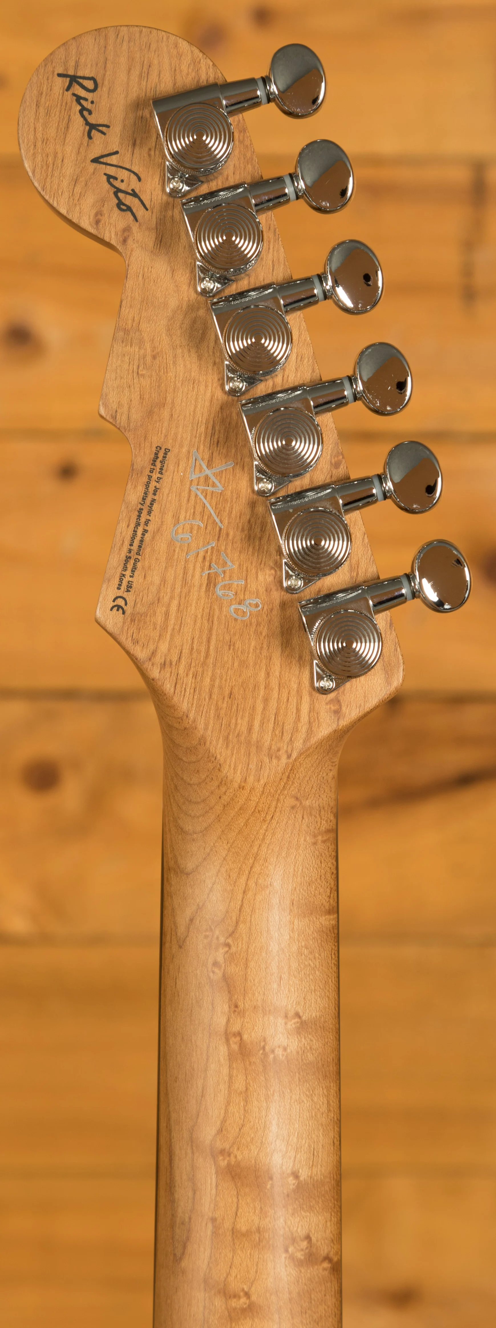 Visually striking, the Rick Vito Soul boasts classic Art Deco-inspired "cupcake" knobs and custom graphics on the bridge pickup, accentuated by custom checker binding reminiscent of vintage guitars from the 1930s. The addition of a Bigsby tremolo system with a roller bridge and Soft Touch spring provides smooth action and impeccable tuning stability, while the Pin-Lock tuners and Boneite nut facilitate lightning-fast string changes and enhance overall playability.