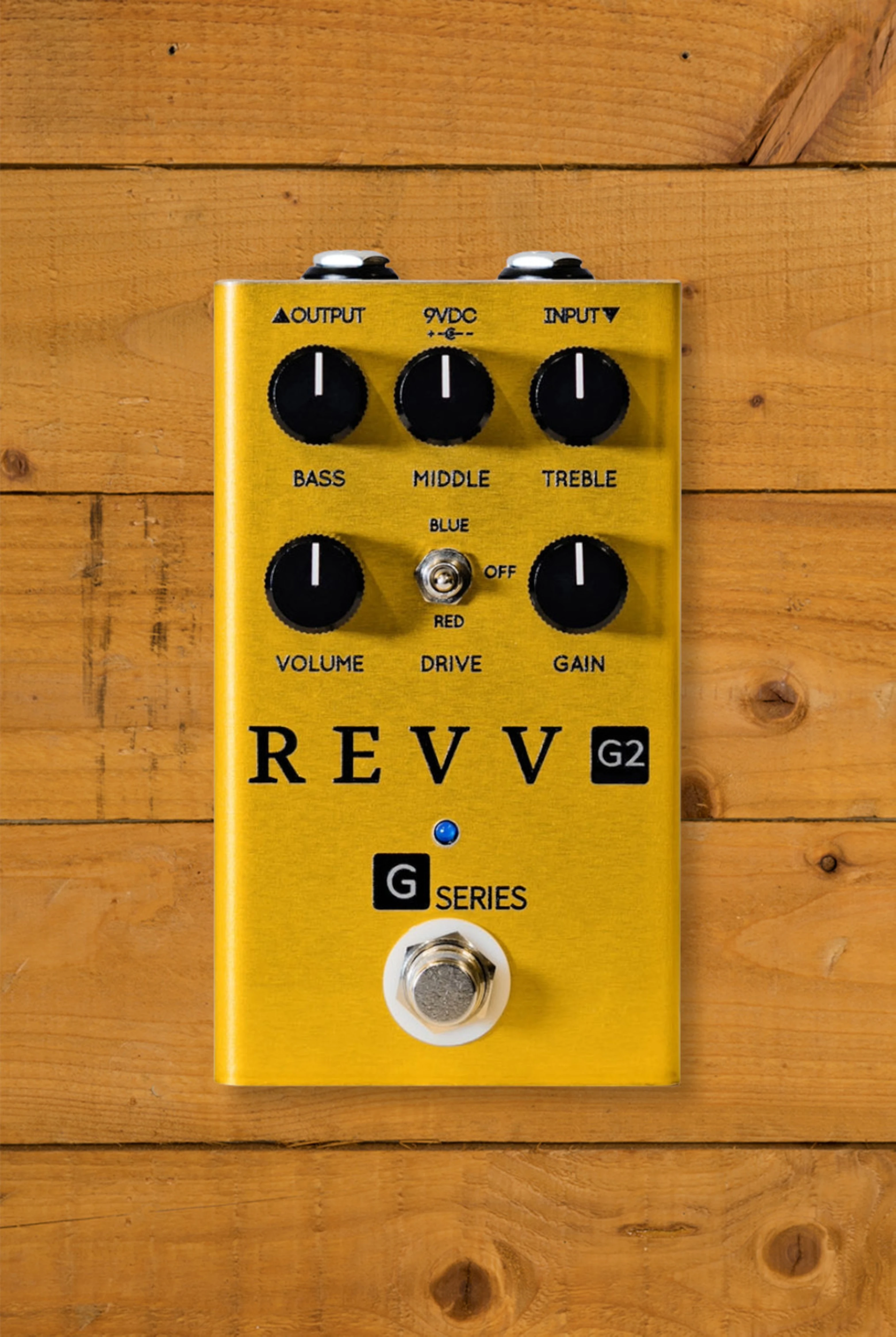 The Revv G2 V2 Limited Edition Gold Finish takes the company's acclaimed Green Channel drive and wraps it in a striking, collectible finish that stands out on any pedalboard. Known for its touchresponsive feel and amplike clarity, the G2 is designed to deliver everything from edgeofbreakup grit to tight, articulate drive tones that sit perfectly in a mix. It's one of Revv's most versatile pedals, equally at home as a lowgain alwayson enhancer, a dynamic rhythm drive or a focused lead boost.