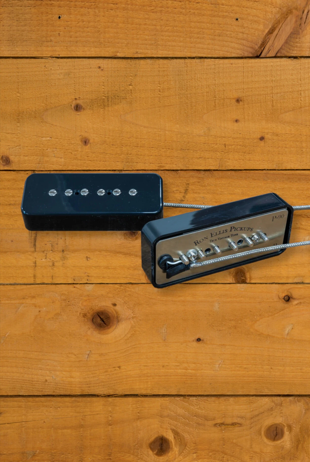 Renowned for their exceptional craftsmanship, Ron Ellis Pickups presents the Classic P90s, an exquisite recreation of the initial P90s that left an indelible mark on the world of music. These pickups boast a distinct character, producing a crystal-clear single note sound complemented by a captivating harmonic "hair" that delicately envelops the fundamental notes.