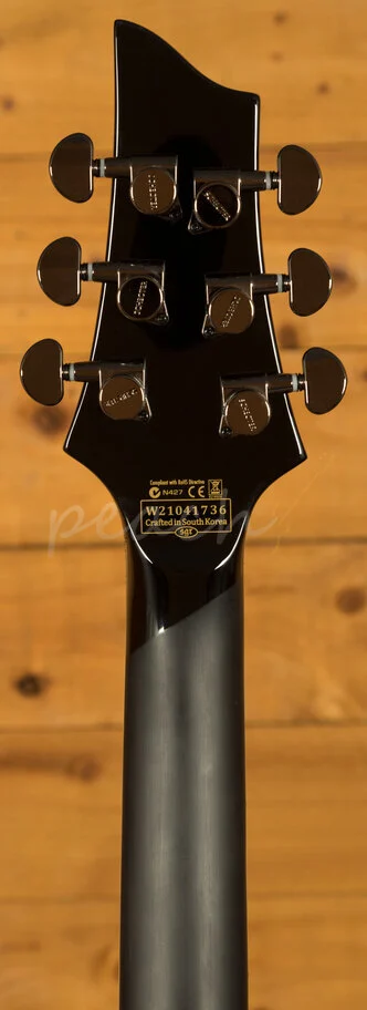 The Mahogany neck features carbon fibre reinforcement rods for a secure playing experience. The Ebony fingerboard boasts Pearloid Line inlays and a Thin C profile, 24 X-Jumbo frets and a 12-16 compound radius, its fast and comfortable.