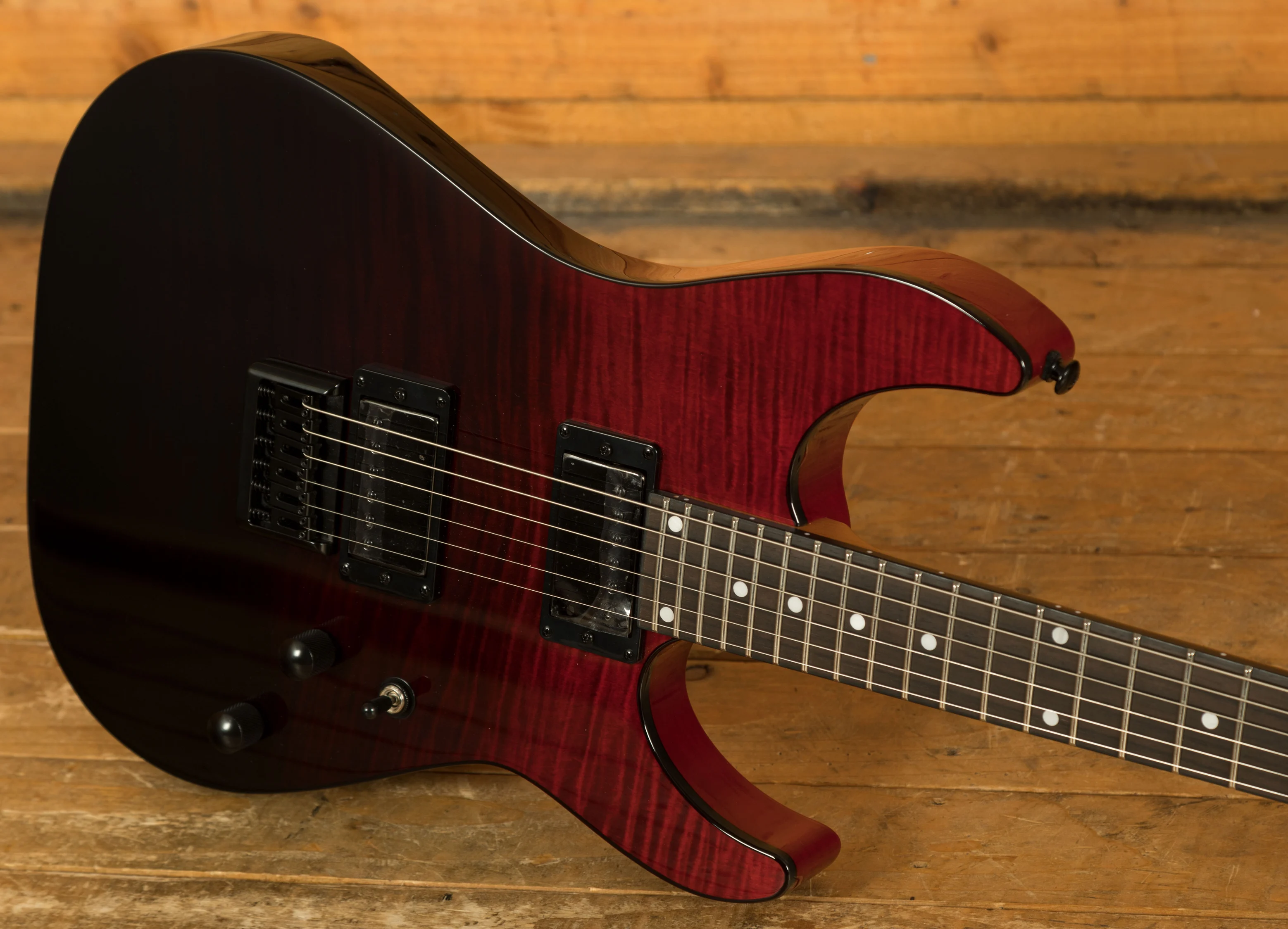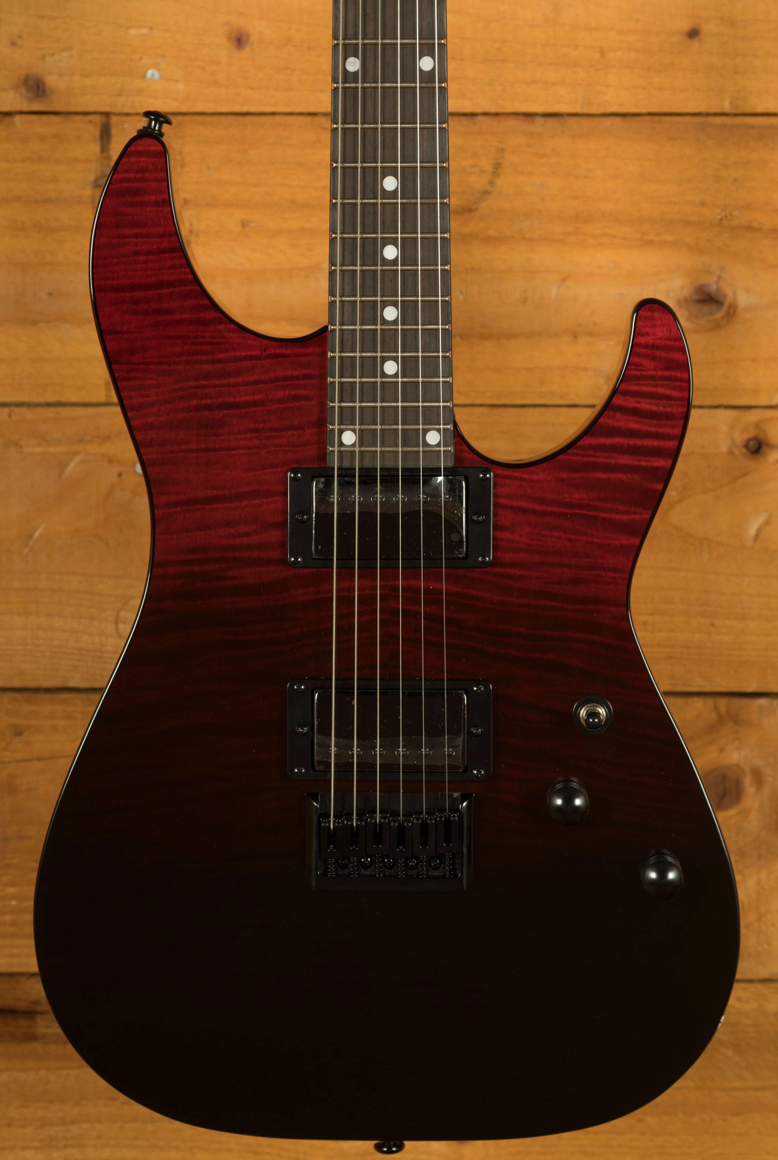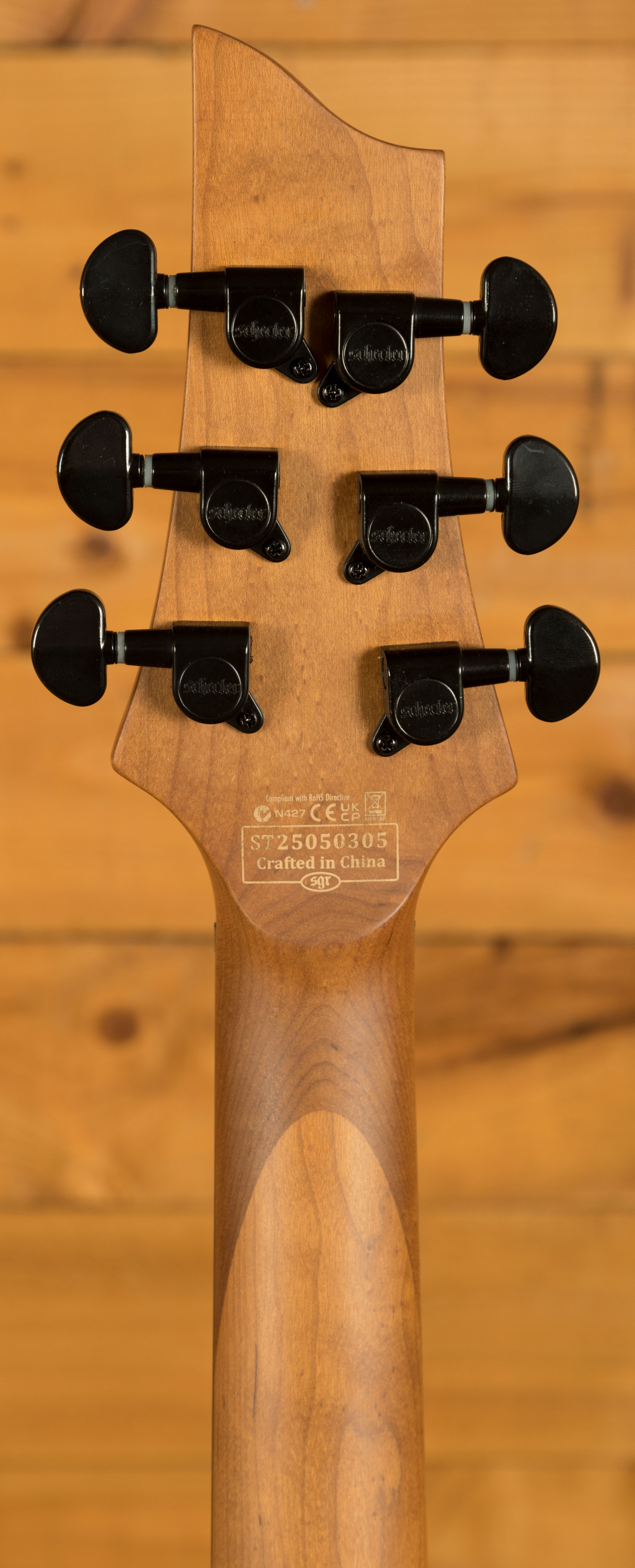The Schecter C-1 Standard in Bloodburst delivers premium tonewoods and high-performance features in a striking finish. Its flamed maple top over a mahogany body provides rich resonance and visual flair, while the roasted maple neck ensures stability and smooth playability. With 24 jumbo frets and a Thin C profile, it’s built for speed and precision.