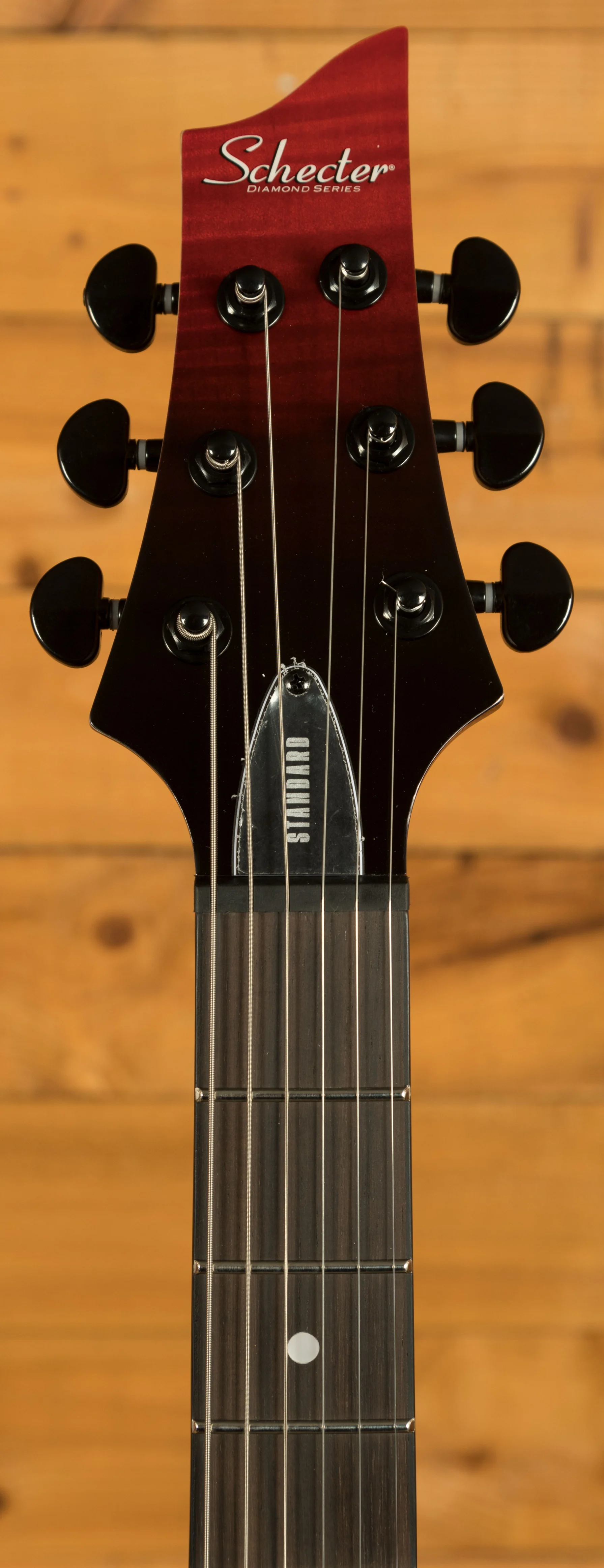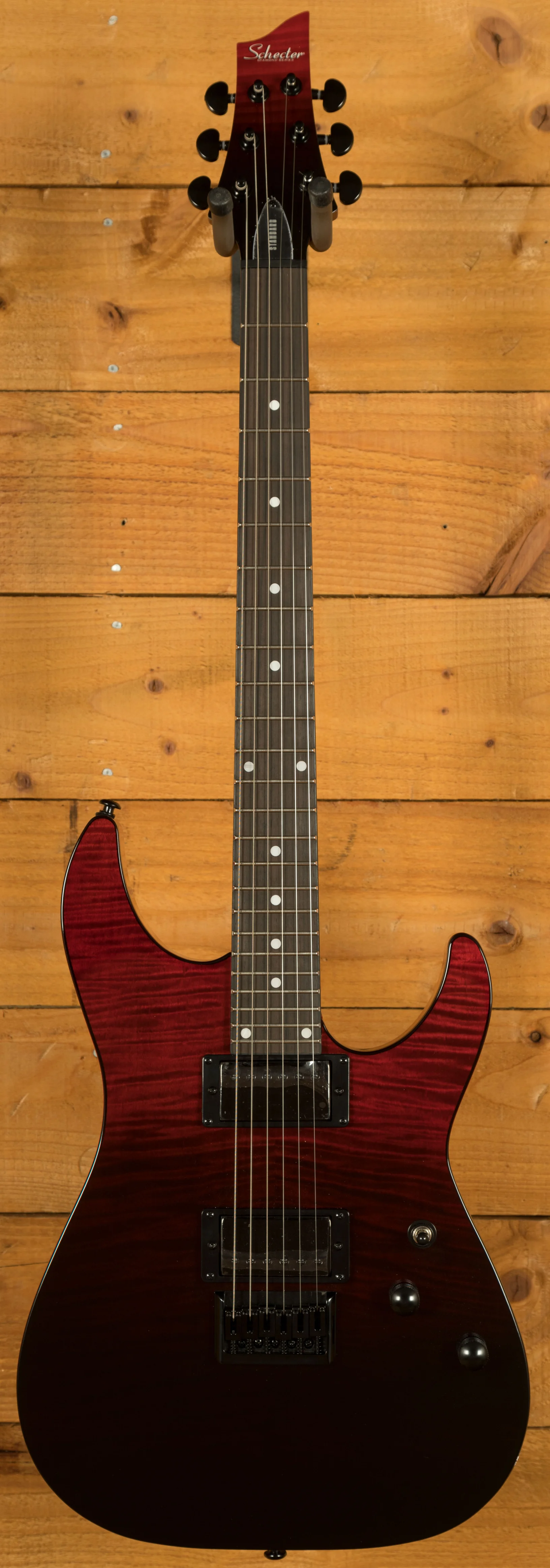 - Pickups: Schecter Diamond Standard (neck and bridge) with black metal covers