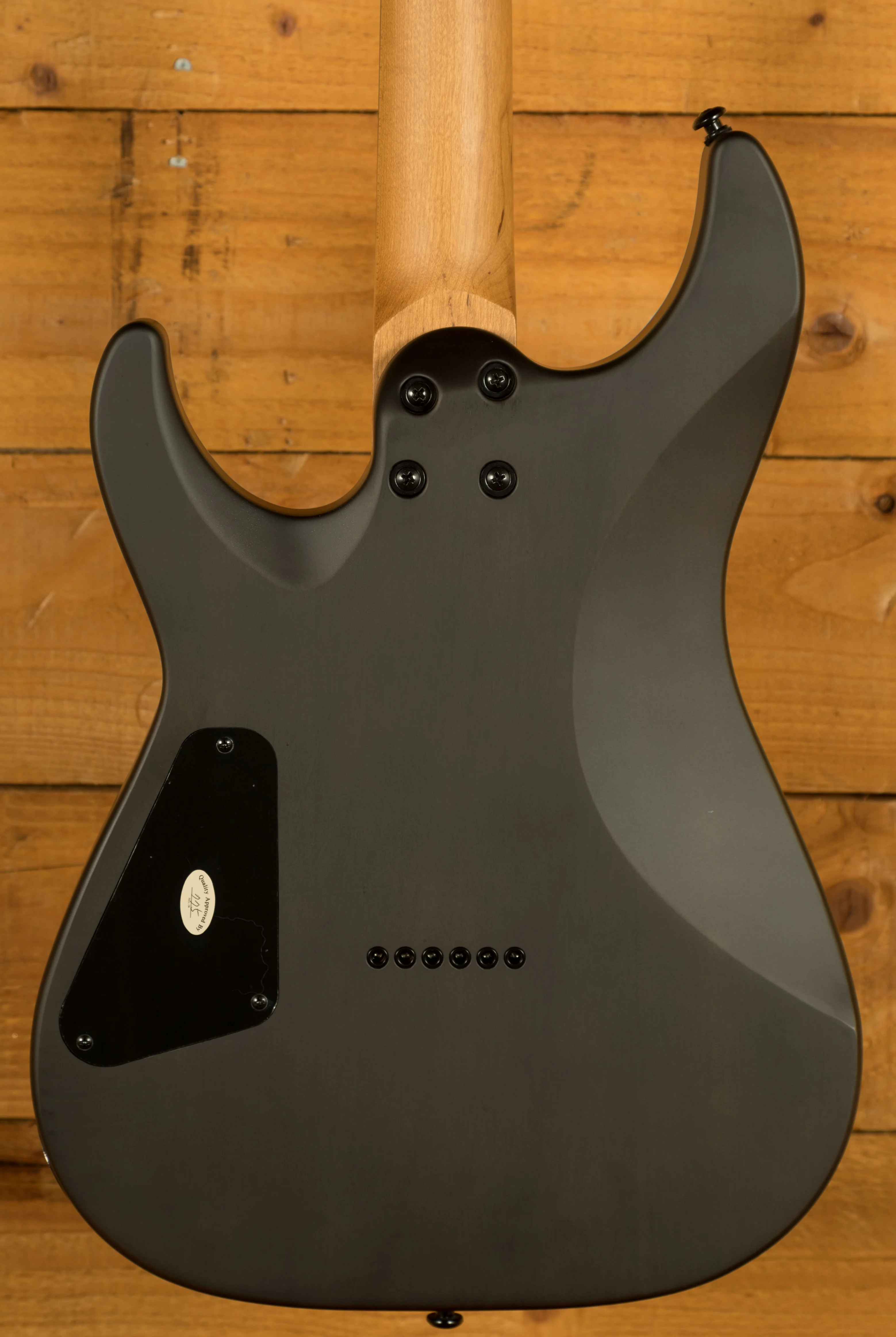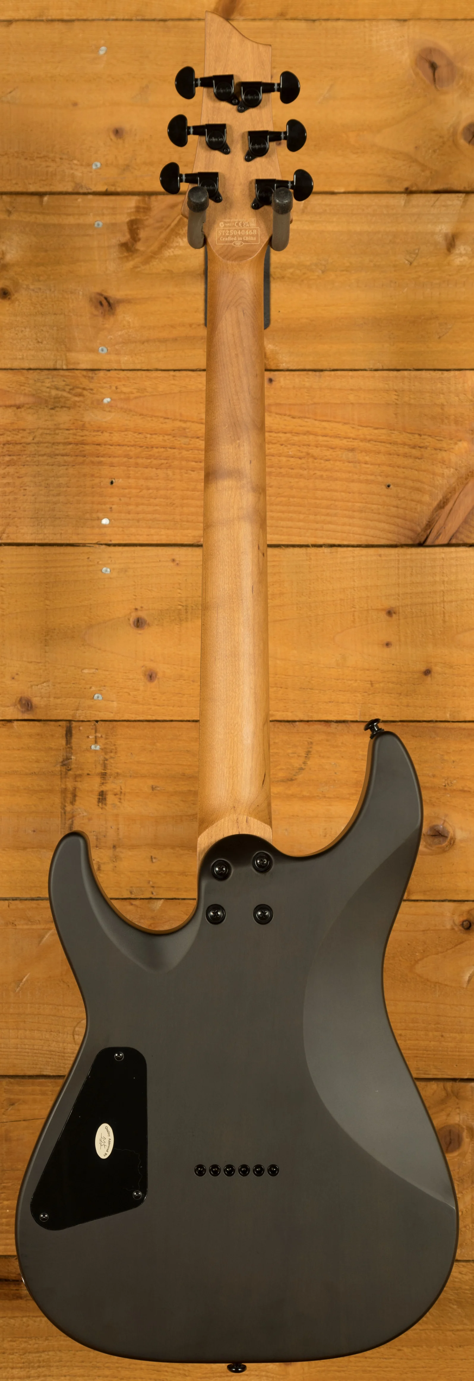 The Schecter Diamond hardtail bridge, graphite nut, and Schecter tuners ensure tuning stability and sustain, while the black hardware completes the stealthy aesthetic.