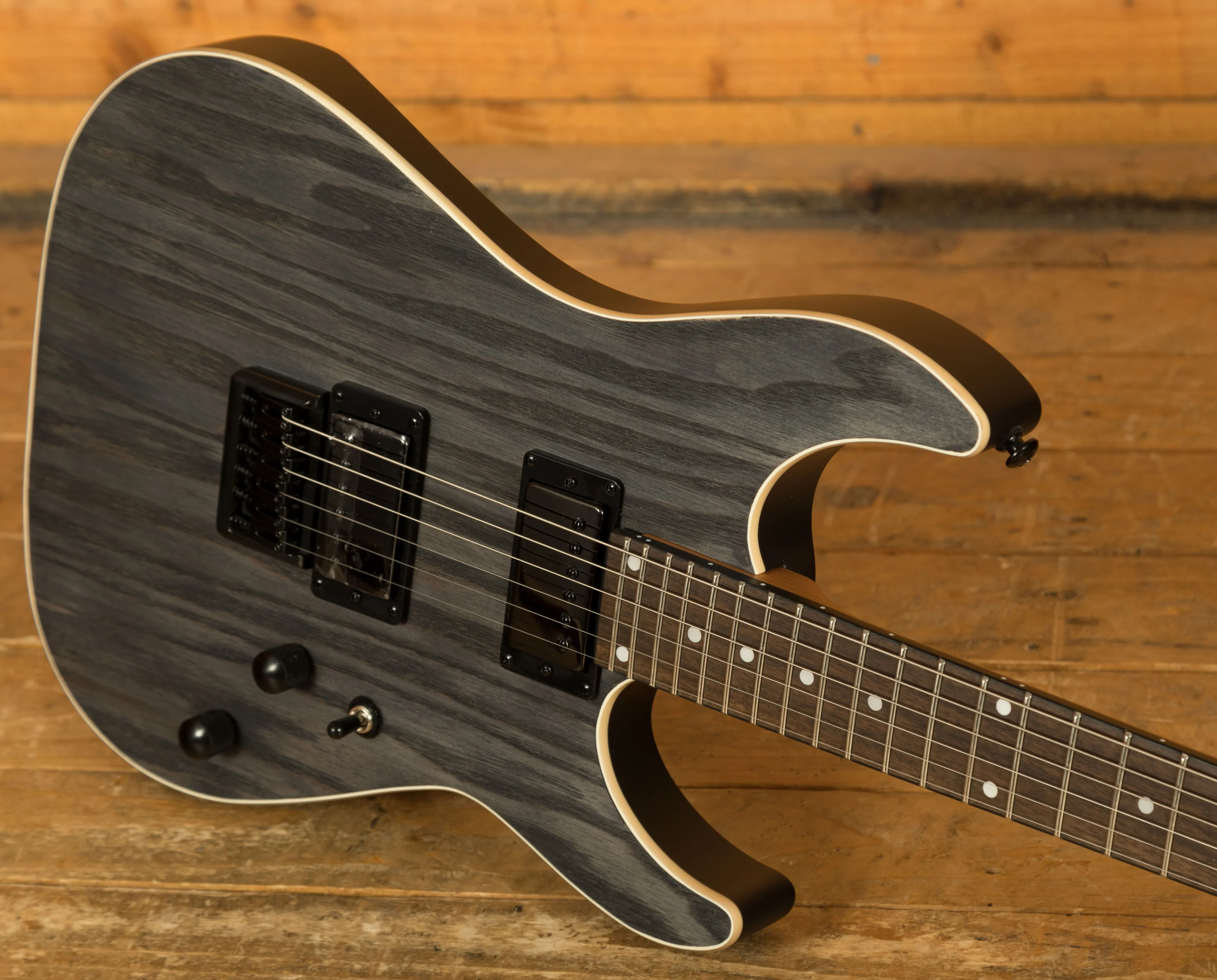 The Schecter C-1 Standard in Charcoal Satin is a bold, modern take on the classic double-cutaway design. With a mahogany body and an ash top, it delivers a rich, resonant tone with plenty of sustain and visual flair. The cream and black binding on the body and neck adds a touch of elegance to its aggressive styling.