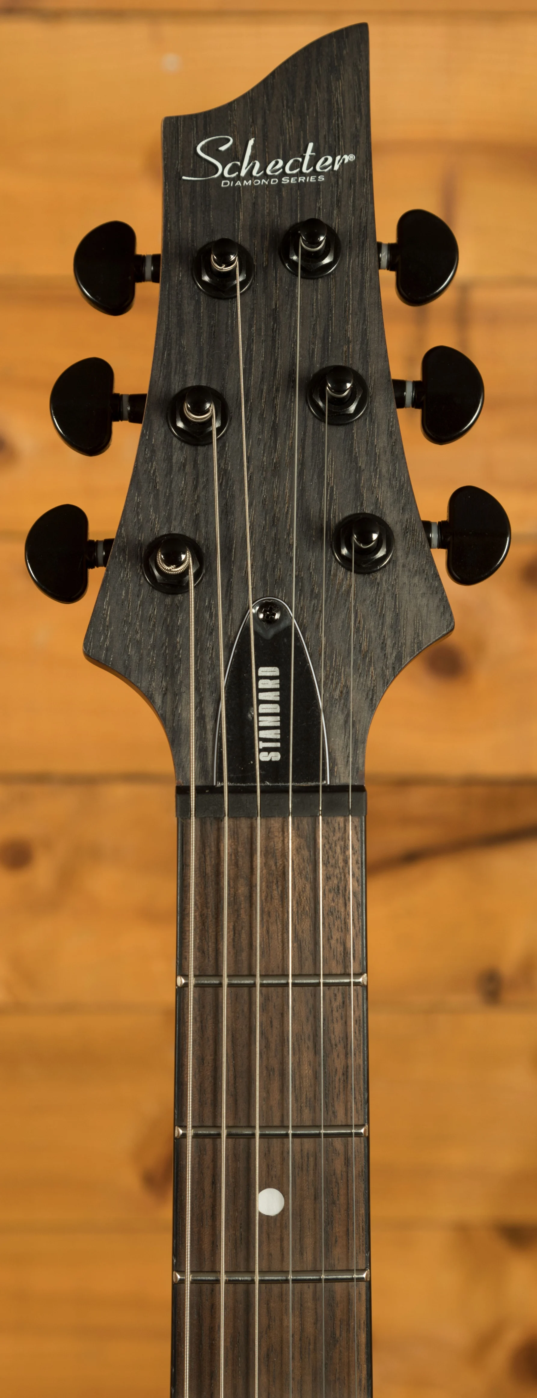 A pair of Schecter Diamond Standard humbuckers with black metal covers provide powerful, articulate tone with enough versatility to handle everything from clean passages to high-gain riffing. The master volume, master tone, and 3-way toggle switch give you simple, effective control over your sound.