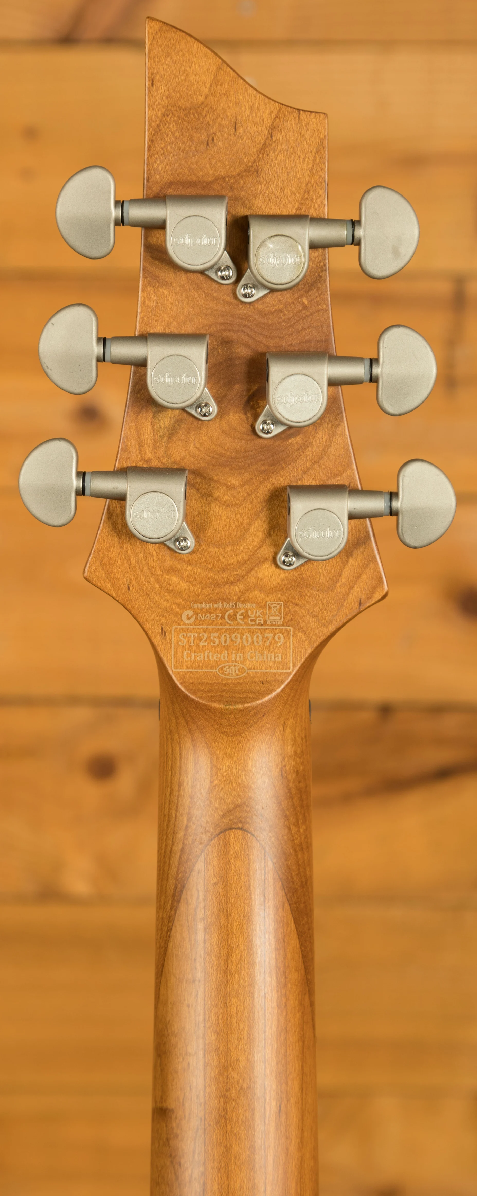 The neck itself is a thin C profile, perfect for those used to modern day, slinky necks.  It has a modern 14" radius, and the fingerboard is either roasted maple, or ebony for the Ember Burst finish. Likewise, the pickup covers are either satin chrome, or black for the Ember Burst, offering two different aesthetics.