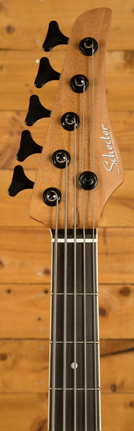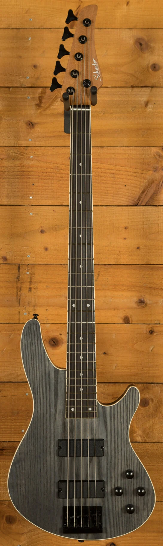 The Schecter Diamond bass bridge, graphite nut, and Schecter tuners ensure tuning stability and sustain, while the black hardware completes the stealthy aesthetic.