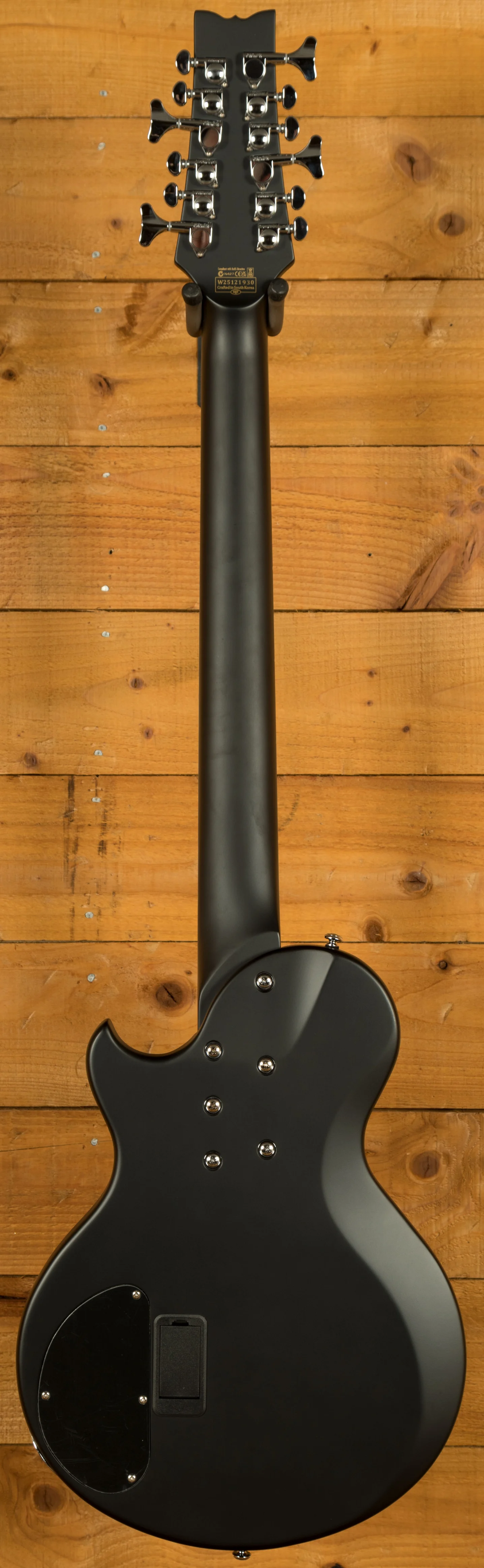 The body is made from a strong piece of Mahogany finished in an awesome Satin Black. Mahogany as a tone wood has awesome depth and power behind it, perfect for this instrument. The body is well balanced and weighted brilliantly.