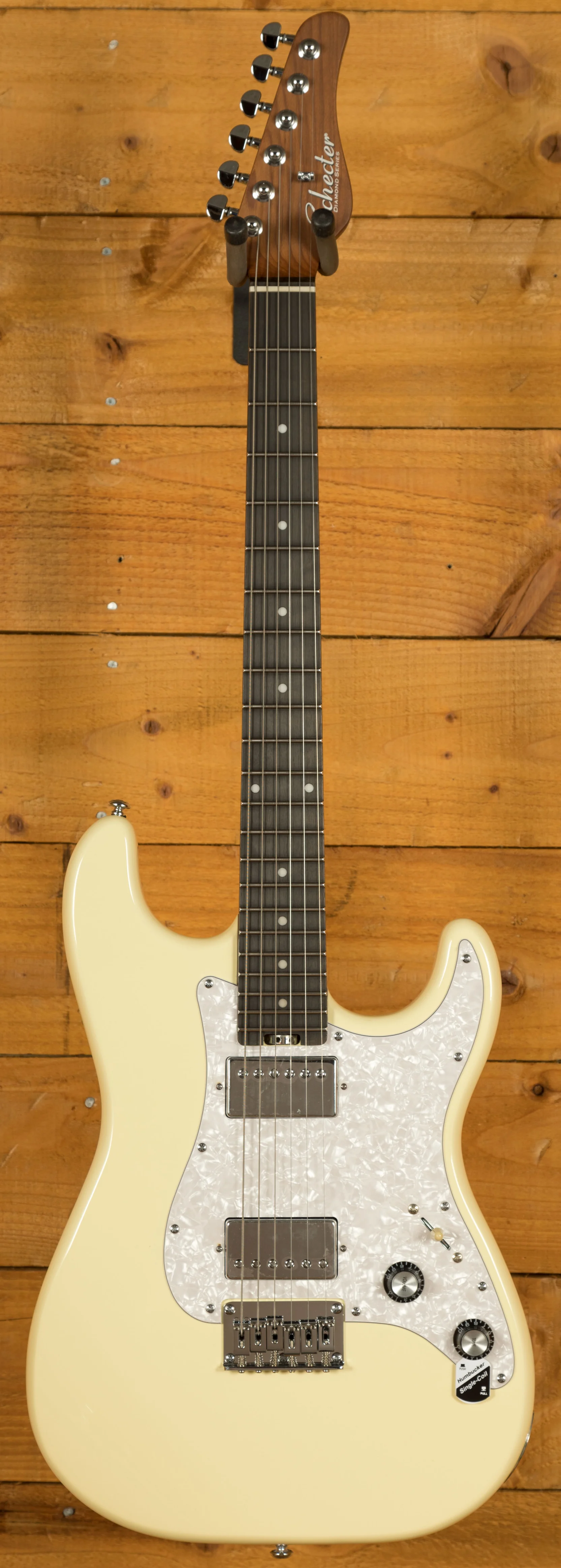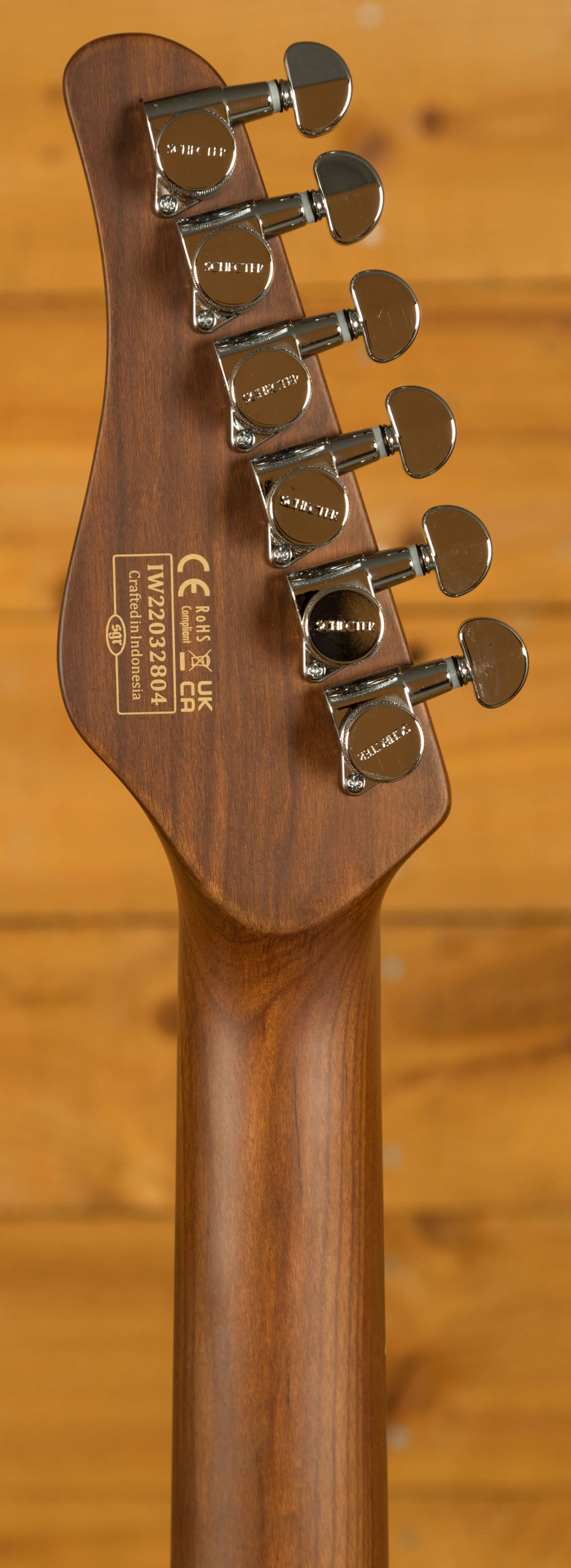 With a USA Pasadena in the neck and a USA Pasadena Plus in the bridge this guitar is bursting with tone, with a volume, tone, push-pull capabilities and standard 3-way switch you can really nail just about every tone. Schecter Locking tuners and a Diamond Hardtail provide excellent tuning stabilities, this is one super cool piece.