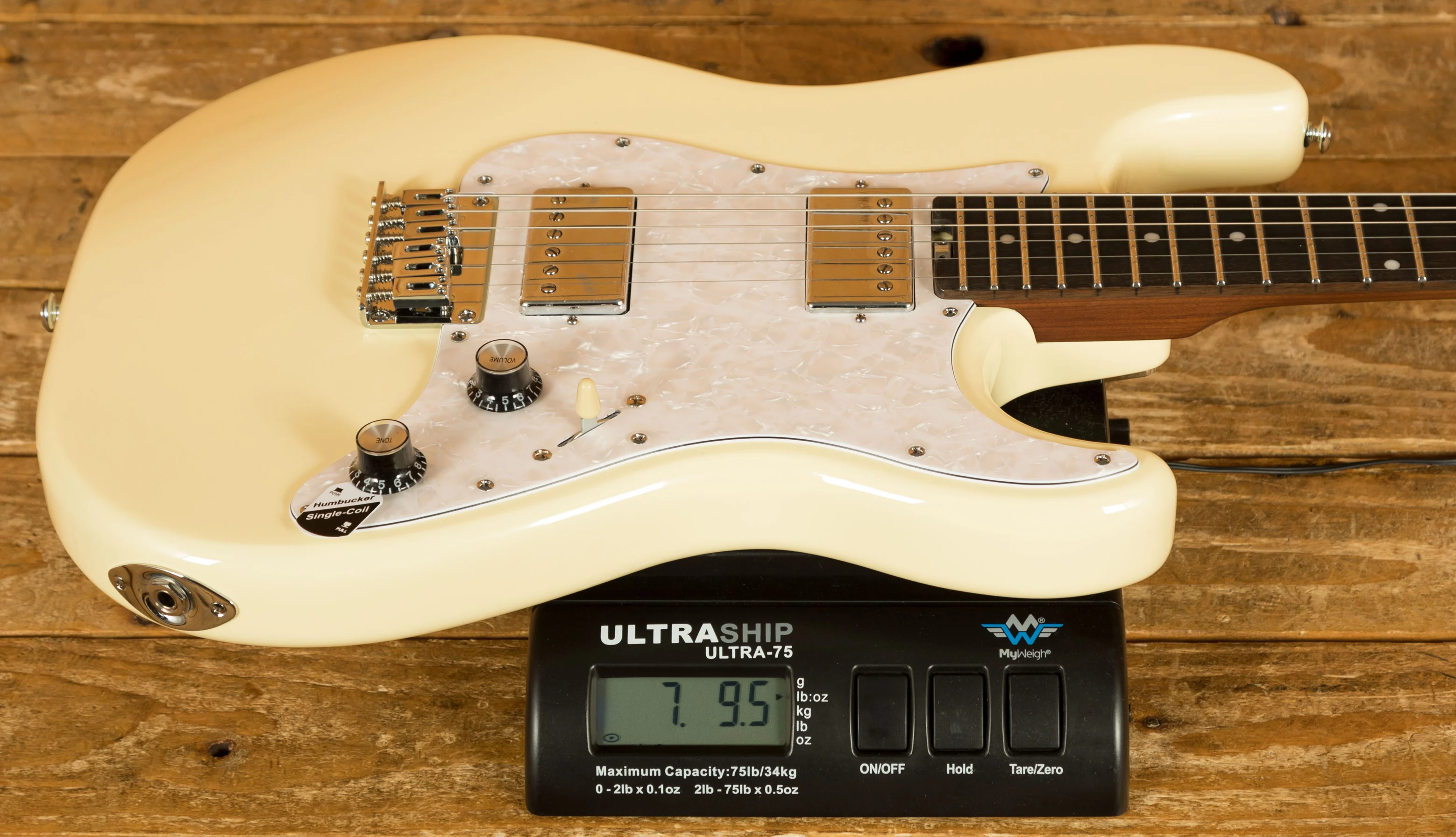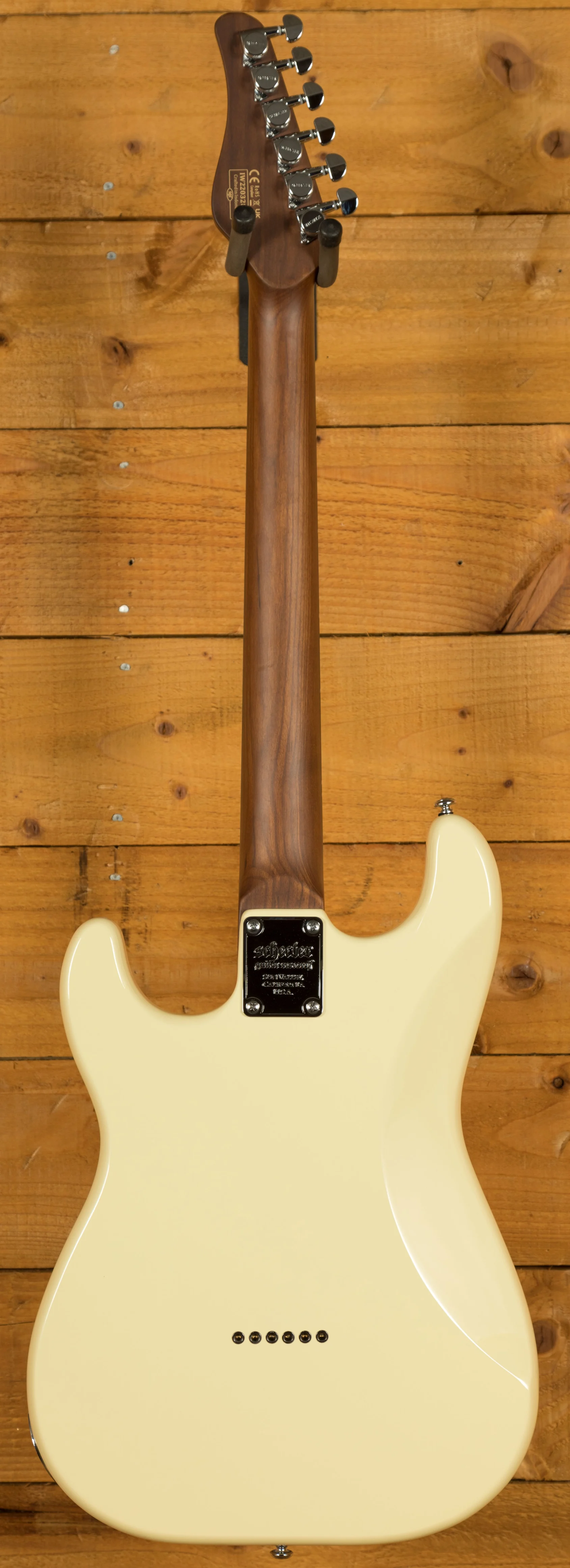 In typical S-style fashion we have an Alder body finished in a super sweet Ivory colour, it looks really cool and has an awesome vintage vibe to it, it is incredibly well weighted and both looks and feels awesome to play.