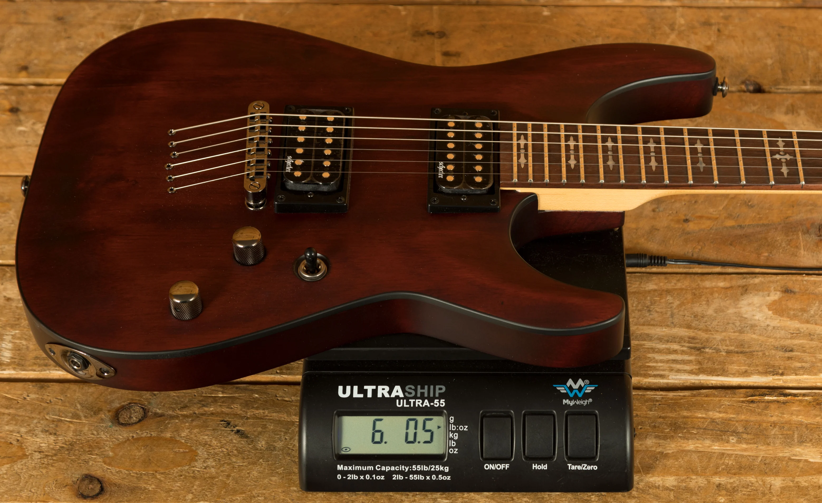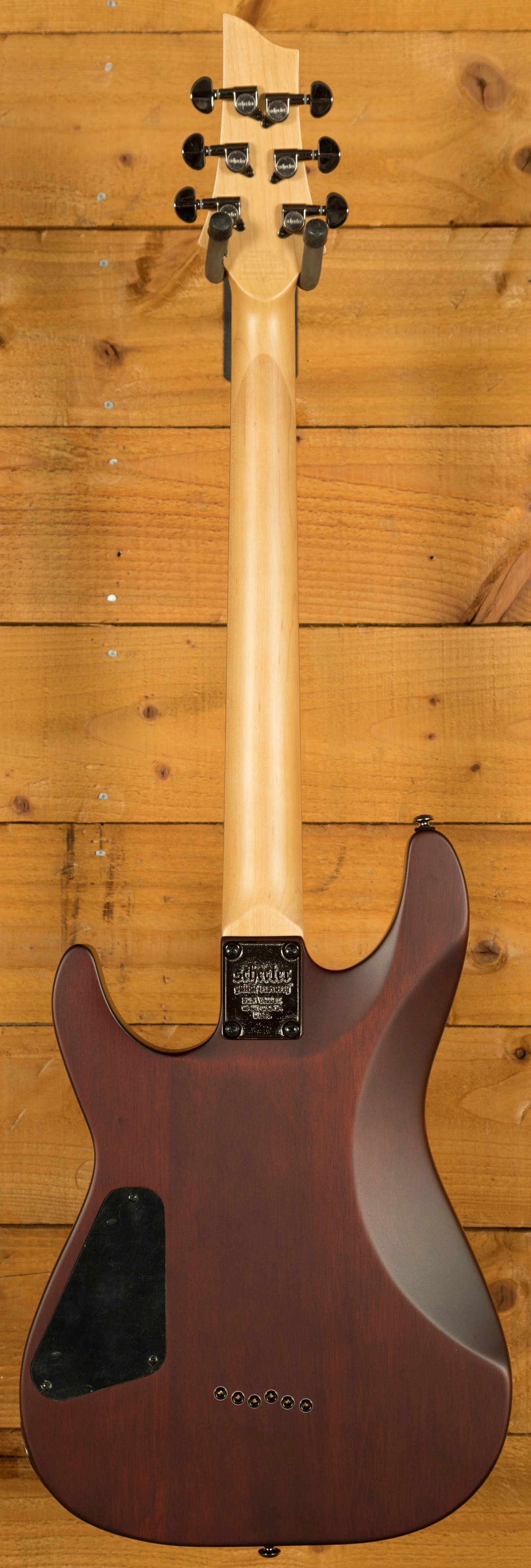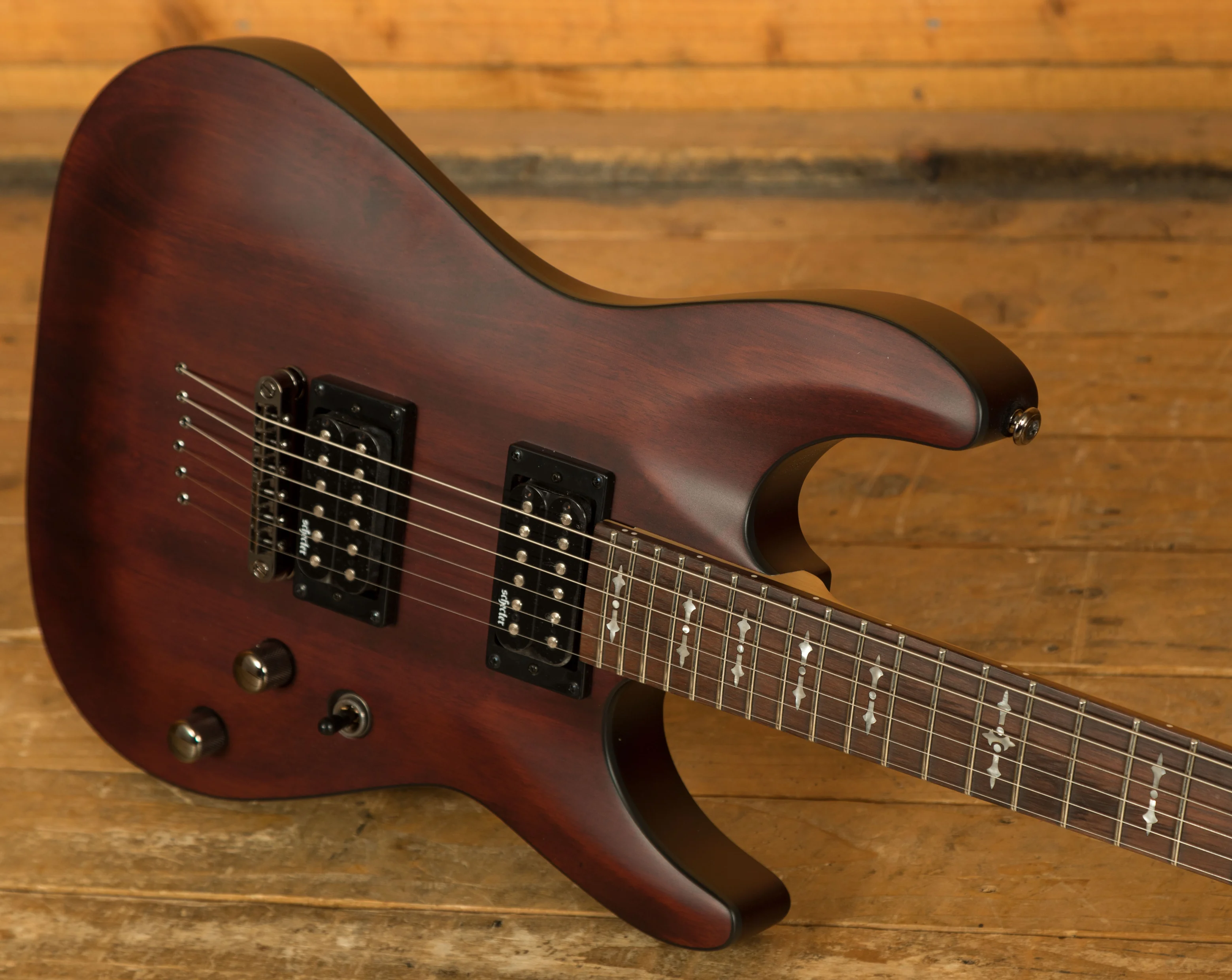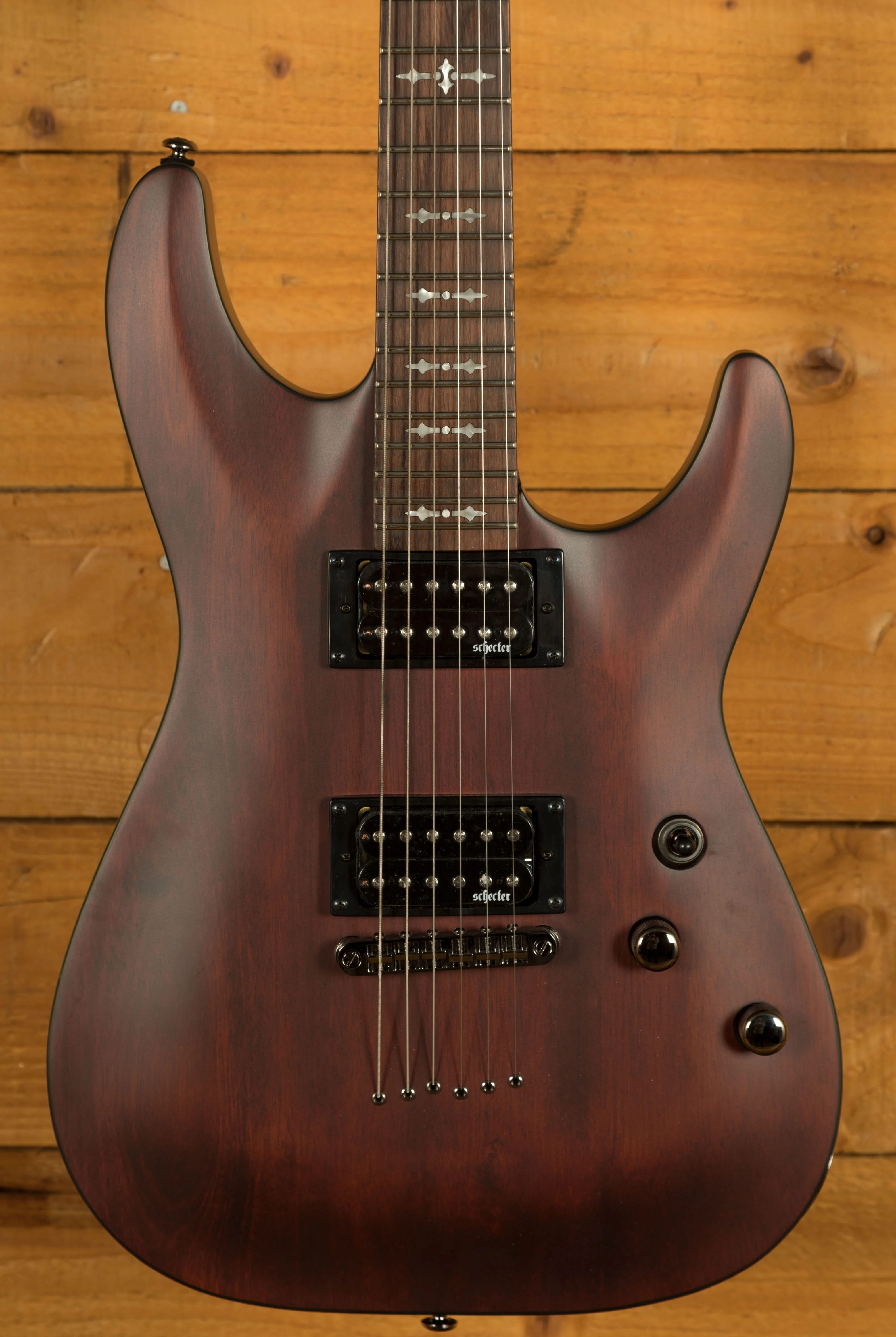 Loaded with Schecter Diamond Plus Pickups, these humbuckers give that little bit extra clarity and power. With Schecter tuners and a Tune-O-Matic bridge, you get great tuning stability and intonation. This is a really well designed and constructed guitar; it offers everything the modern player needs. It's a lean, mean, shred machine!