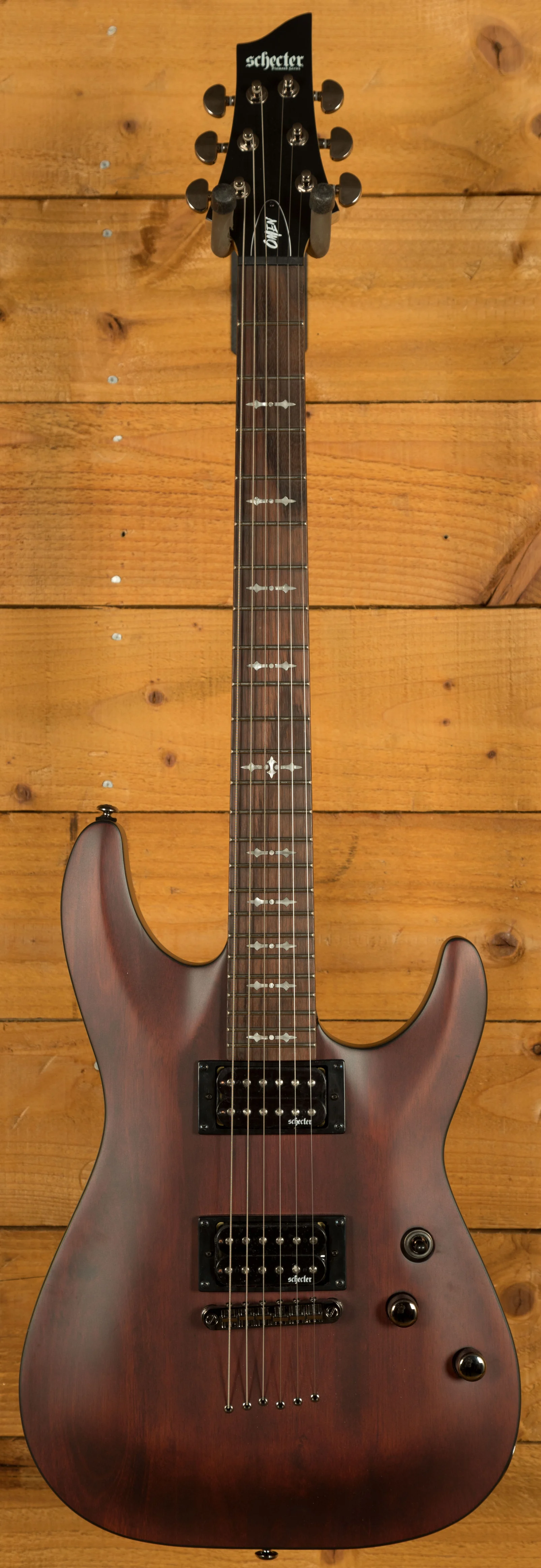 The Schecter Omen-6 is a tonal monster, with a Basswood body, the Omen-6 has a sweet arched top and a Walnut Satin finish for a rustic look. The bolt-on construction makes for a snappy response that is favoured by many artisan guitar builders.