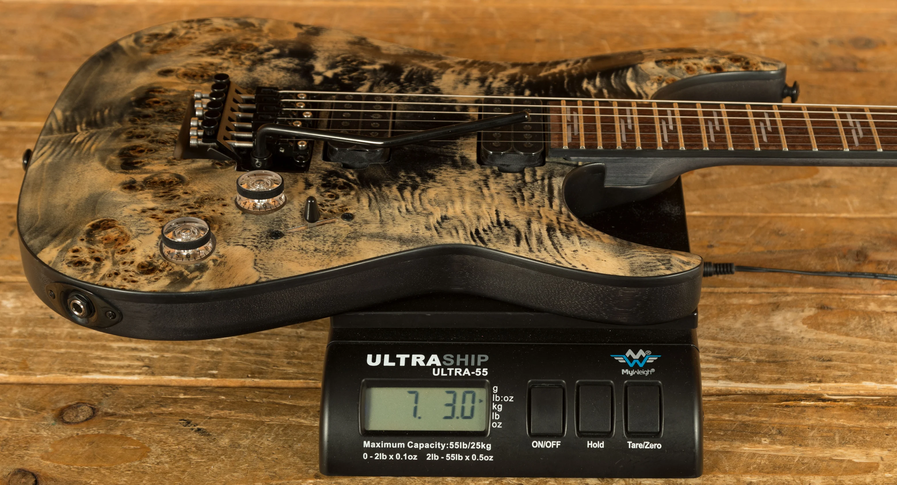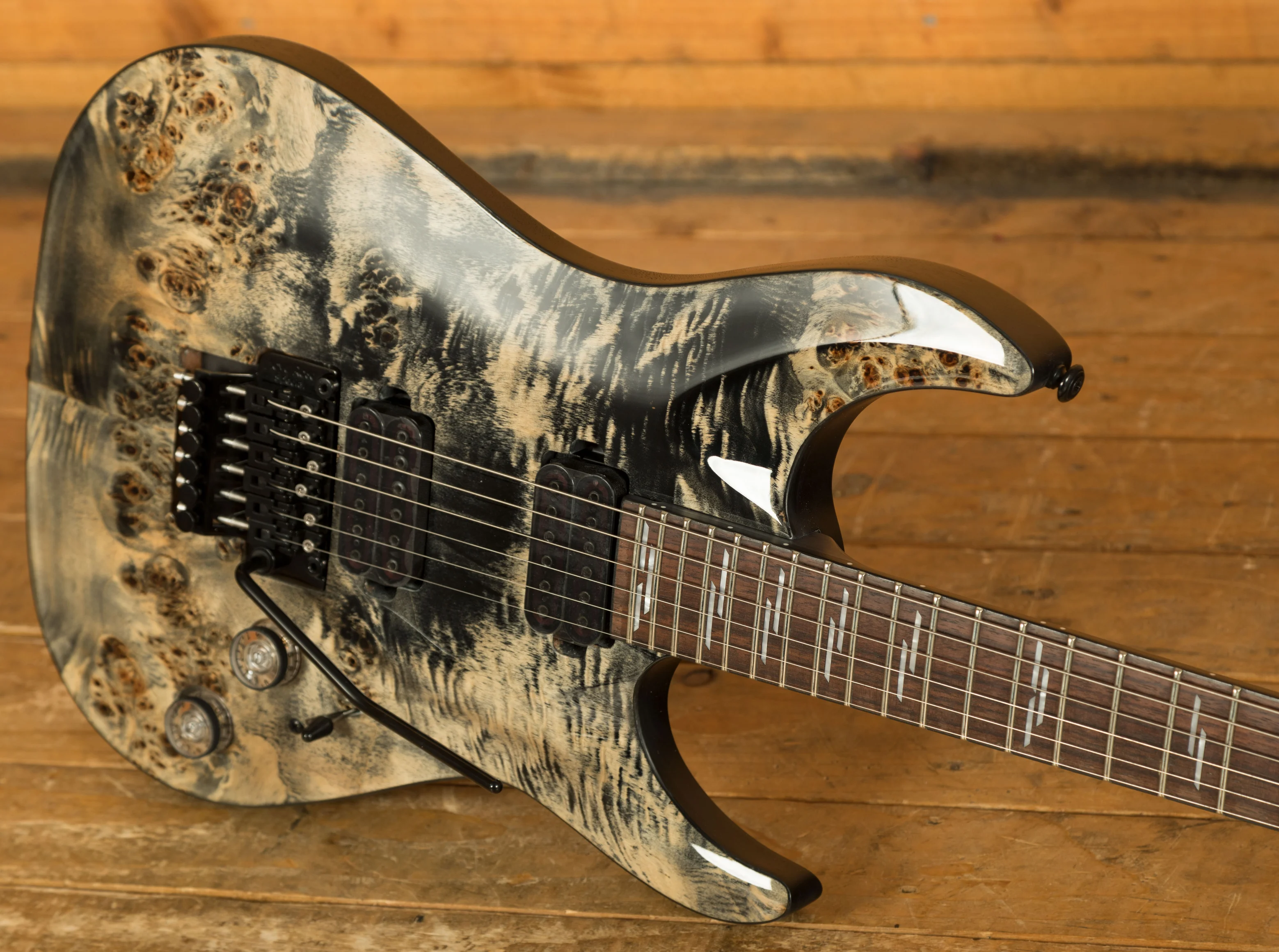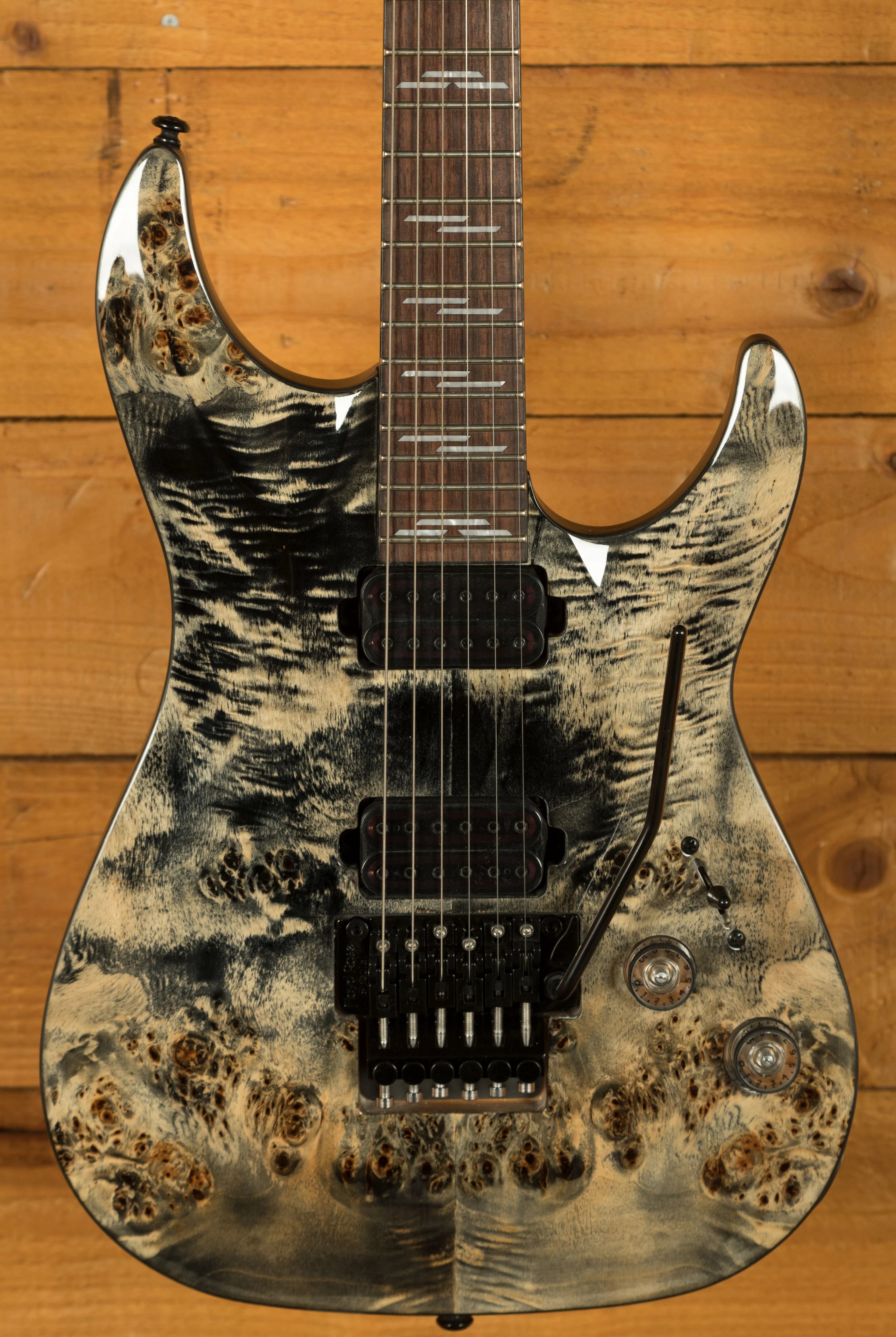The Maple neck is super snappy, providing great articulation. The Rosewood fingerboard boasts Pearloid Line inlays and a Thin C profile, 24 X-Jumbo frets and a 14" radius; it's fast and comfortable.