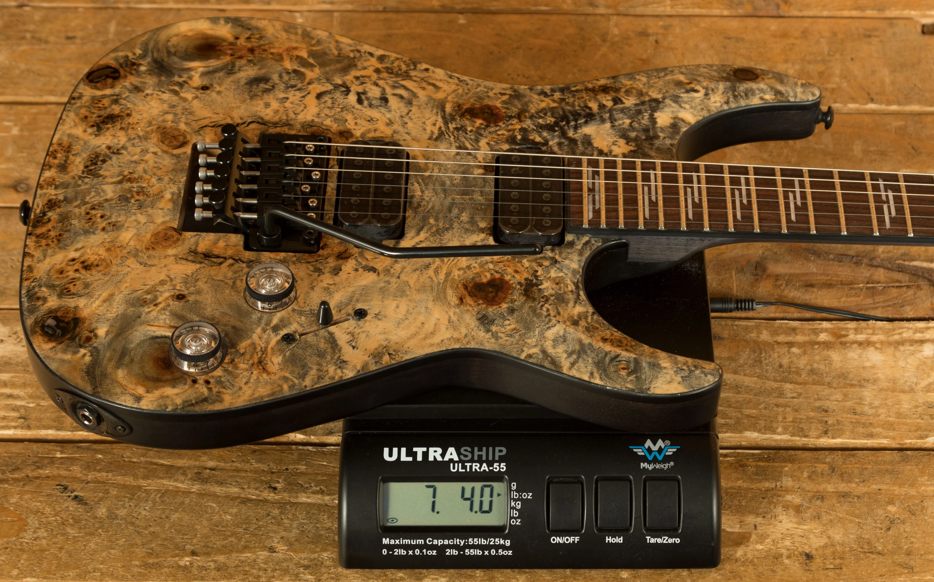 The Maple neck is super snappy, providing great articulation. The Rosewood fingerboard boasts Pearloid Line inlays and a Thin C profile, 24 X-Jumbo frets and a 14 radius, its fast and comfortable.