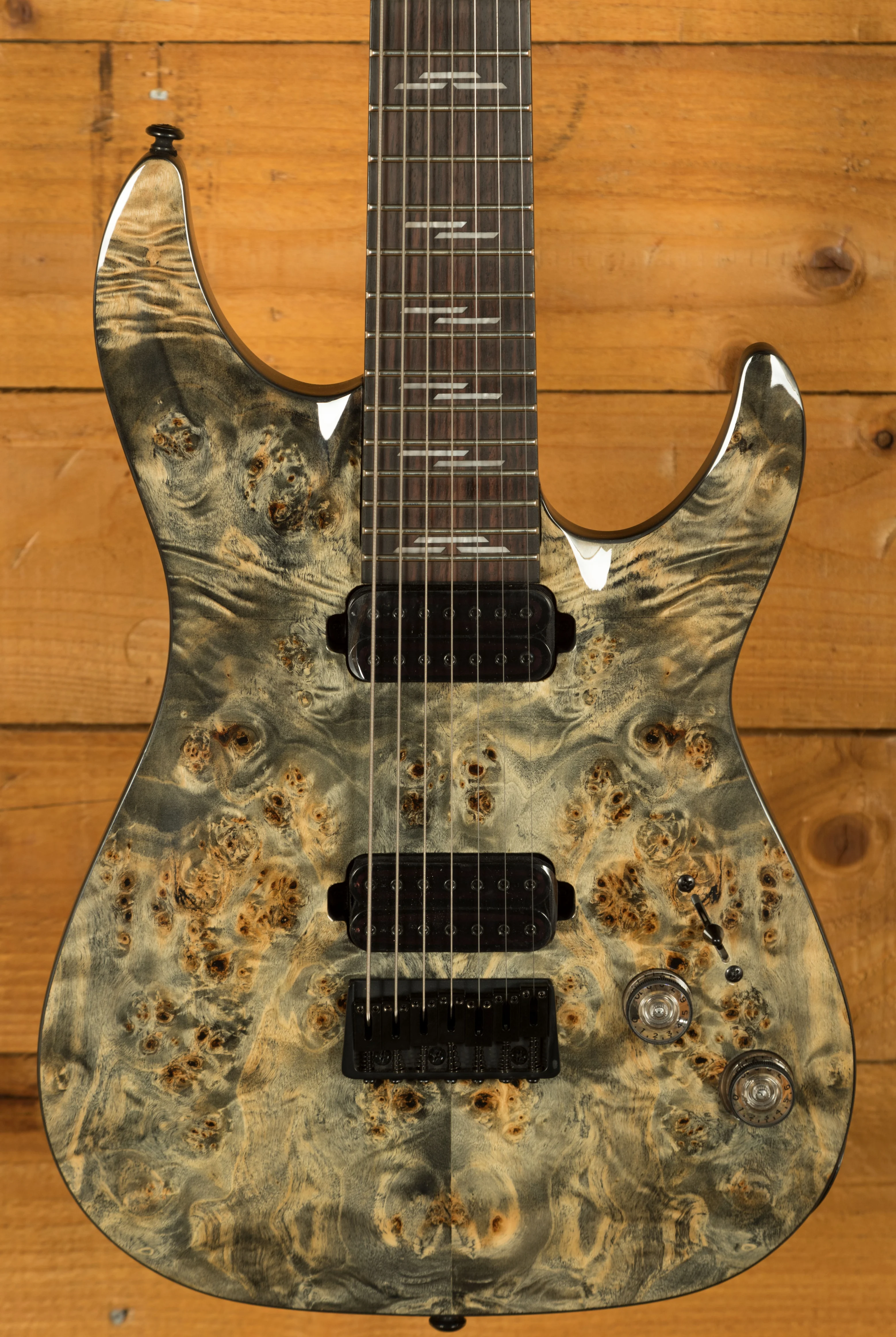 Loaded with Schecter diamond Heretic Pickups, these humbuckers give that little bit extra clarity and power. With Schecter tuners and a Schecter custom Hardtail bridge, you get great tuning stability and intonation. This is a really well designed and constructed guitar; it offers everything the modern player needs. It's a lean, mean, shred machine!
