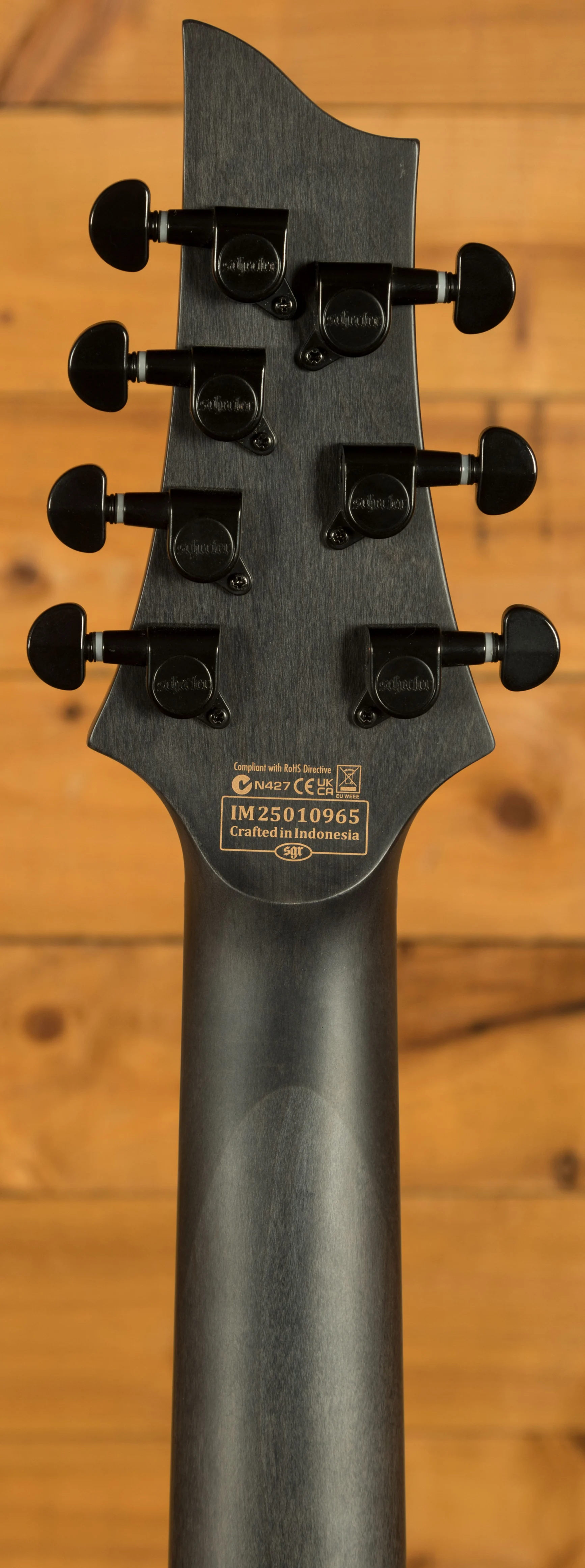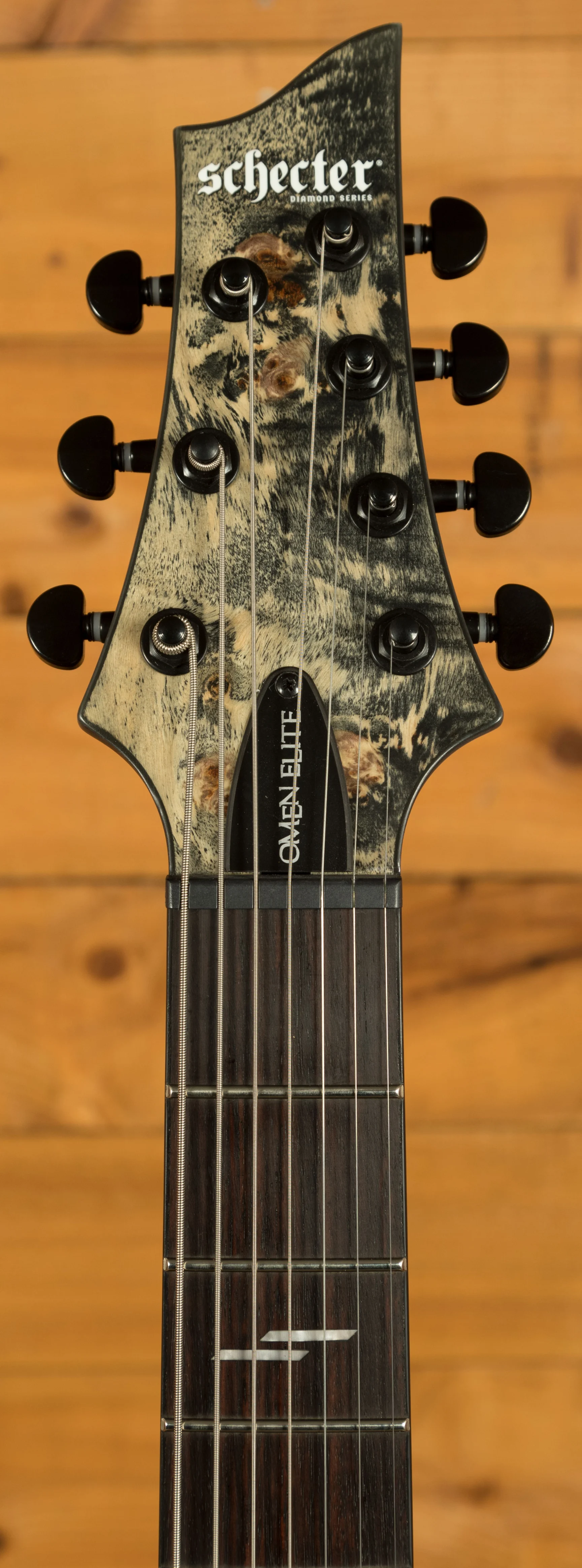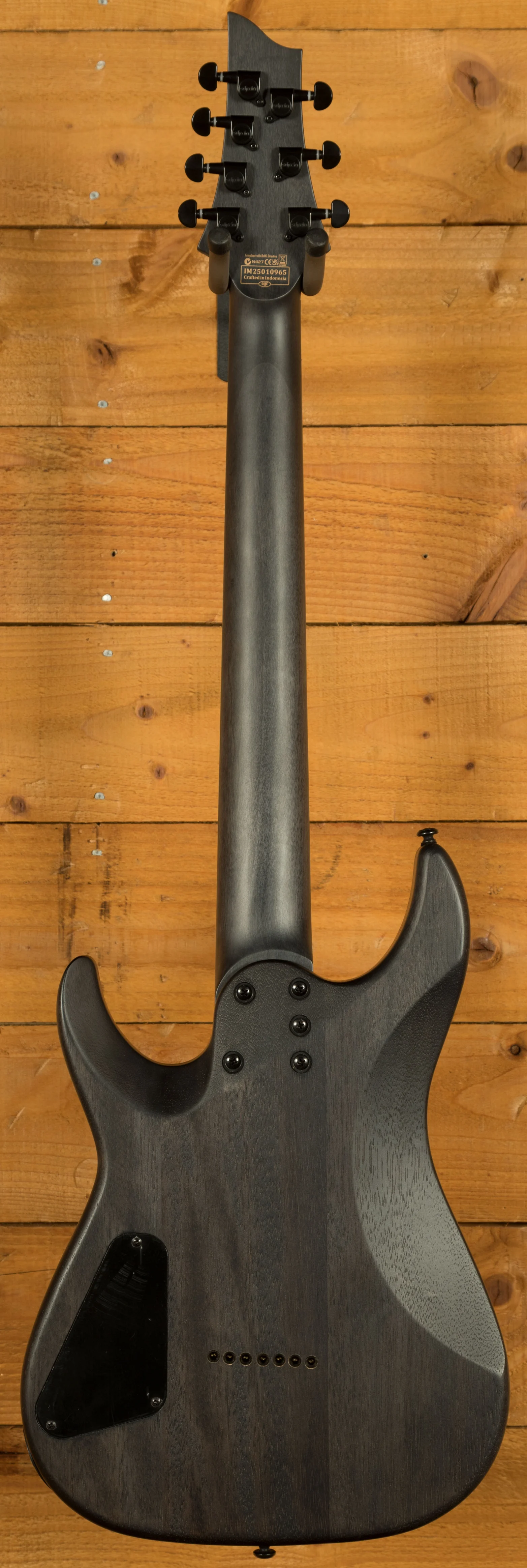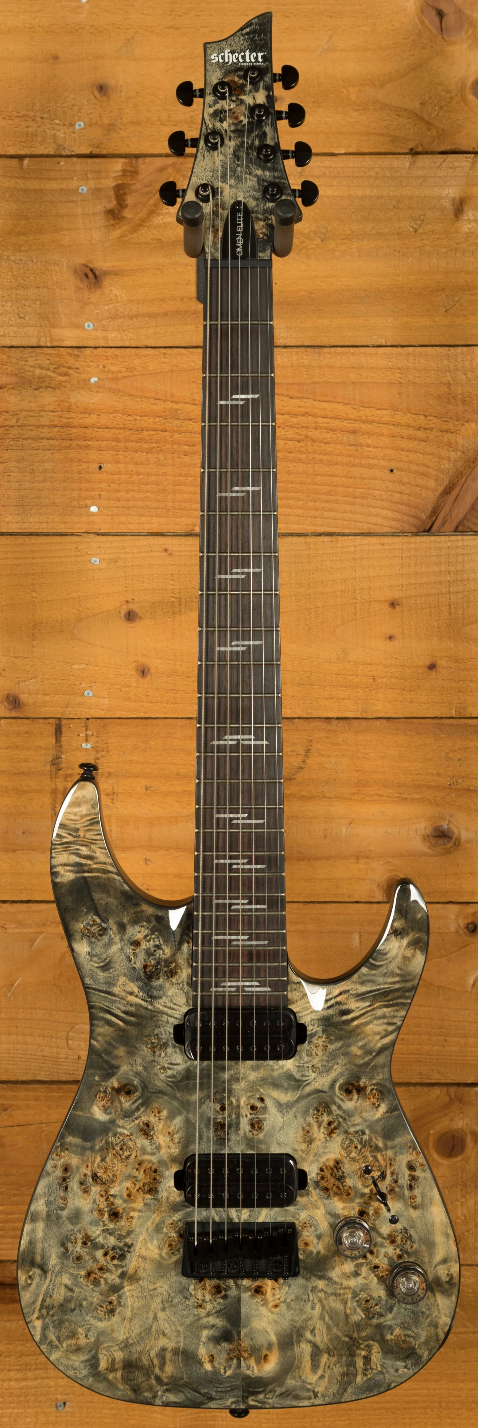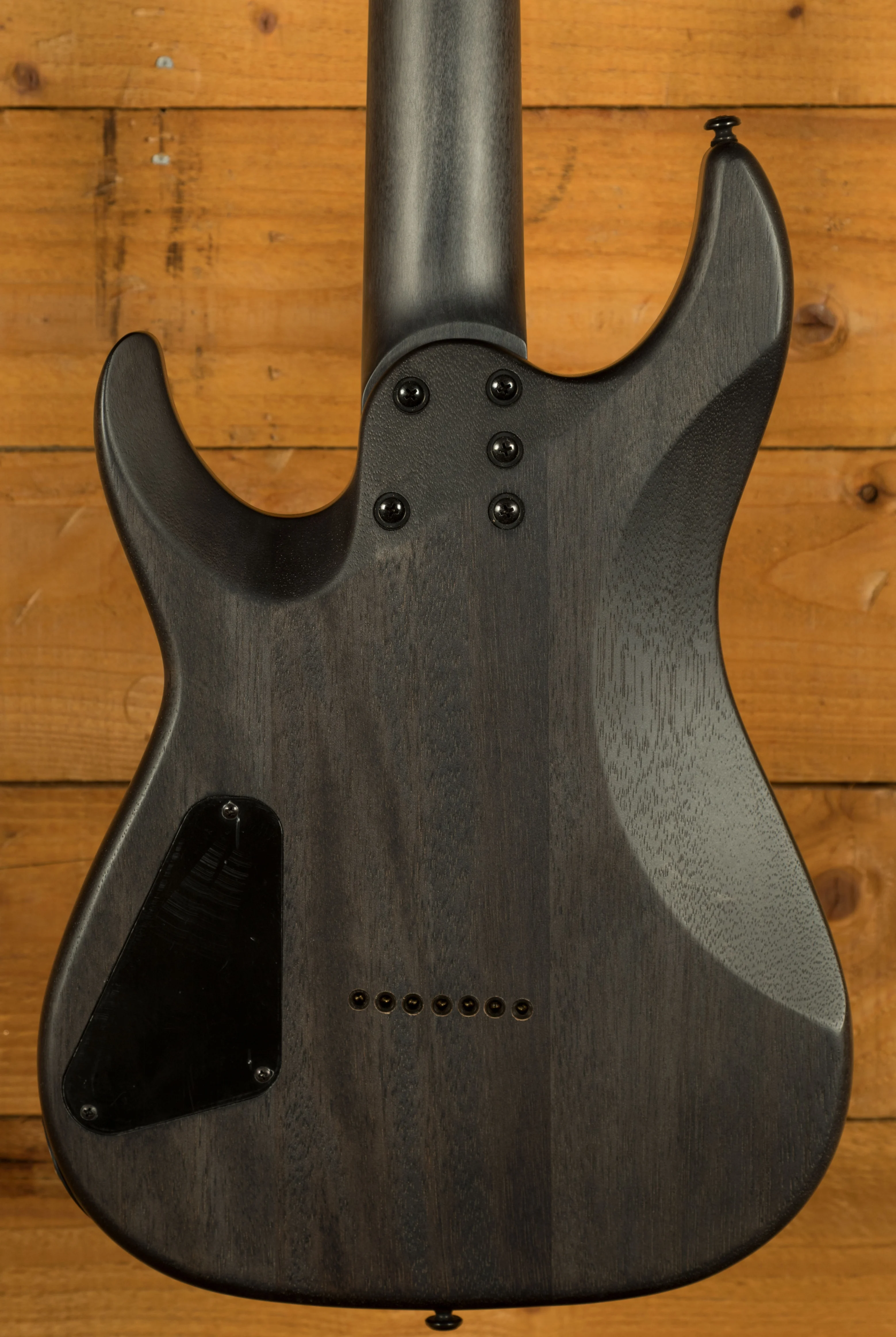 The Schecter Omen Elite-7 Charcoal is a tonal monster, with a Mahogany body, the Omen Elite-7 has a sweet arched top and a charcoal finish. The Bolt on construction gives ultimate stability and easy access to the upper frets, perfect for reaching those high notes.