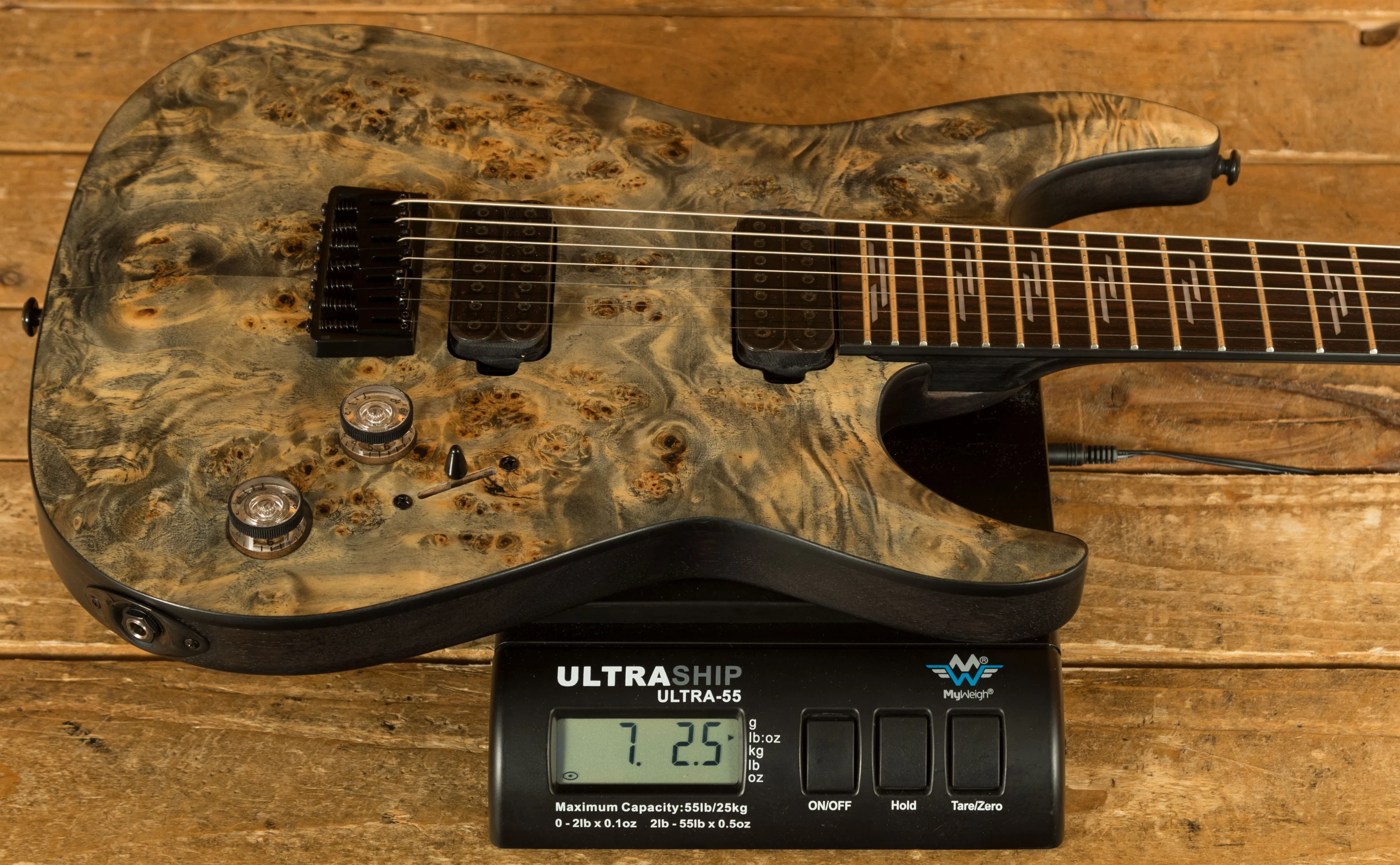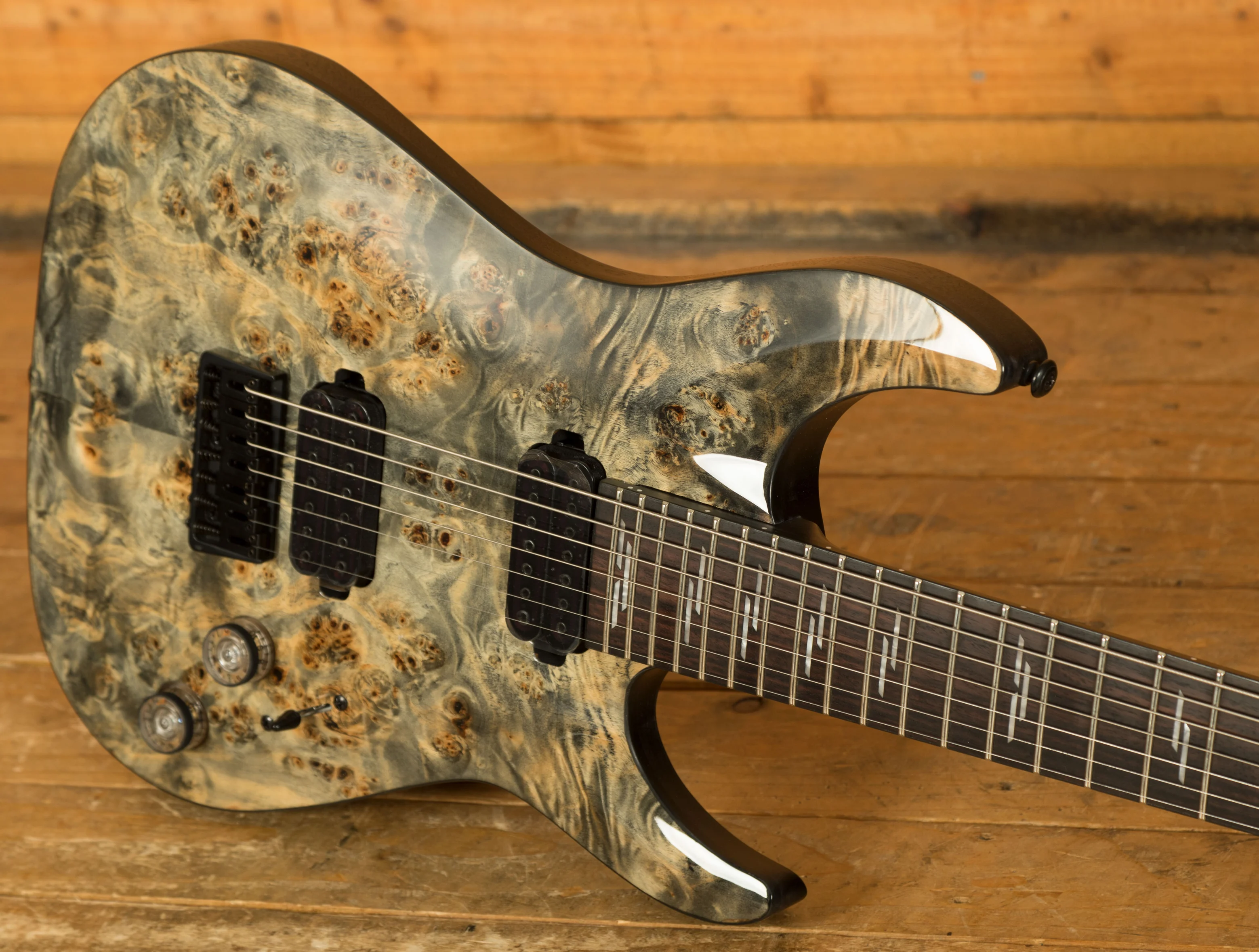 The Maple neck is super snappy, providing great articulation. The Rosewood fingerboard boasts Pearloid Line inlays and a Thin C profile, 24 X-Jumbo frets and a 16" radius, its fast and comfortable.