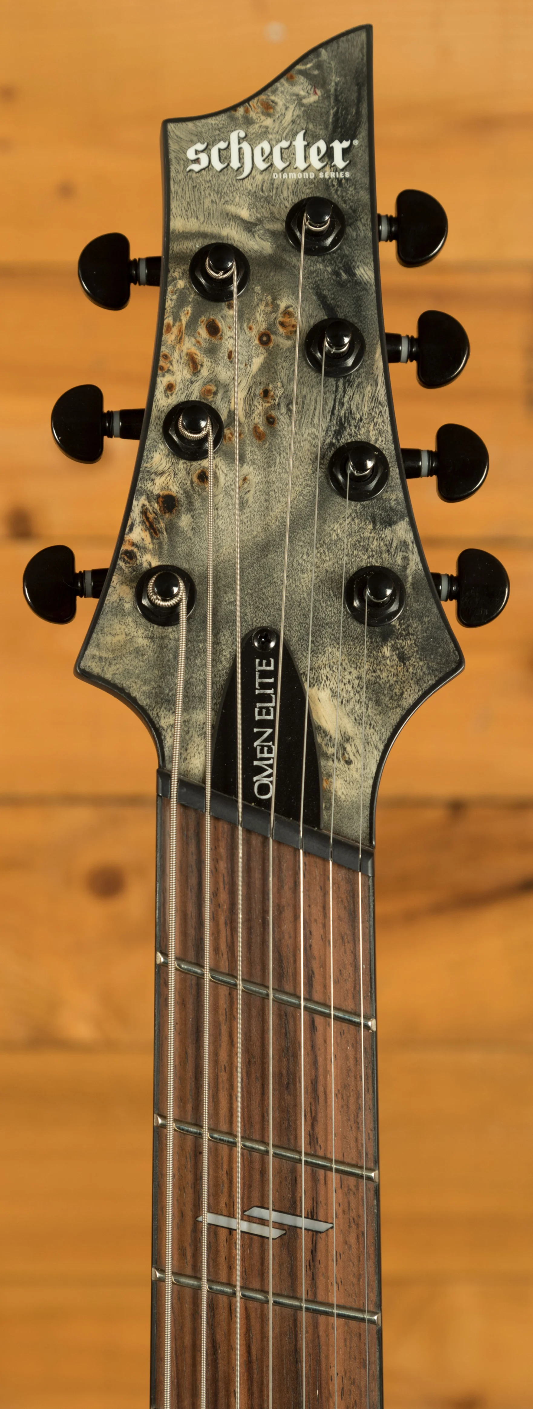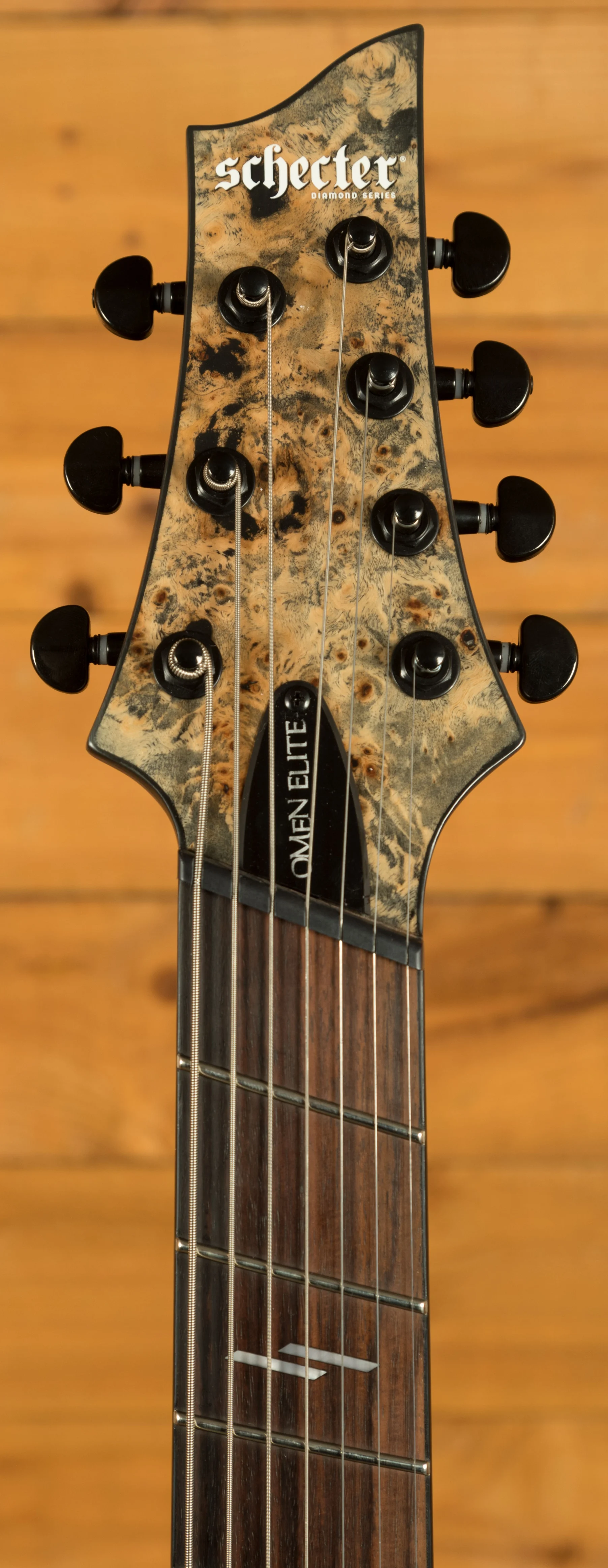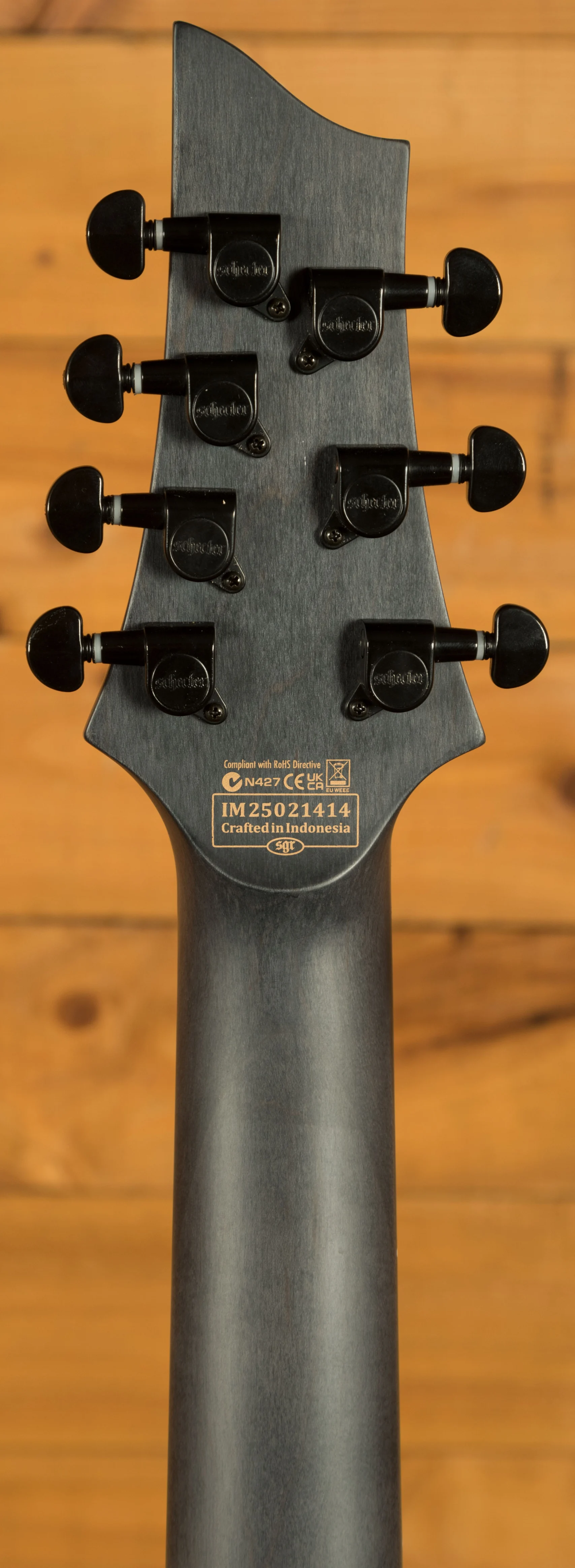 The Schecter Omen Elite-7 Charcoal is a tonal monster, with a Mahogany body, the Omen Elite-7 has a sweet arched top and a Charcoal finish. The Bolt on construction gives ultimate stability and easy access to the upper frets, perfect for reaching those high notes.