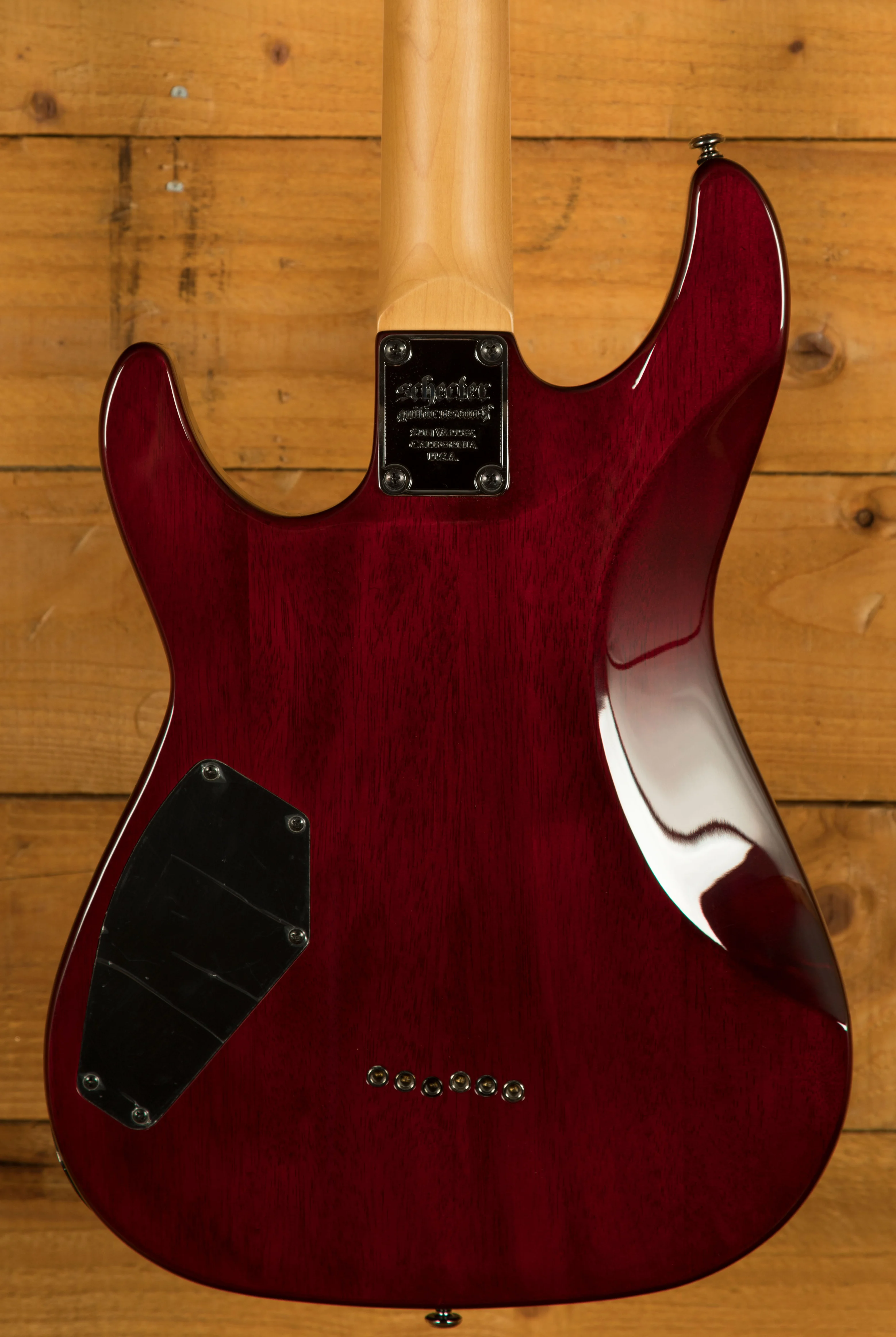 The Schecter Omen Extreme-6 is a tonal monster. With a Mahogany body, this guitar has a sweet arched top and a Black Cherry finish. The Bolt-On construction gives ultimate stability and easy access to the upper frets, perfect for reaching those high notes.