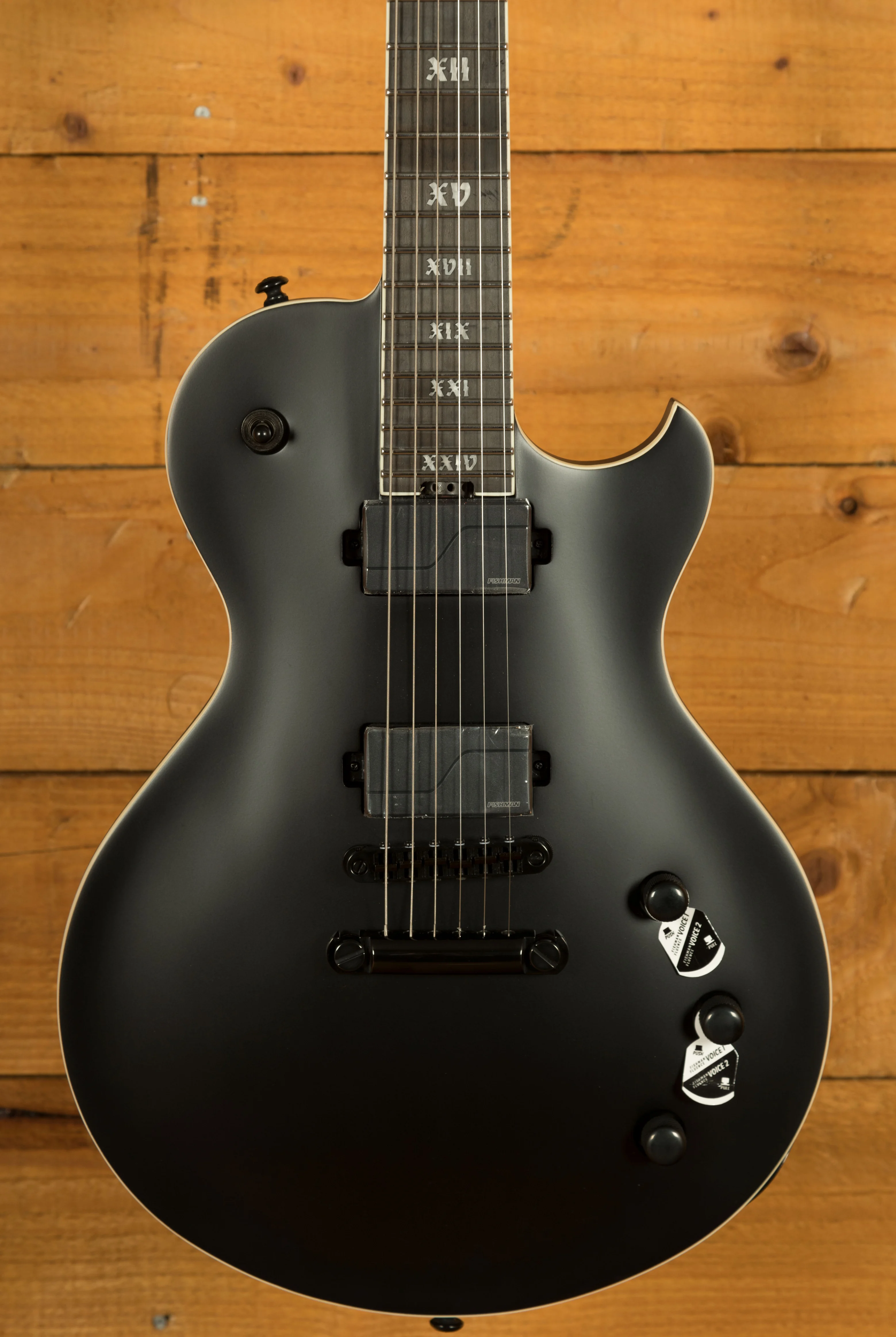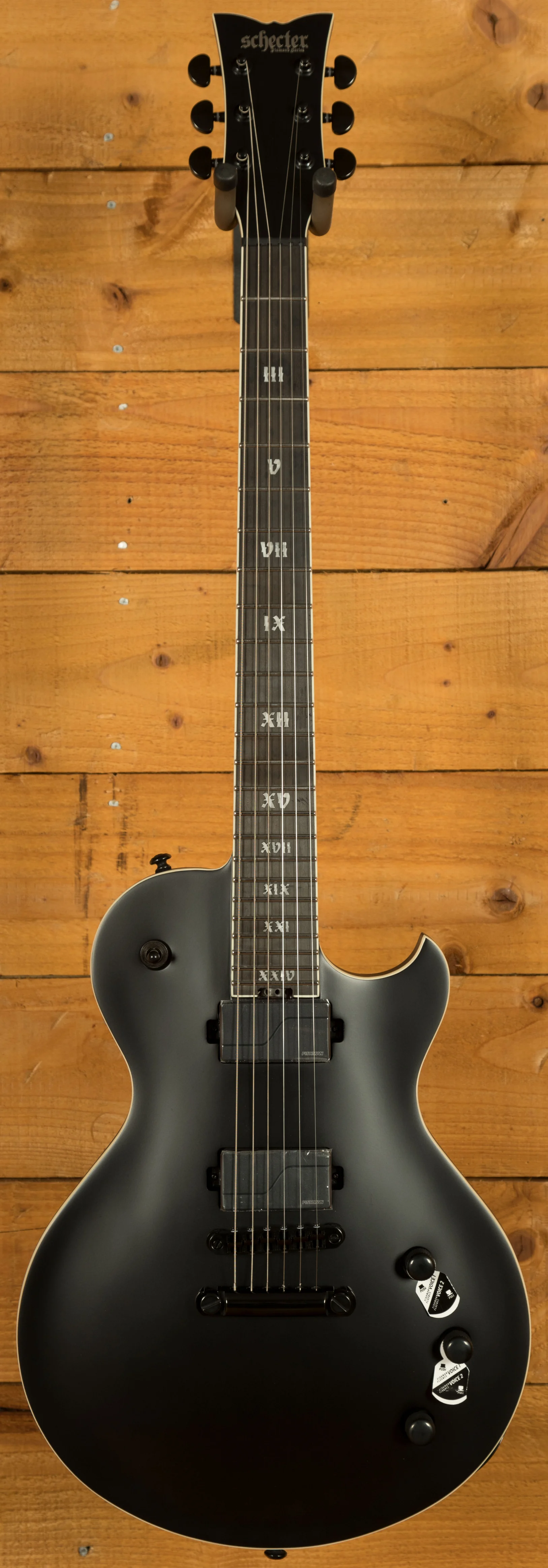 The Schecter SLS Elite Solo-II Evil Twin is a tonal monster, with a Swamp Ash body, the Solo II has a sweet arched top and a brilliant Satin Black finish. The Set-thru construction with ultra-access gives ultimate stability and easy access to the upper frets, perfect for reaching those high notes.