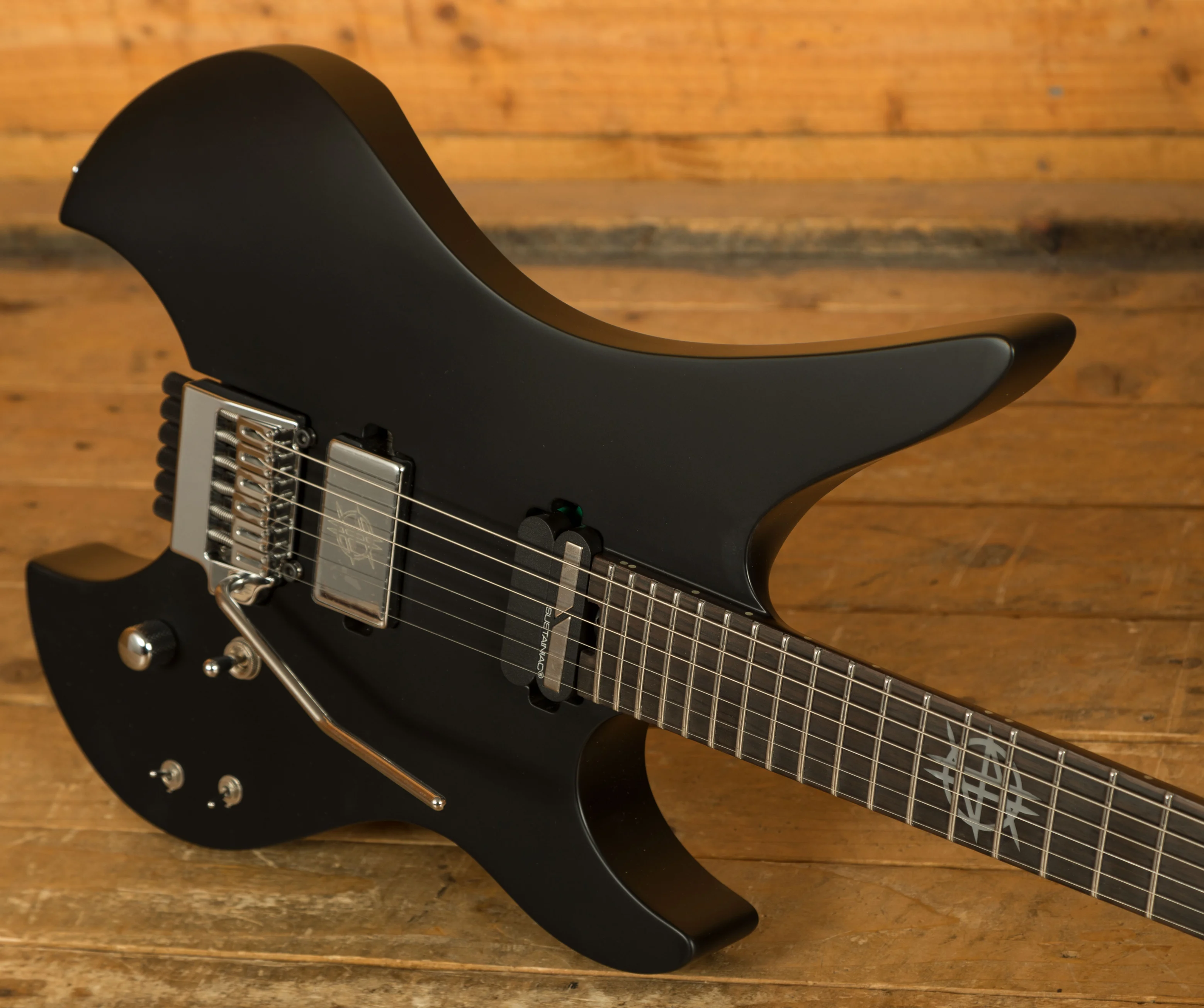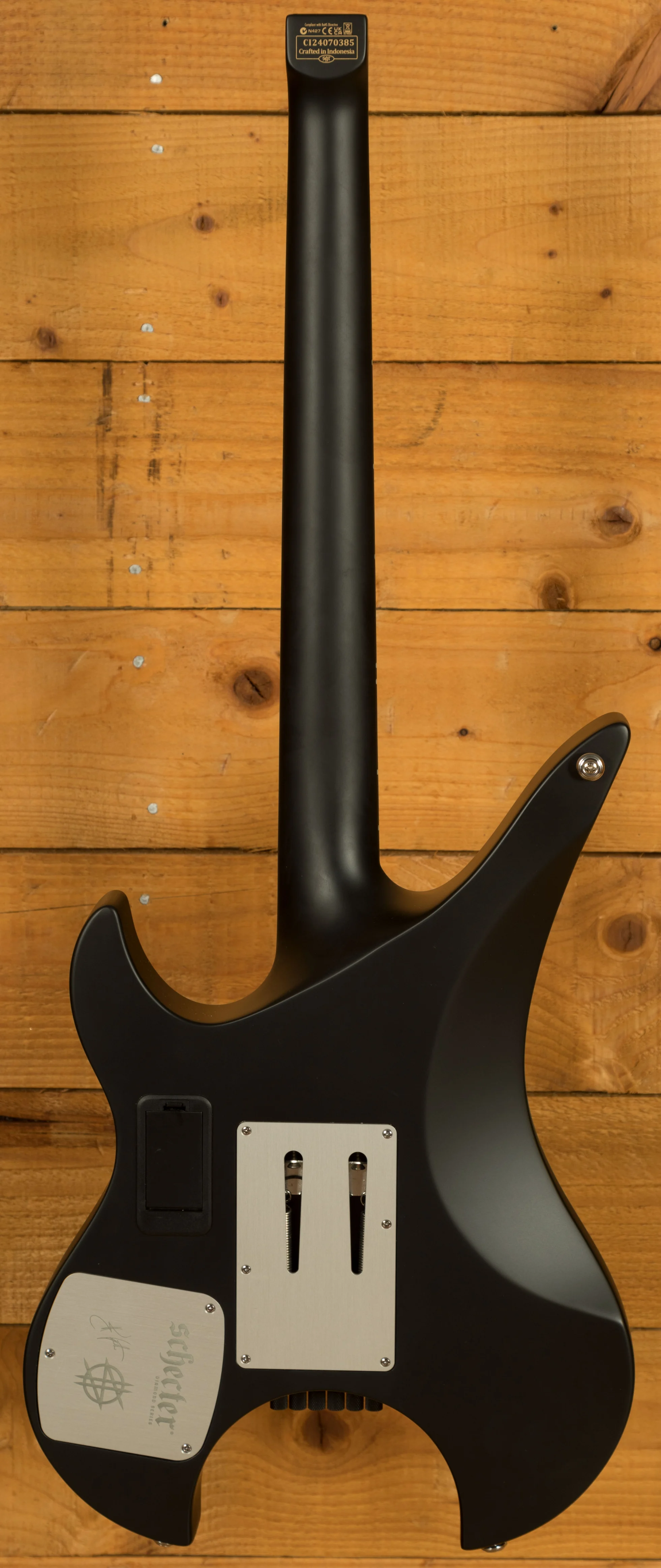 The Schecter Synyster Gates Custom-6 TR S Headless in Satin Black is an elegant instrument that blends classic design elements with cutting-edge technology. Its sleek, headless design not only enhances its aesthetic appeal but also offers several practical advantages.