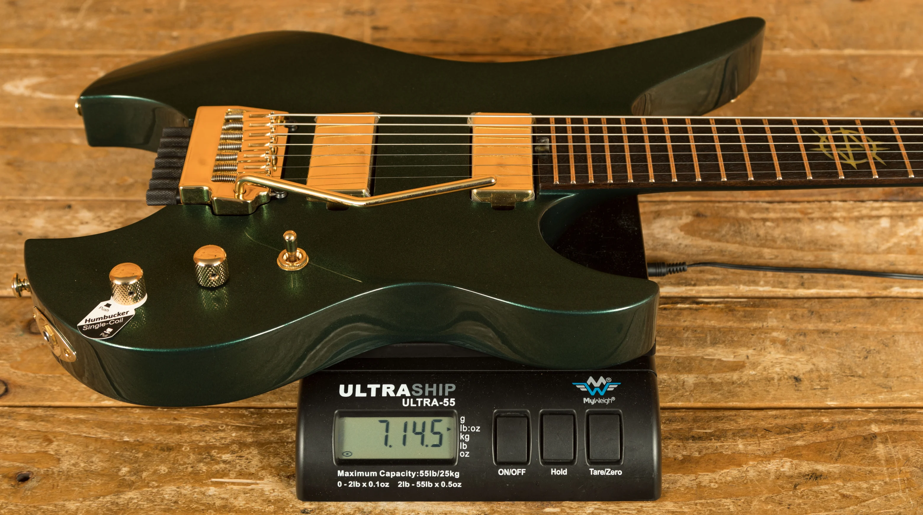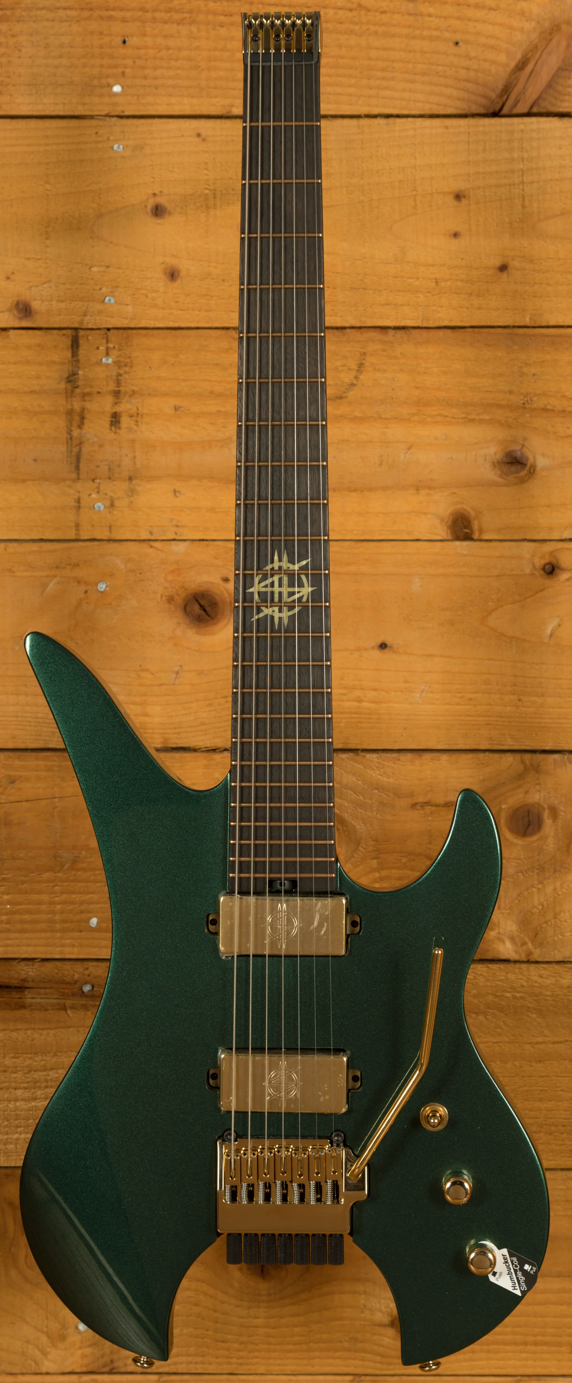 The Schecter Synyster Gates Custom-7 TR Headless in Oak Green Metallic is a stunning instrument that blends classic design elements with cutting-edge technology. Its sleek, headless design not only enhances its aesthetic appeal but also offers several practical advantages.