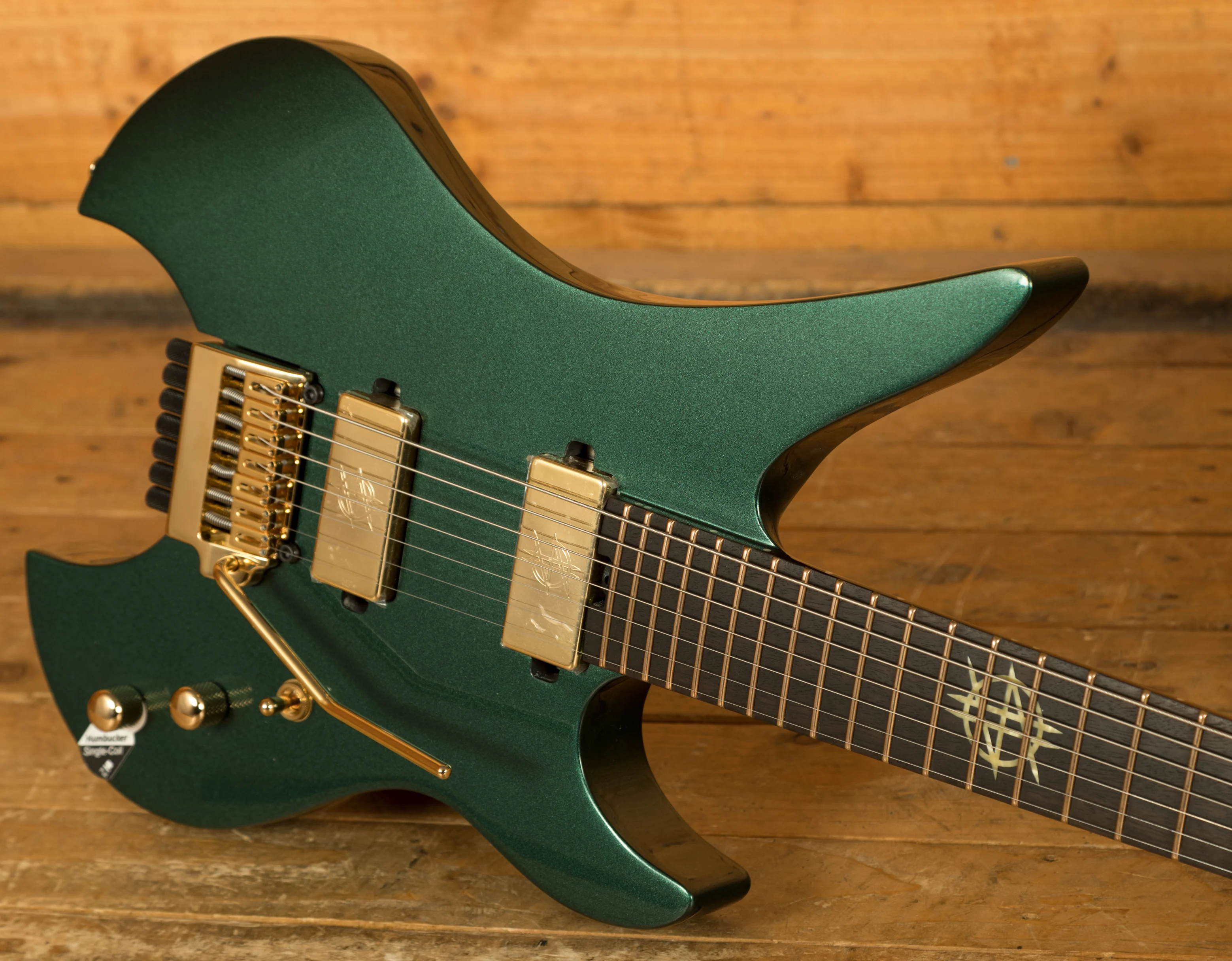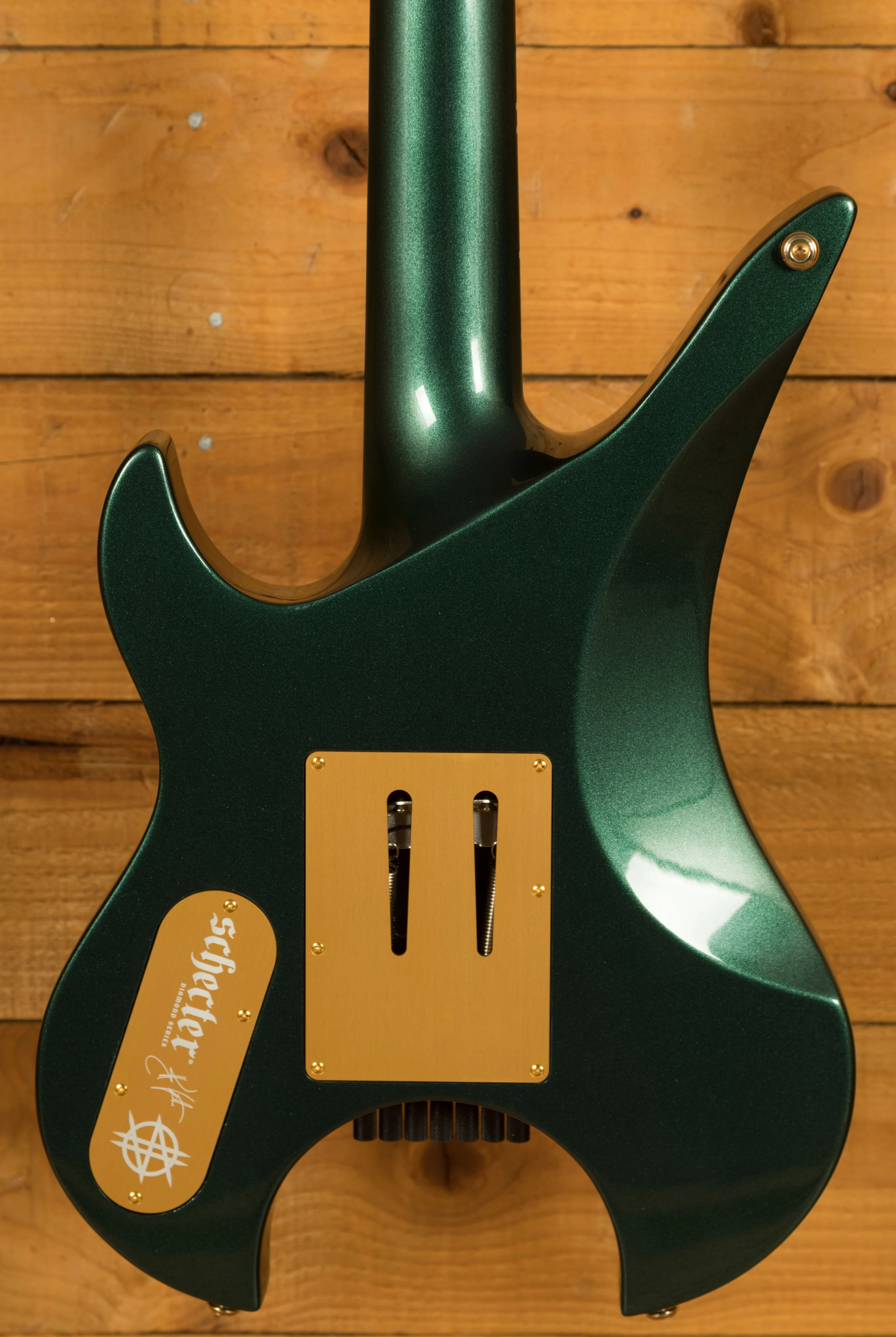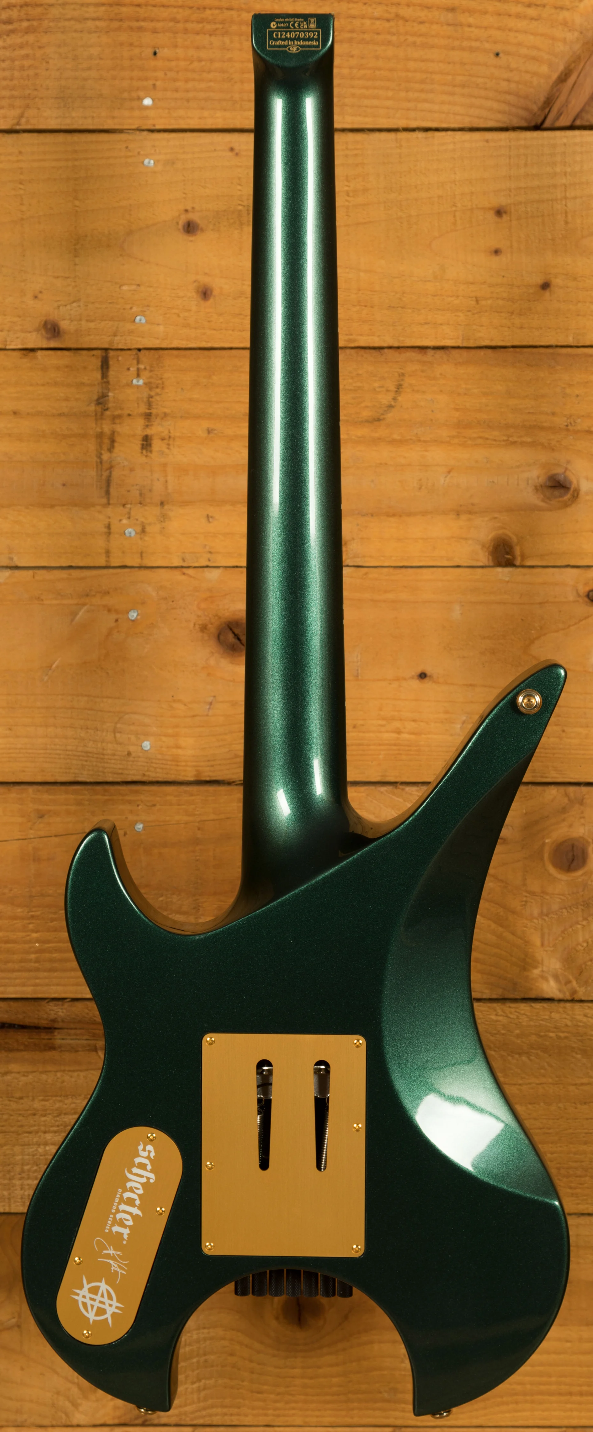 Synyster Gates, the iconic guitarist of Avenged Sevenfold, has forged a long-lasting partnership with Schecter Guitars. Known for his flamboyant stage presence and technical prowess, Gates has collaborated with Schecter to create a series of high-performance instruments that have become synonymous with his signature sound. The Schecter Synyster Gates Custom-7 TR Headless in Oak Green Metallic marks a significant milestone in this collaboration, as it represents Schecter's first foray into the world of headless guitars.