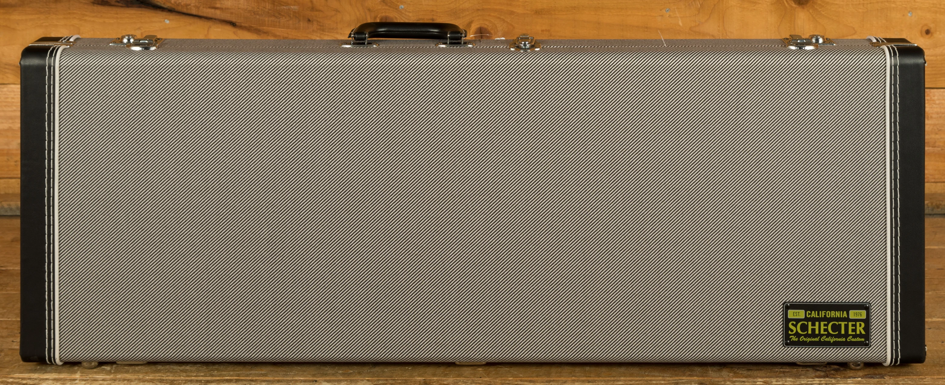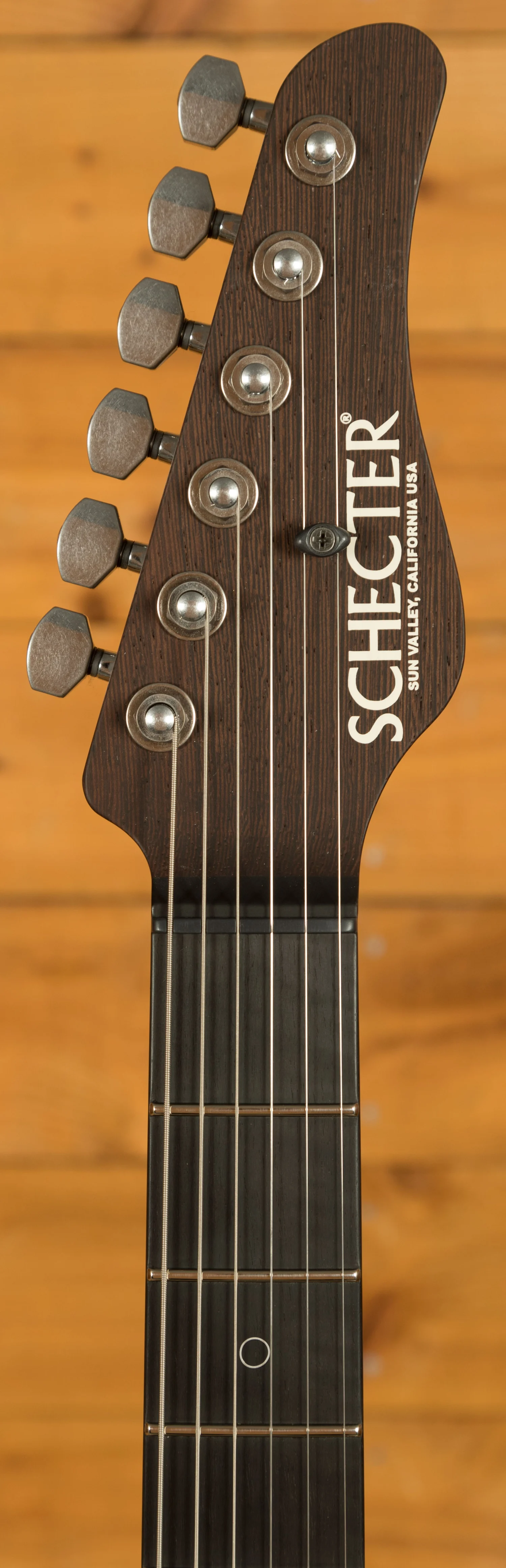 The neck is crafted from responsive and great feeling Wenge with a smooth satin finish and the comfortable Custom C shape. The Macassar Ebony fingerboard (14" radius) is fitted with 22 Jescar Premium German Silver Frets, featuring the precise Custom Shop fretwork essential for professional performance. The versatile HSS pickup configuration features the custom NJ Atombucker and SubAtomics single-coils. Hardware includes Schecter/Hipshot Staggered Locking Tuners and the Schecter Fulcrem Trem, with the master tone control being push-pull enabled for humbucker coil-splitting.
