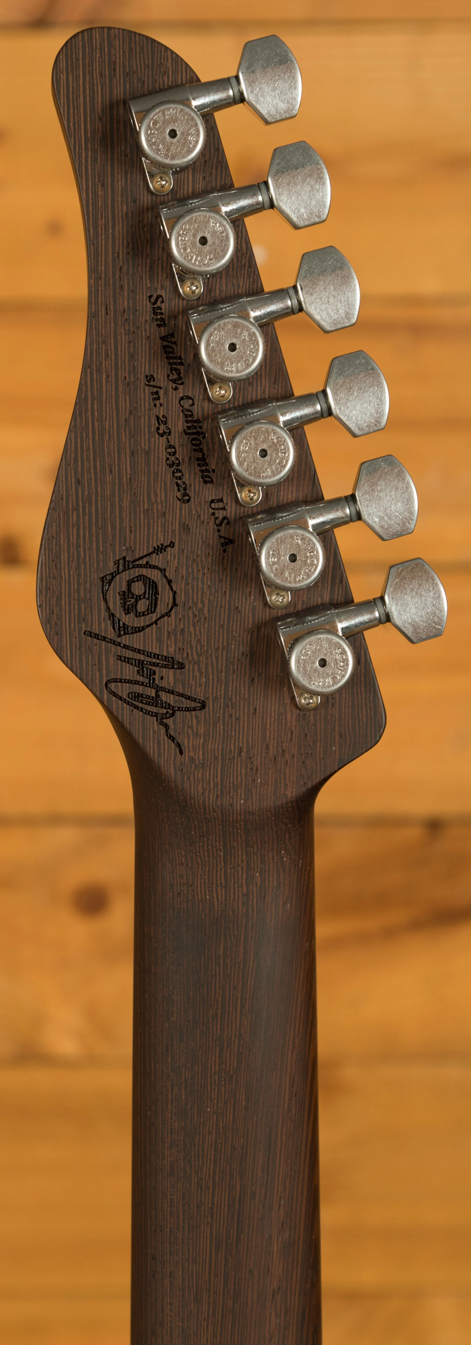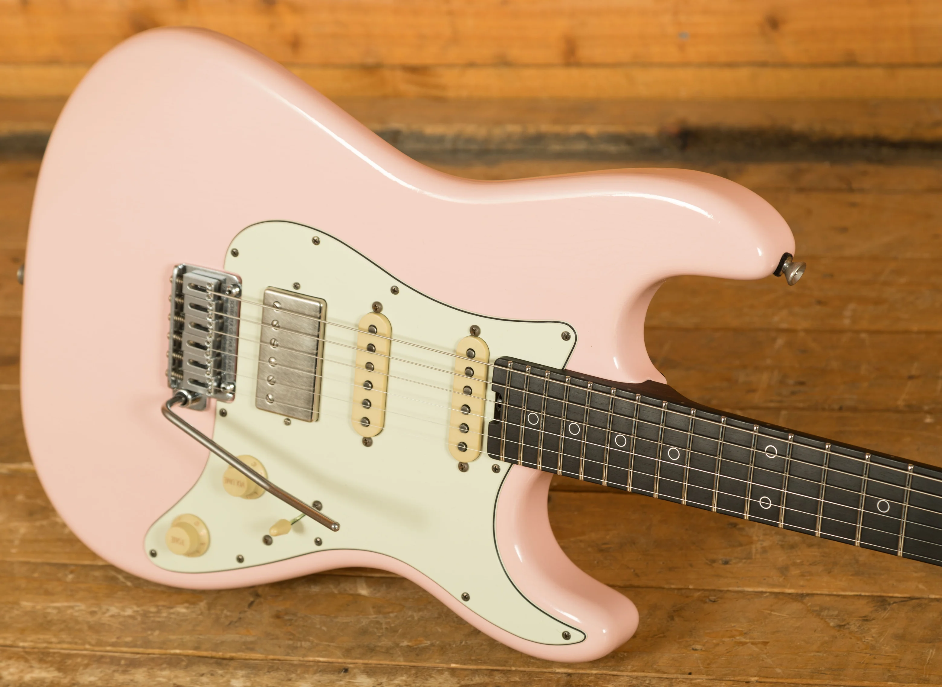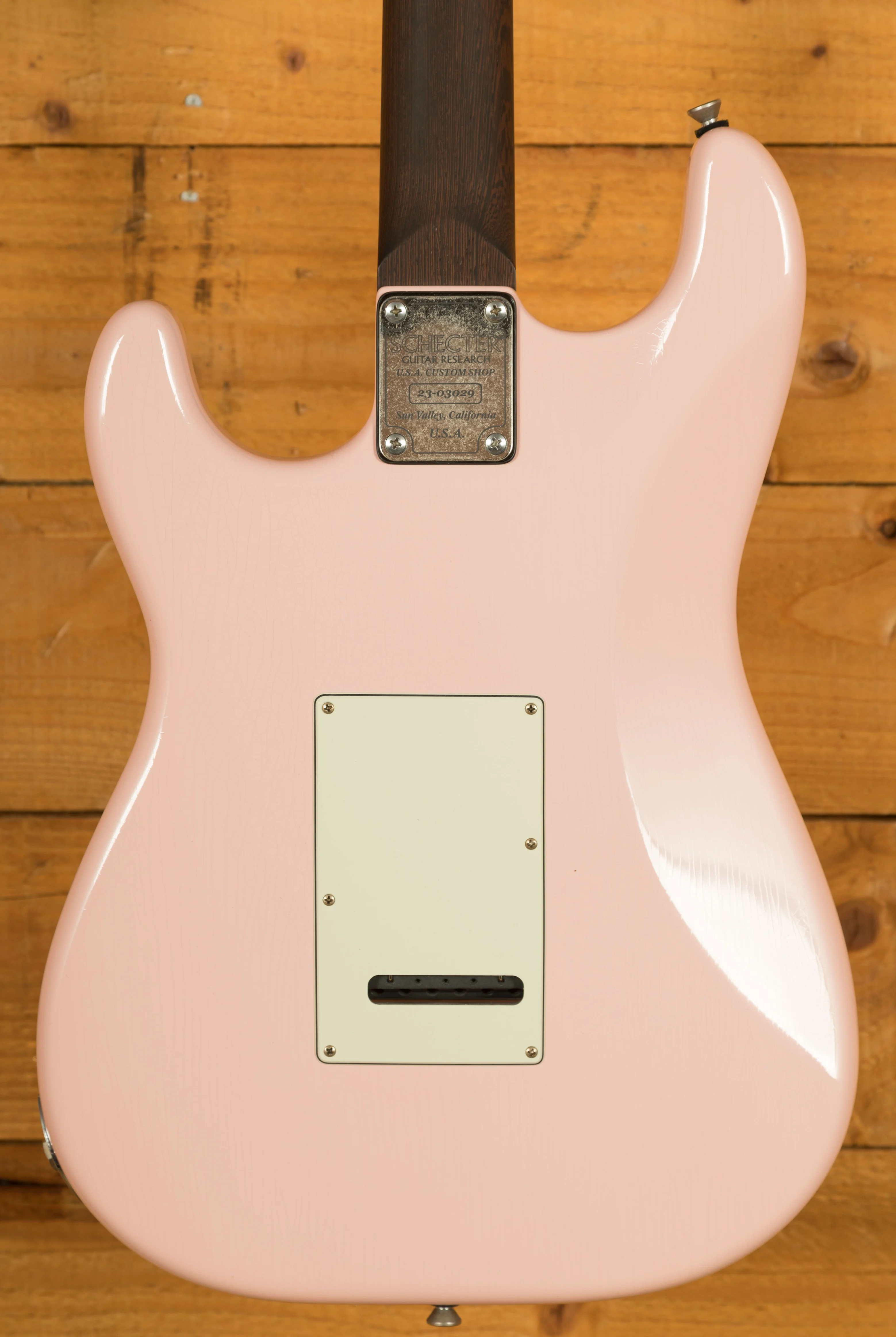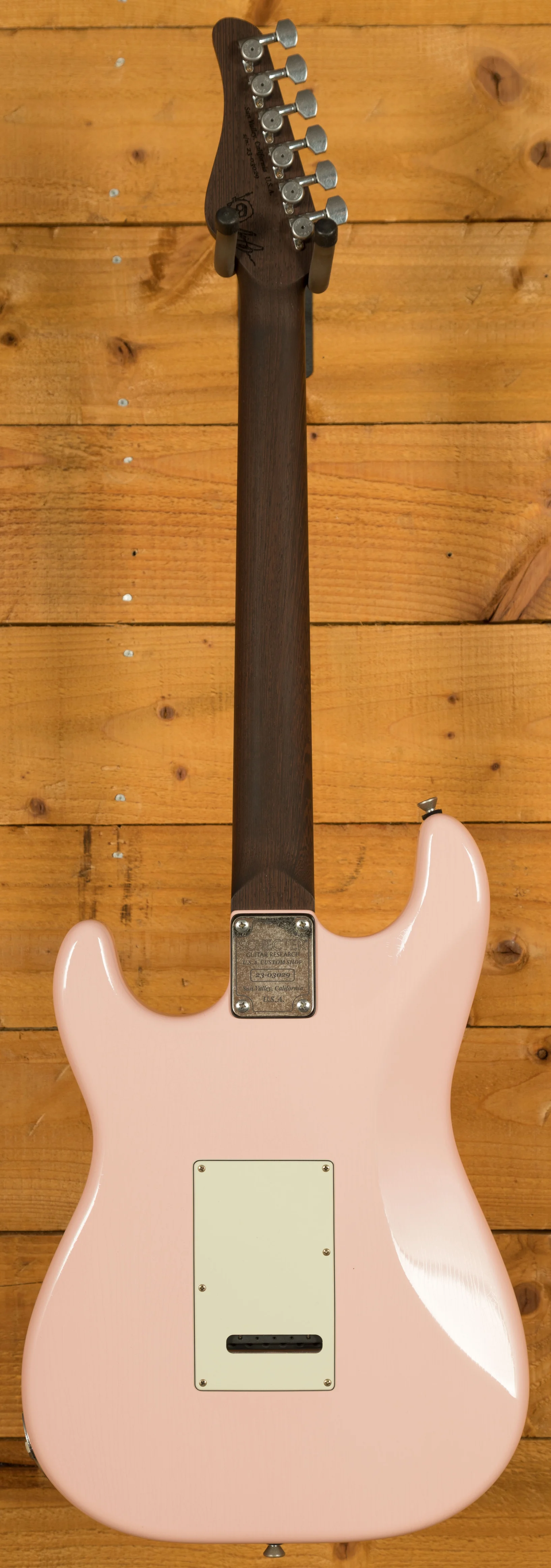 The build quality rivals the best in the industry, standing alongside Anderson, Tyler, Suhr, and Collings. It features a resonant Alder body finished in the pristine Atomic Pink Aged Nitrocellulose Lacquer. The nitro finish has been expertly aged, displaying subtle lacquer checking for a desirable vintage aesthetic.