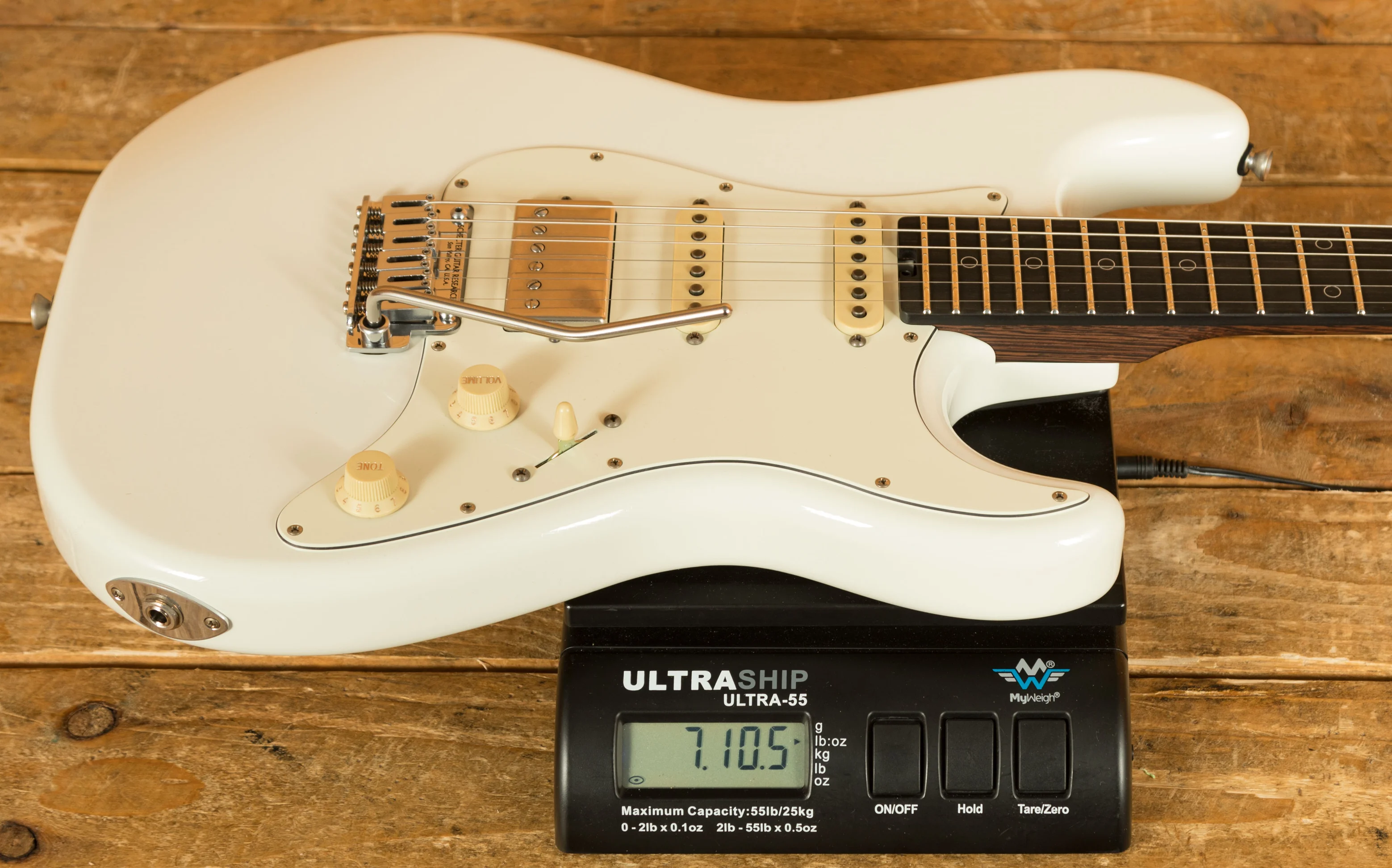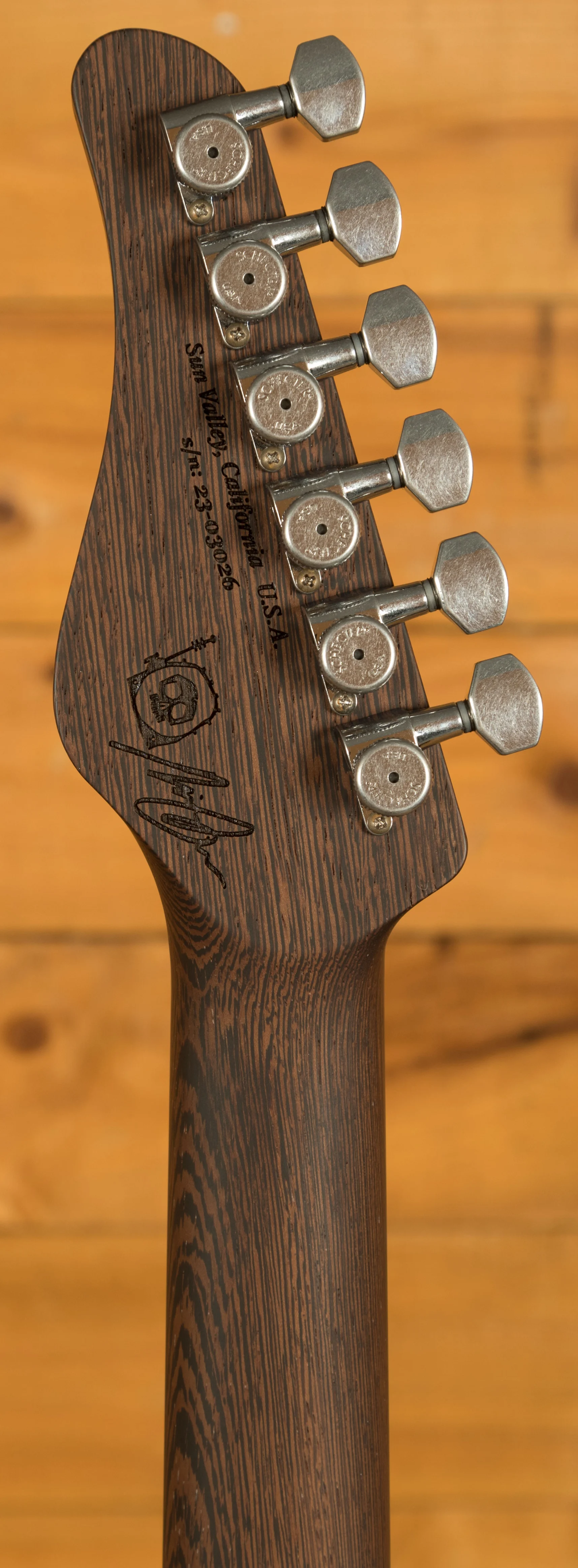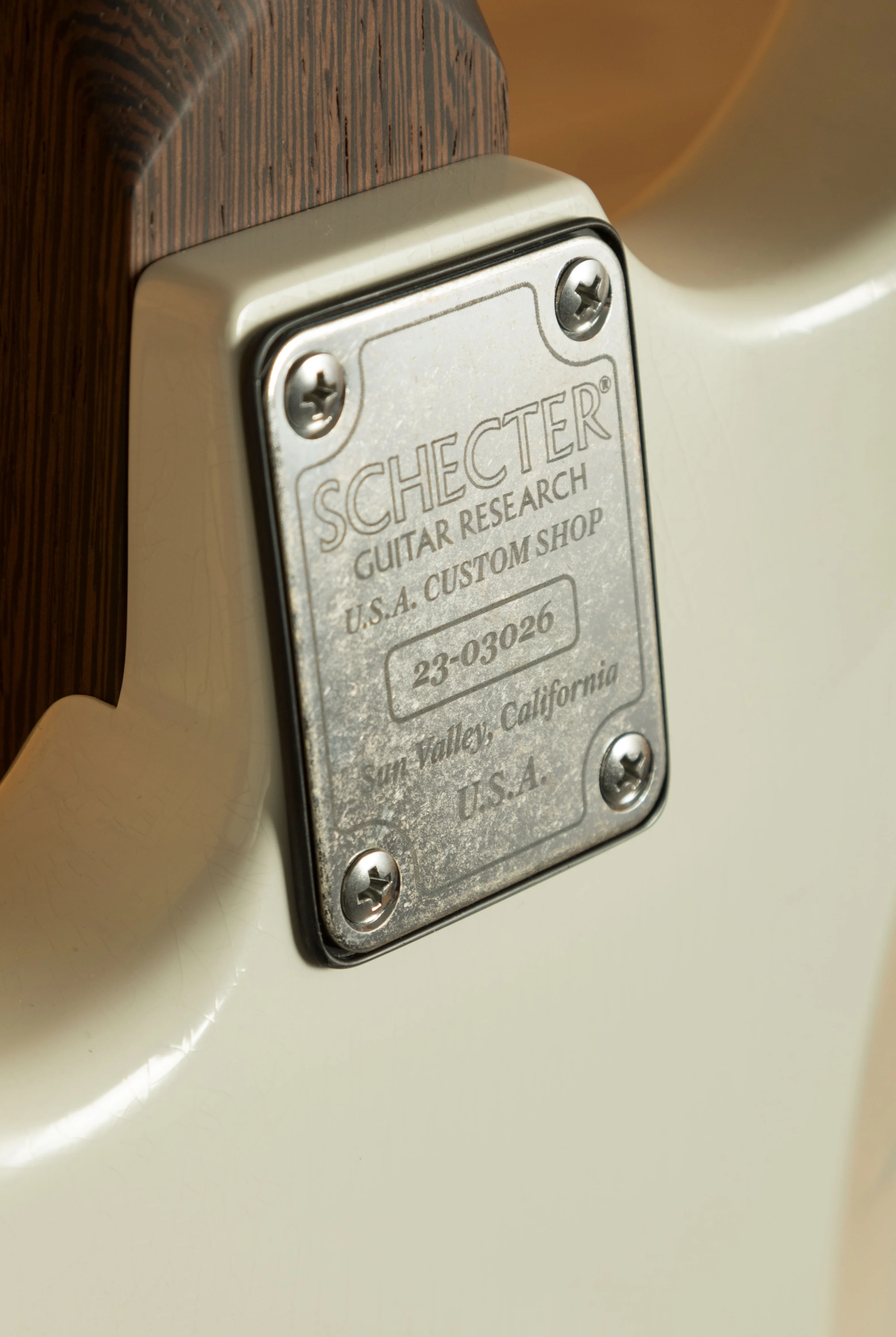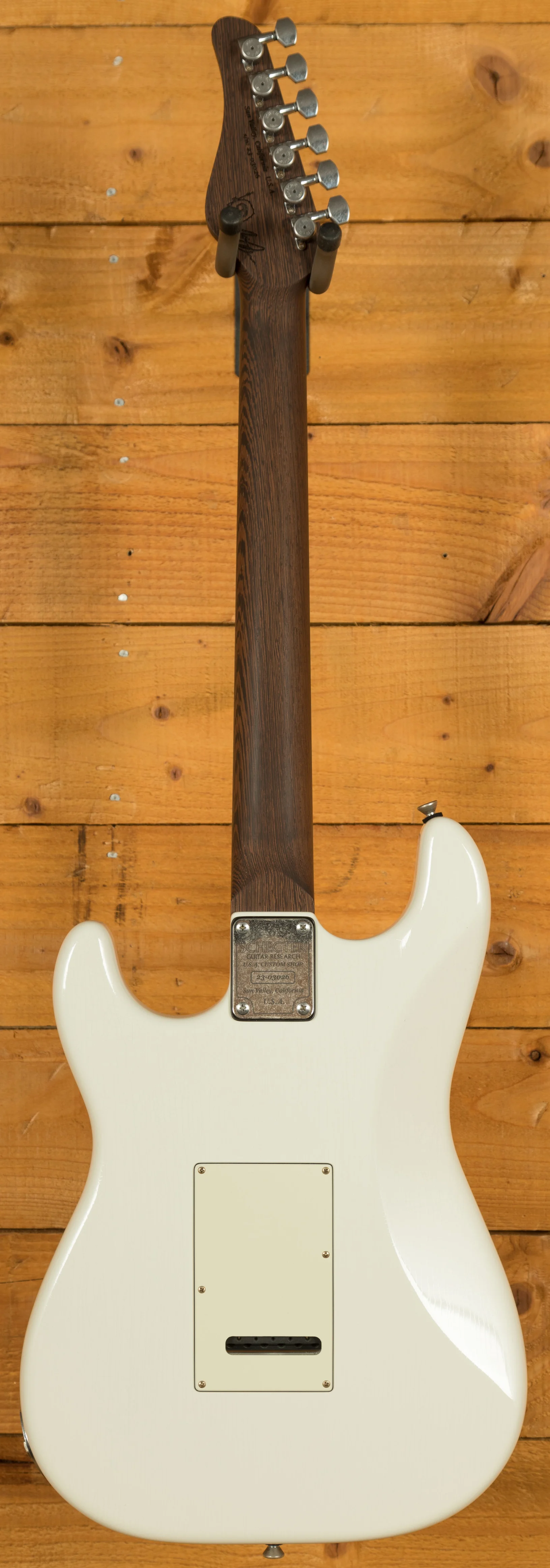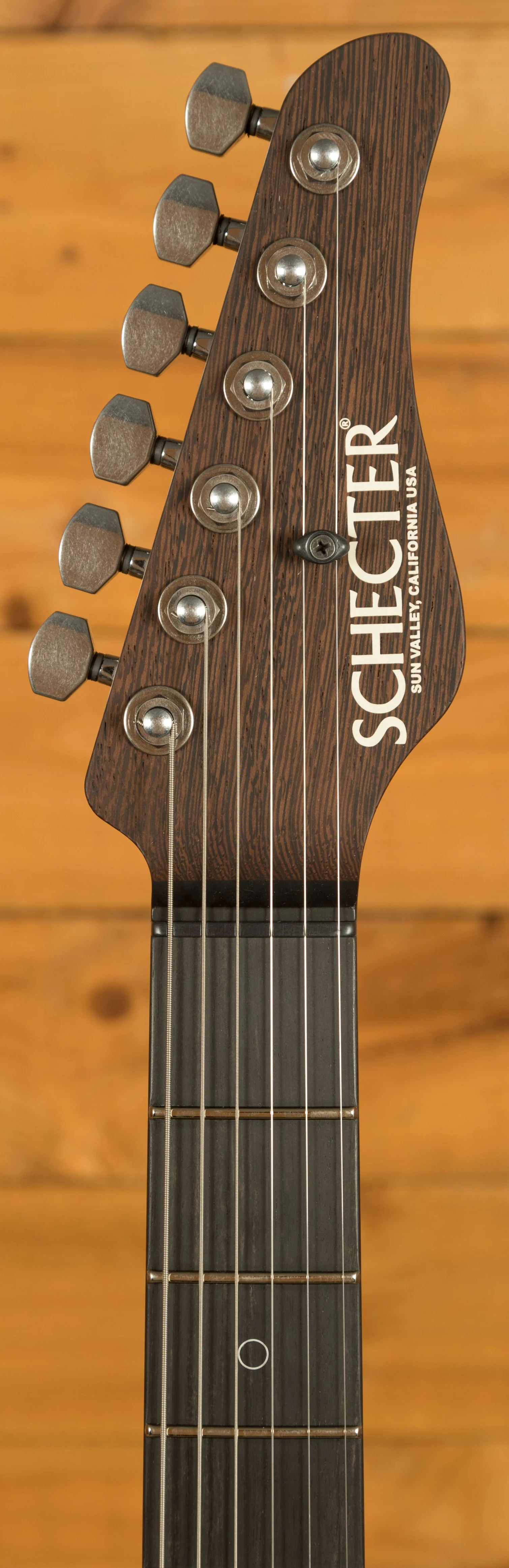 The neck is crafted from responsive and great feeling Wenge with a smooth satin finish and the comfortable Custom C shape. The Macassar Ebony fingerboard (14" radius) is fitted with 22 Jescar Premium German Silver Frets, featuring the precise Custom Shop fretwork essential for professional performance. The versatile HSS pickup configuration features the custom NJ Atombucker and SubAtomics single-coils. Hardware includes Schecter/Hipshot Staggered Locking Tuners and the Schecter Fulcrem Trem, with the master tone control being push-pull enabled for humbucker coil-splitting.