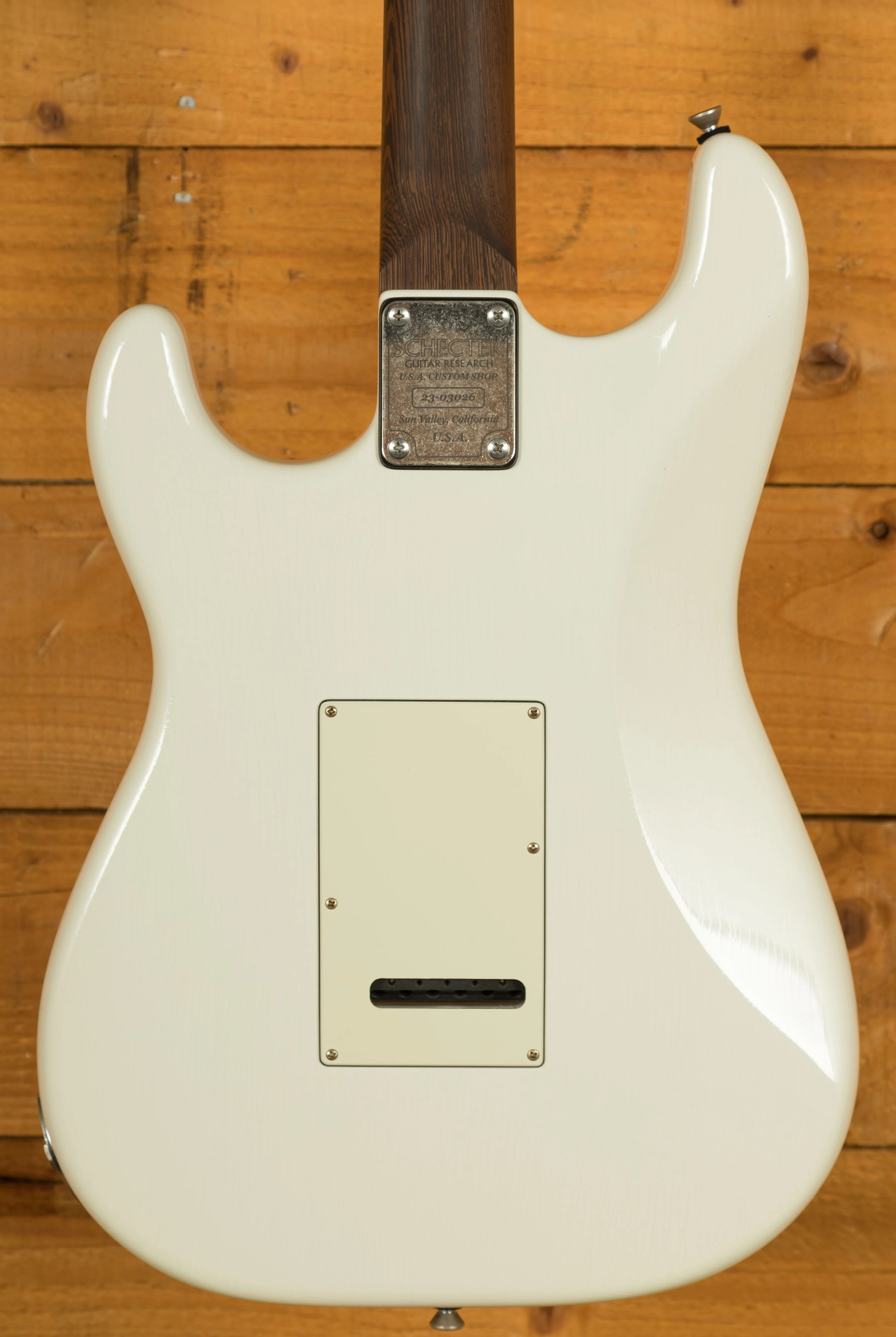 The build quality rivals the best in the industry, standing alongside Anderson, Tyler, Suhr, and Collings. It features a resonant Alder body finished in the pristine Atomic Snow Aged Nitrocellulose Lacquer. The nitro finish has been expertly aged, displaying subtle lacquer checking for a desirable vintage aesthetic.