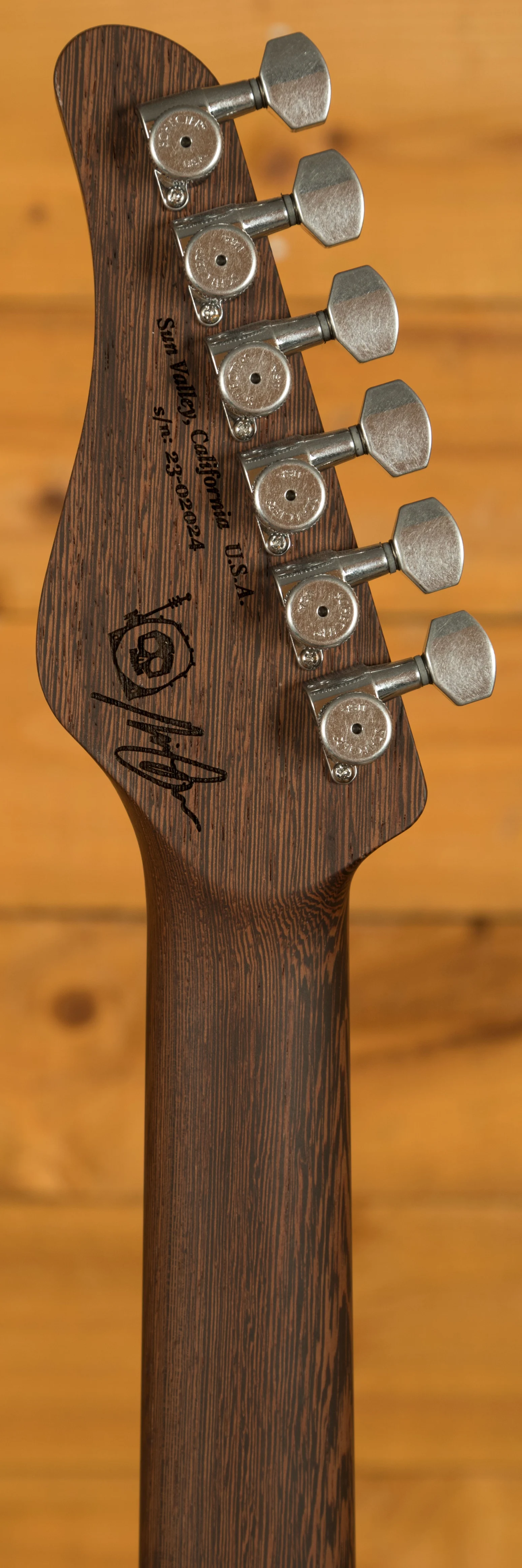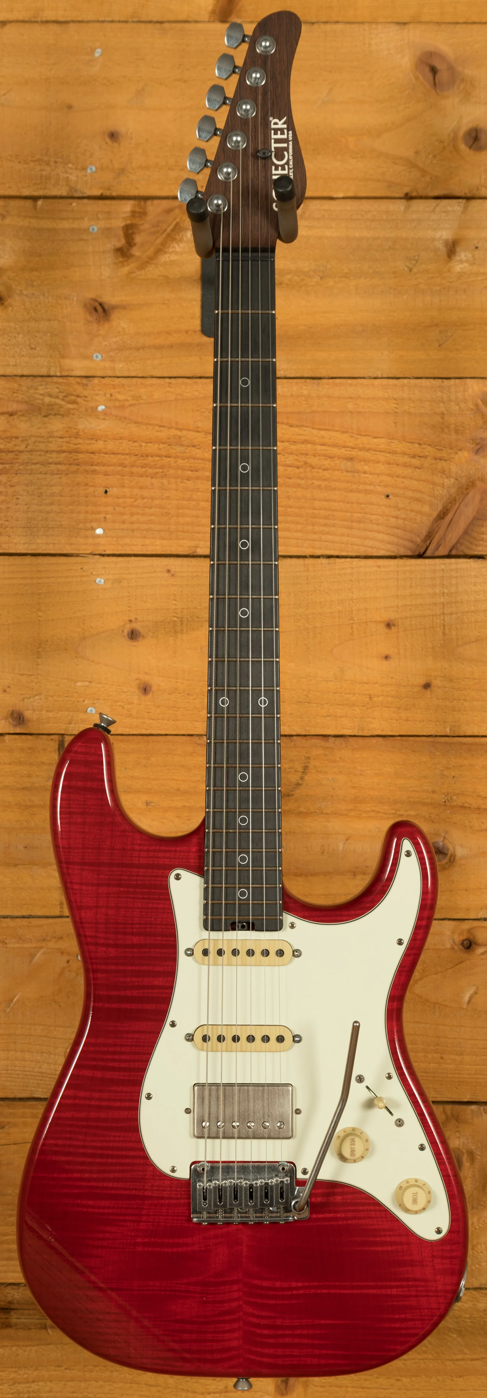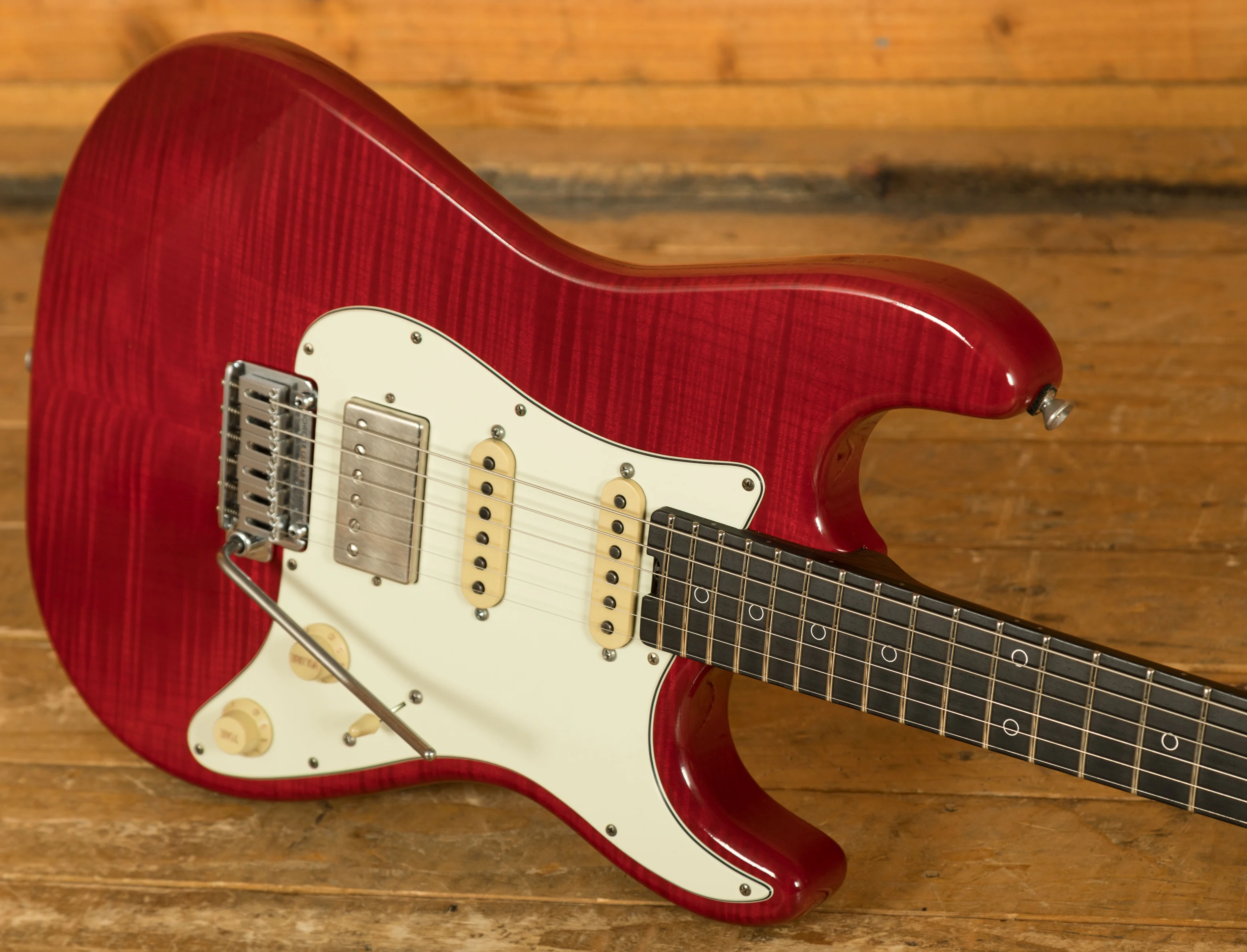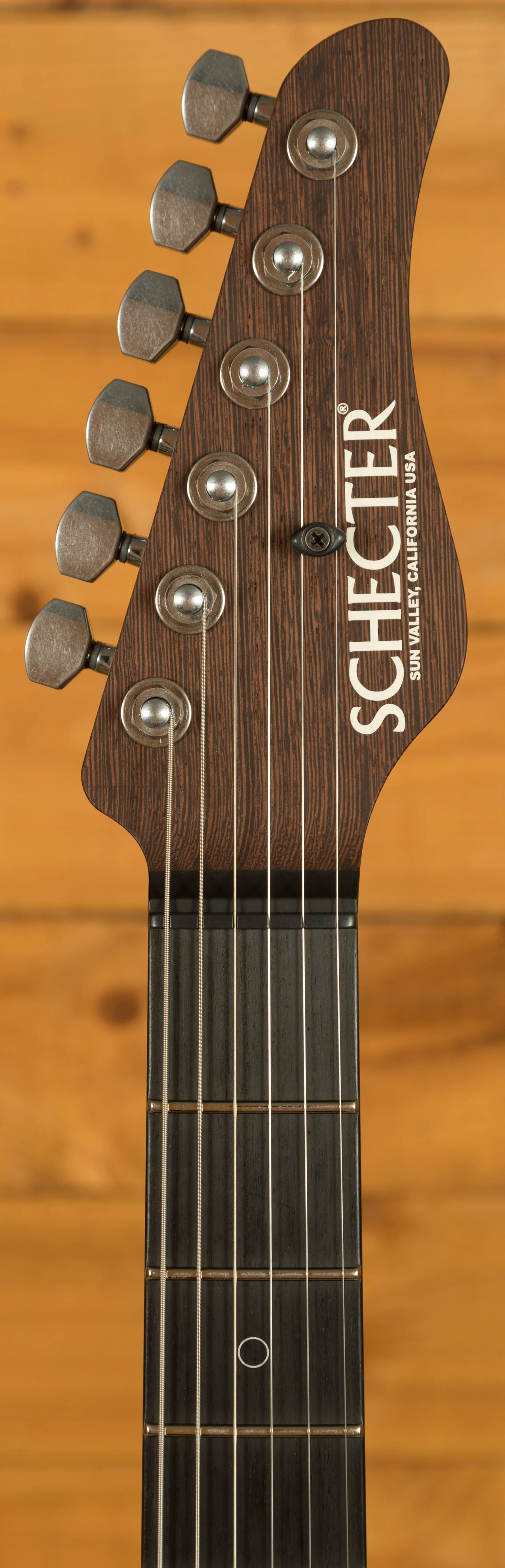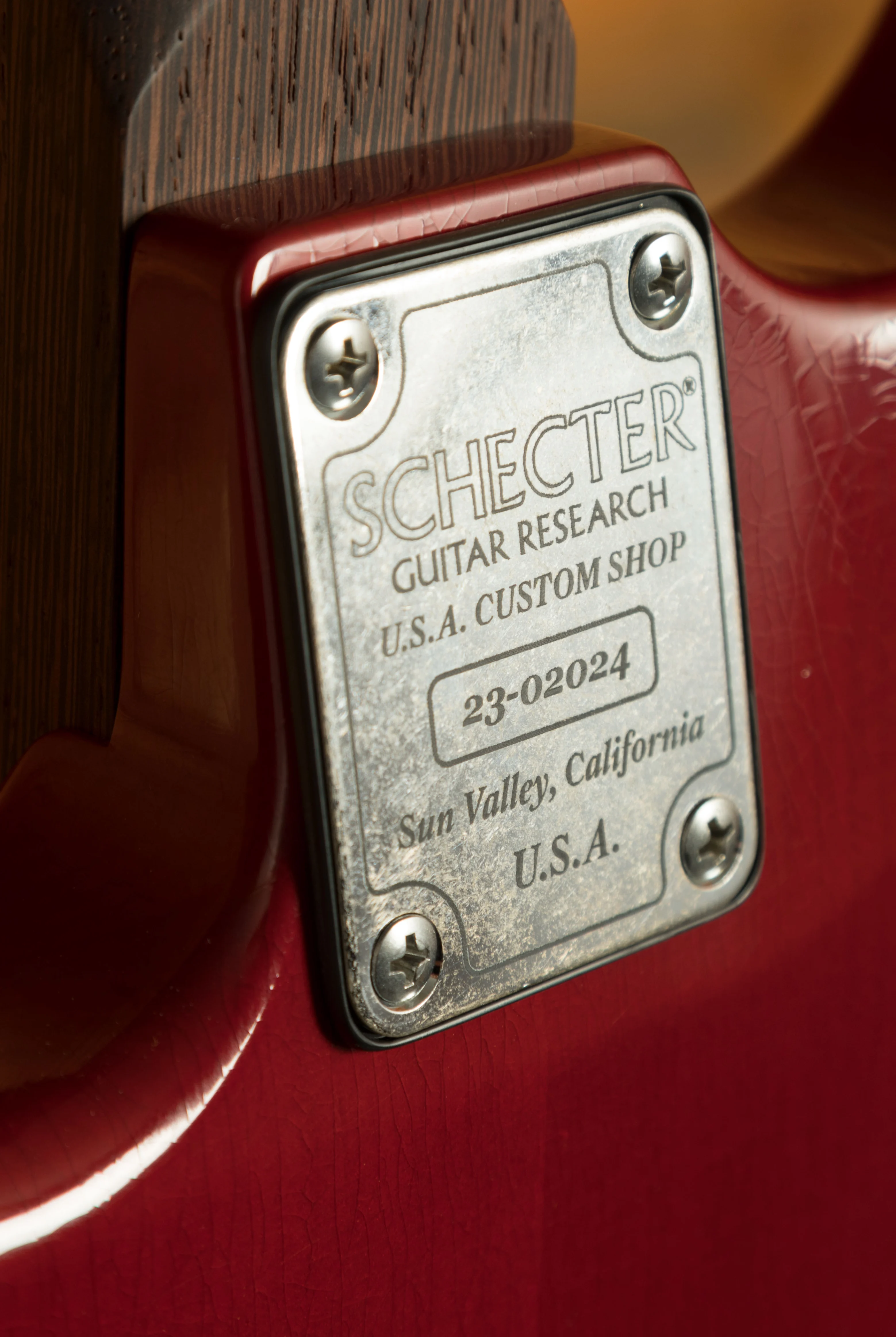 The neck is crafted from durable Wenge with a smooth satin finish and the comfortable Custom C shape. It is paired with an exquisite African Ebony fingerboard (14" radius) hosting 22 Jescar Premium German Silver Frets (6100 equivalent), completed with immaculate Custom Shop fretwork for superior performance across the 25.5" scale. The versatile HSS configuration utilises the custom-voiced NJ Atombucker (bridge) and Subatomic single-coils. Premium hardware includes Schecter/Hipshot Staggered Locking Tuners and the Schecter Fulcrem Trem. The master tone control is push-pull enabled for humbucker coil-splitting.