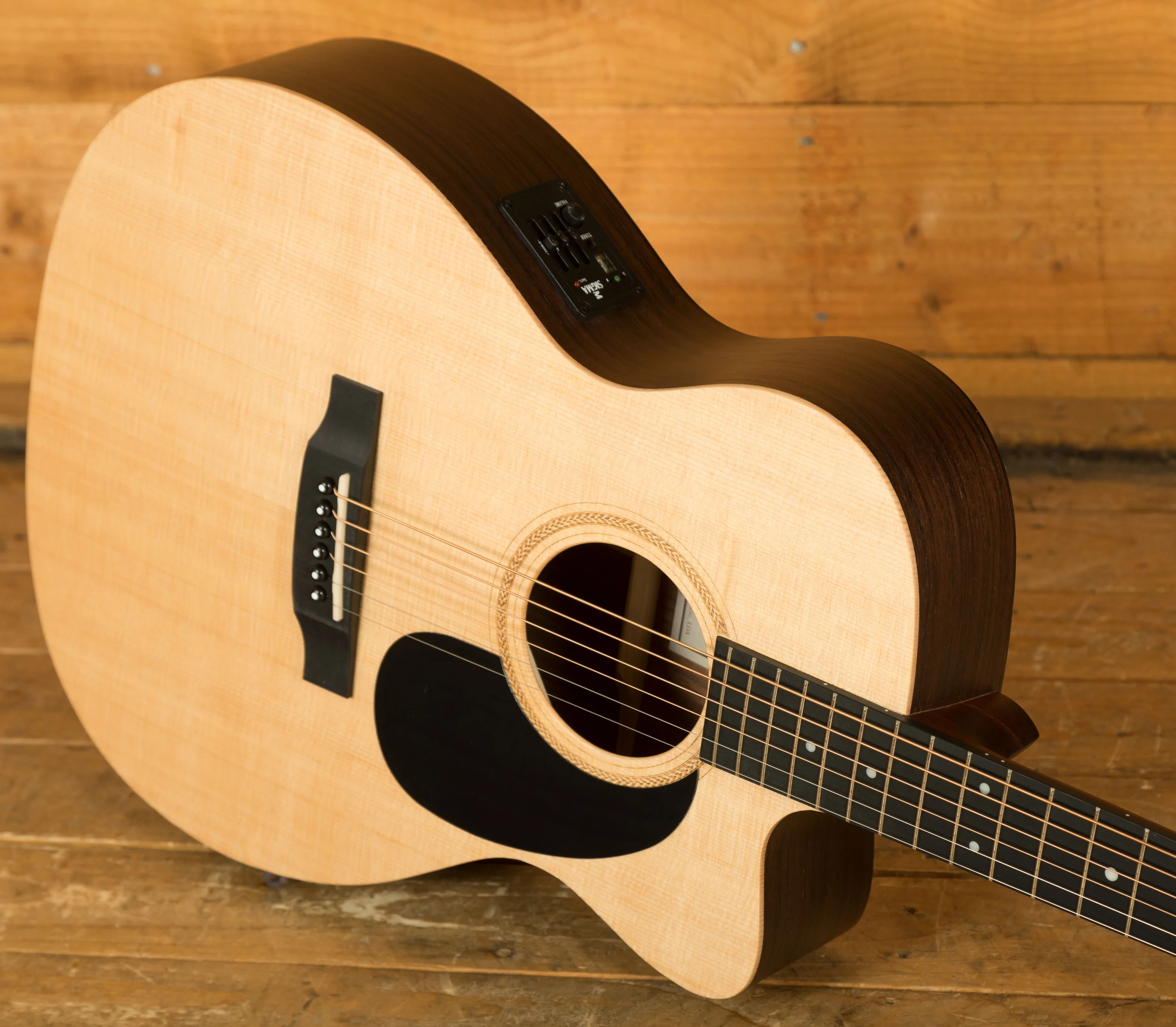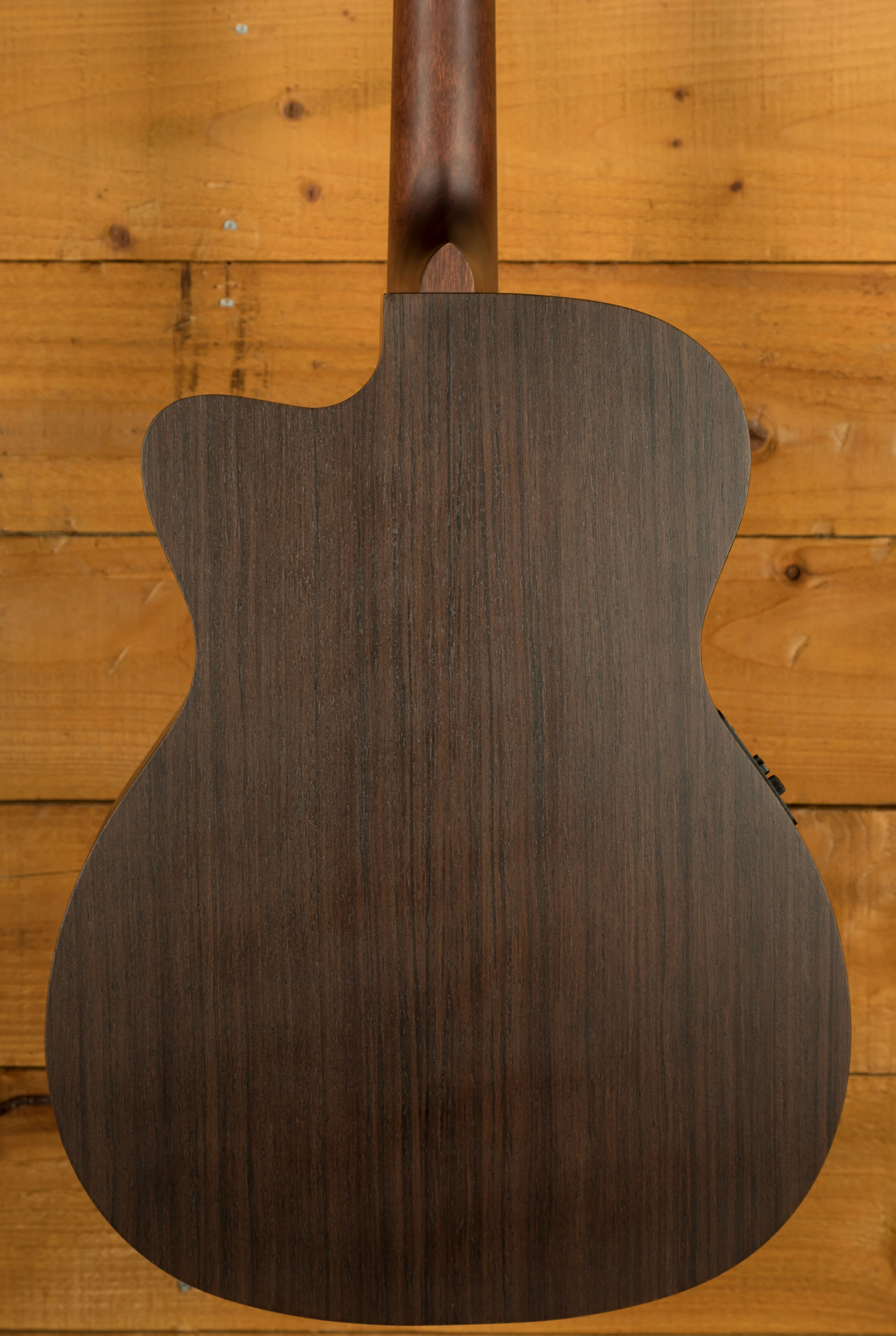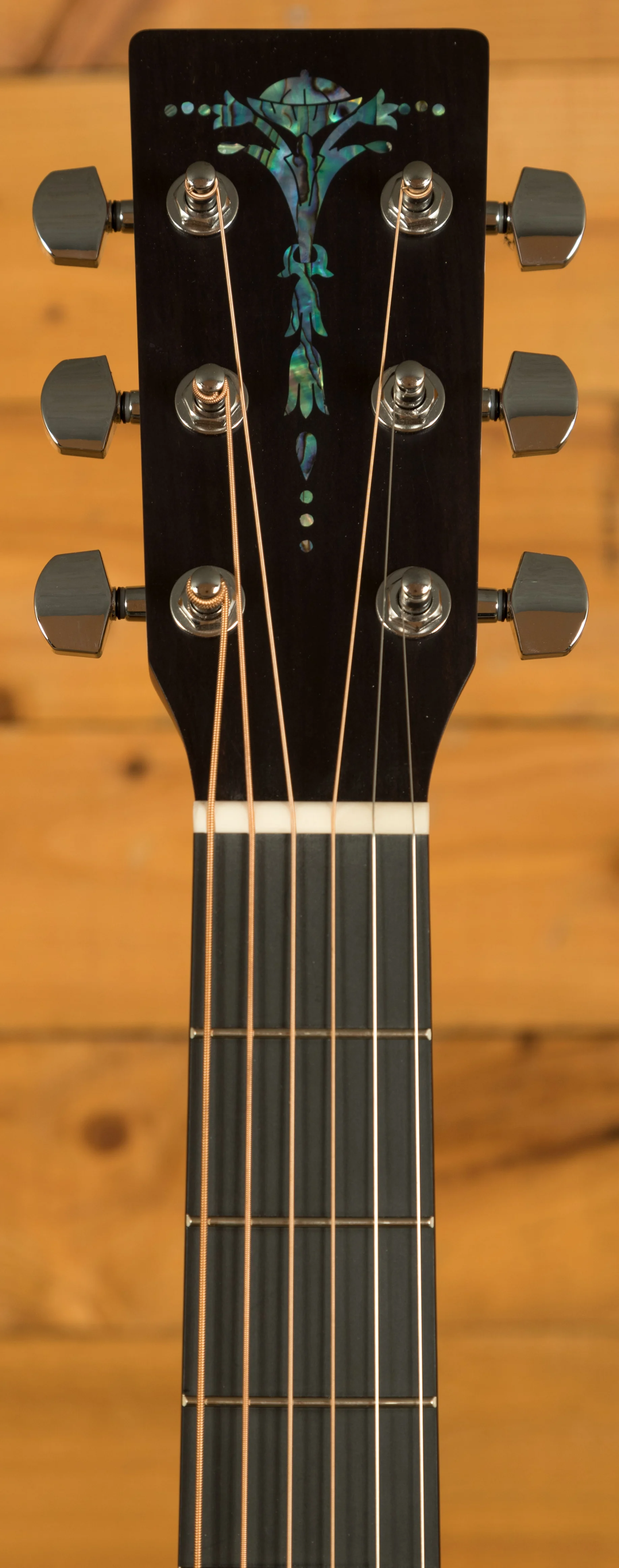 This model features a 000-14 fret cutaway body, providing easy access to the higher frets and a comfortable playing experience. The solid Sitka spruce top ensures a clear, resonant sound, while the tilia back and sides add warmth and balance to the tone. The open-pore satin finish enhances the guitar’s natural resonance, and the herringbone lasered rosette adds a touch of classic design around the soundhole.
