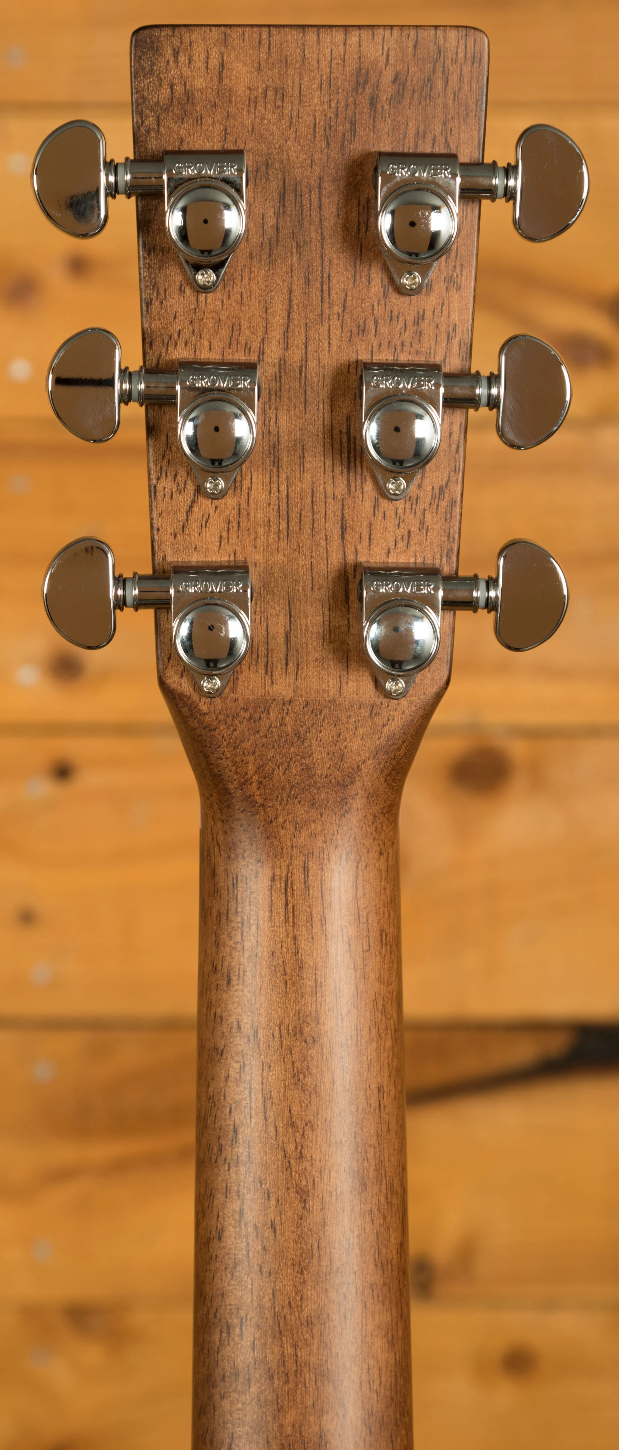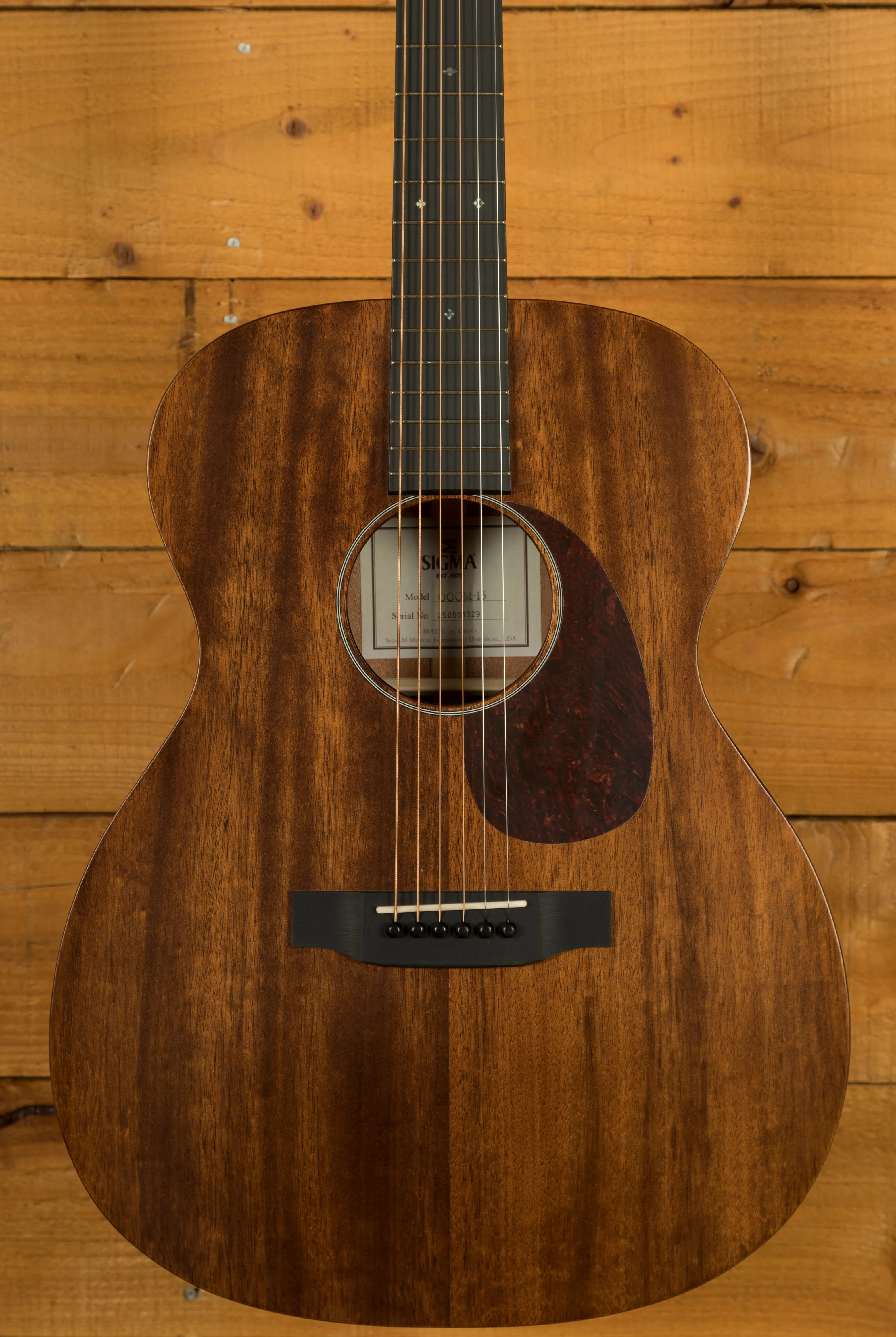 The Sigma 15 Series embodies the essence of this revered legacy, boasting a solid mahogany top, back, sides, and neck. Unlike its predecessors with brightly coloured tops, the 15 Series stands out with its full mahogany construction, offering a distinctive aesthetic and tonal character. Enhanced by a satin finish and a single ring rosette inlay, these guitars exude understated elegance, making them a standout choice for discerning players seeking both style and substance.