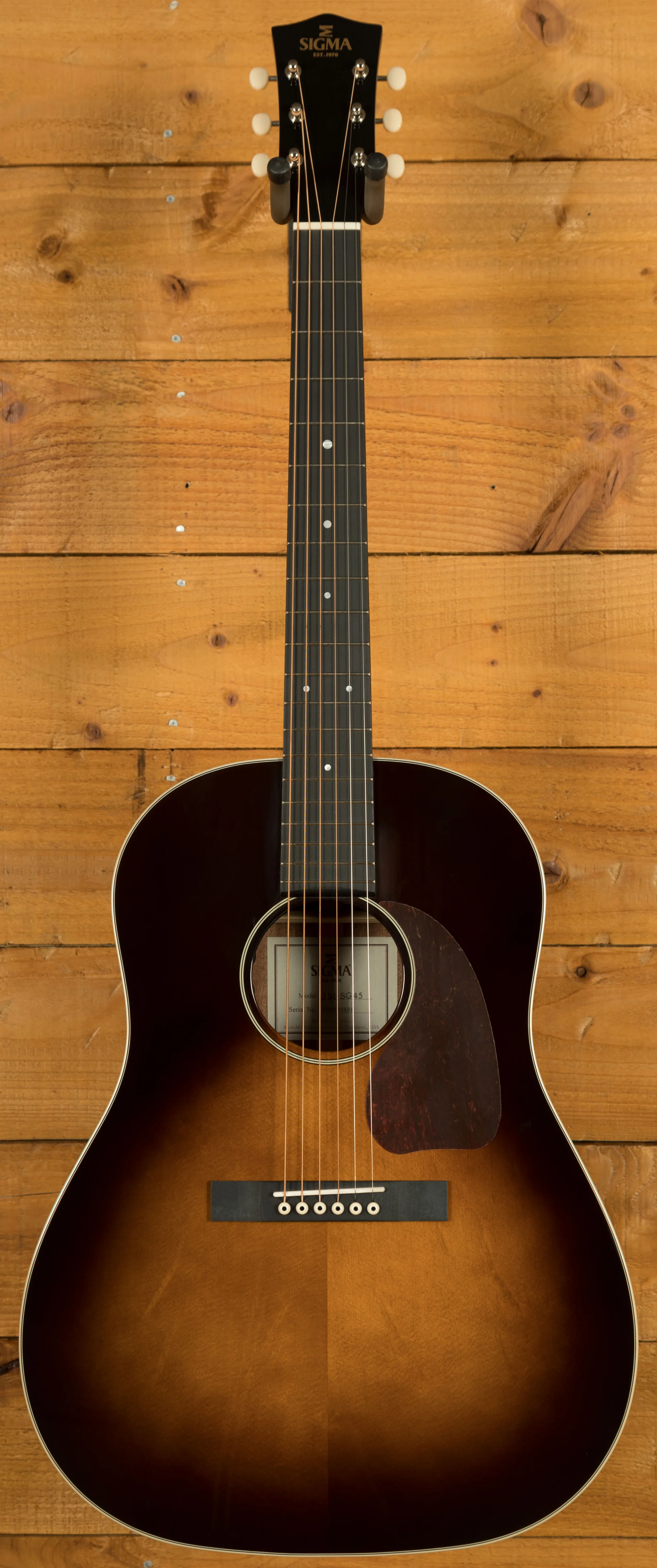 Additional features of the Sigma JM-SG45 include a two-way truss rod for easy neck adjustments and Fishman Sonitone electronics for excellent amplified sound. The guitar comes with a polished gloss finish in sunburst and a softshell case (SSC-D) for protection. With D'Addario EXP16 strings, the Sigma JM-SG45 is ready to deliver exceptional performance right out of the case.