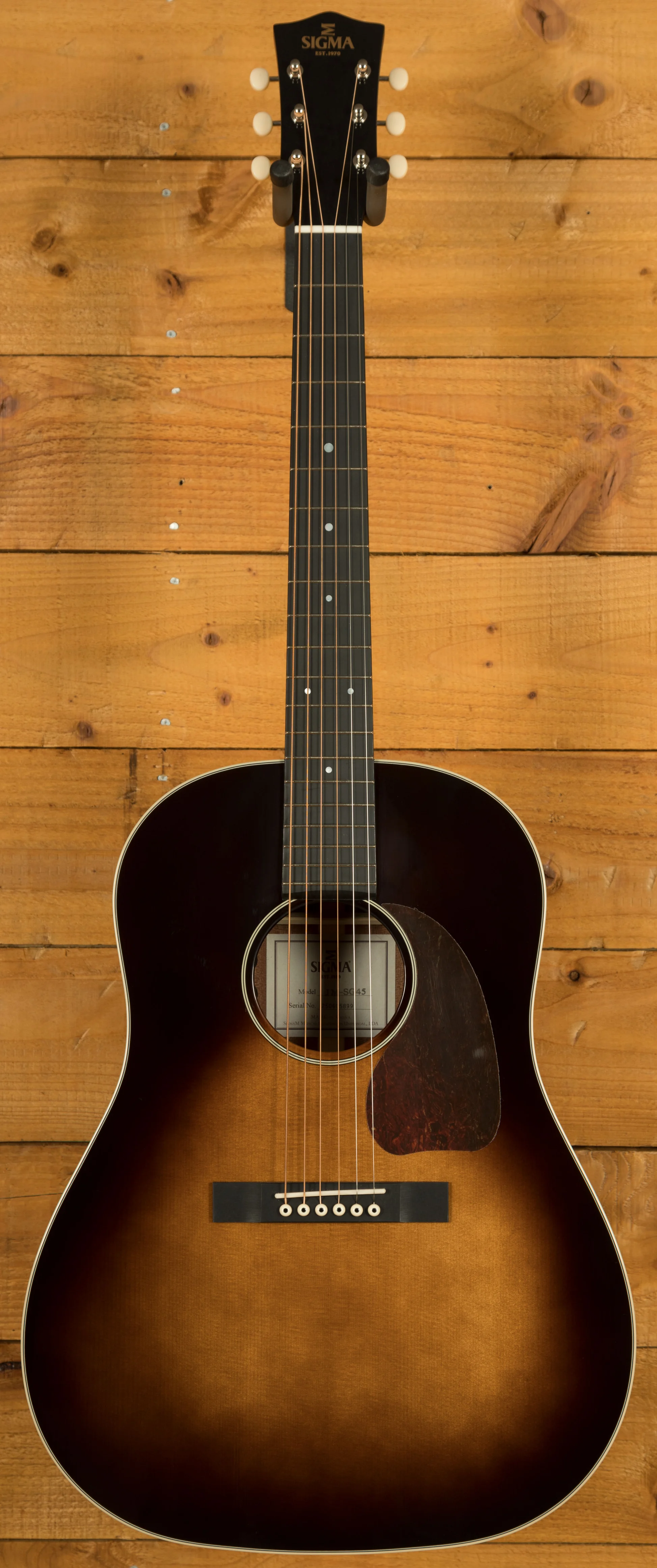 Introducing the Sigma SG Series, renowned for its unique design and superior craftsmanship. Each guitar features a select solid spruce top, ensuring excellent sound quality and durability. The series includes extravagant pickguards and other fine attributes that showcase Sigma's commitment to excellence. Every guitar in this series is equipped with pickup systems and strung with D'Addario strings, providing a perfect blend of acoustic and amplified sound.