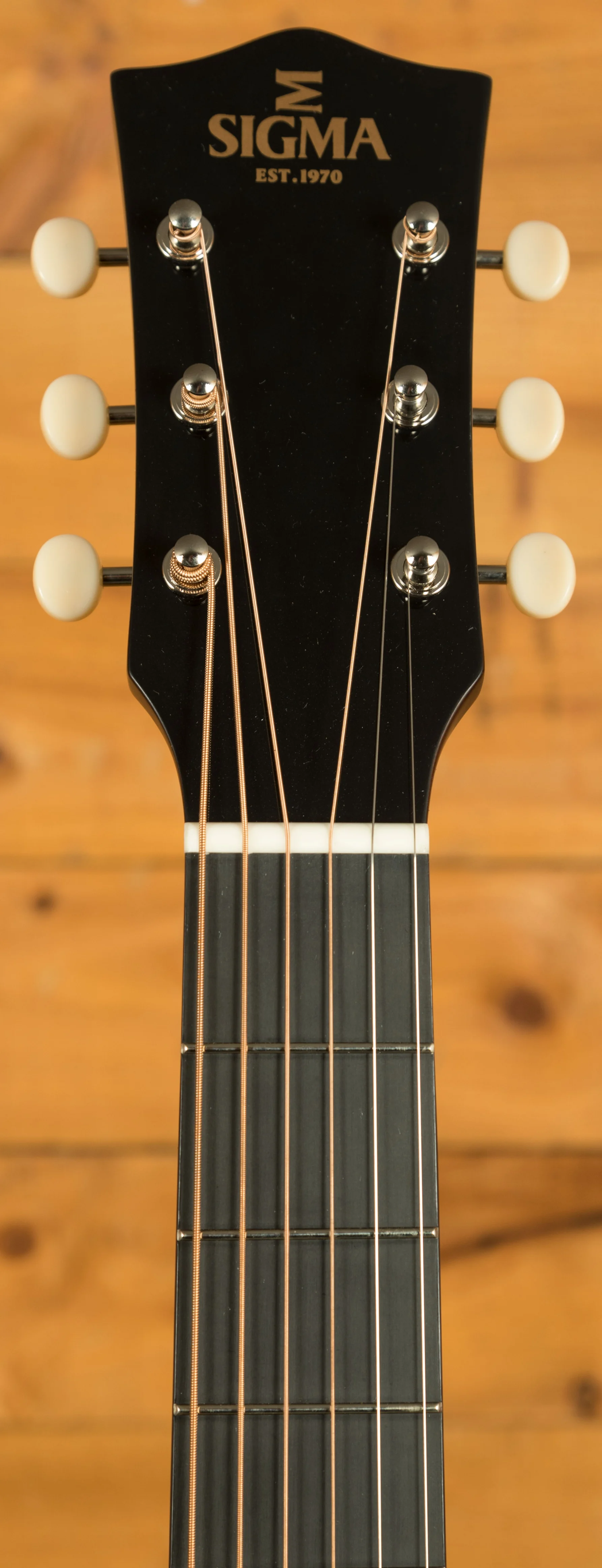 The Sigma JM-SG45 is a standout model in the SG Series. It boasts a D-14 fret, slope shoulder body size, and a solid Sitka spruce top, which contribute to its rich, resonant tone. The mahogany back and sides, along with a low-profile mahogany neck, offer a comfortable playing experience. High-quality components like the bone nut and saddle, micarta fingerboard and bridge, and Grover nickel open-gear tuning machines with ivoroid knobs ensure reliability and precision.
