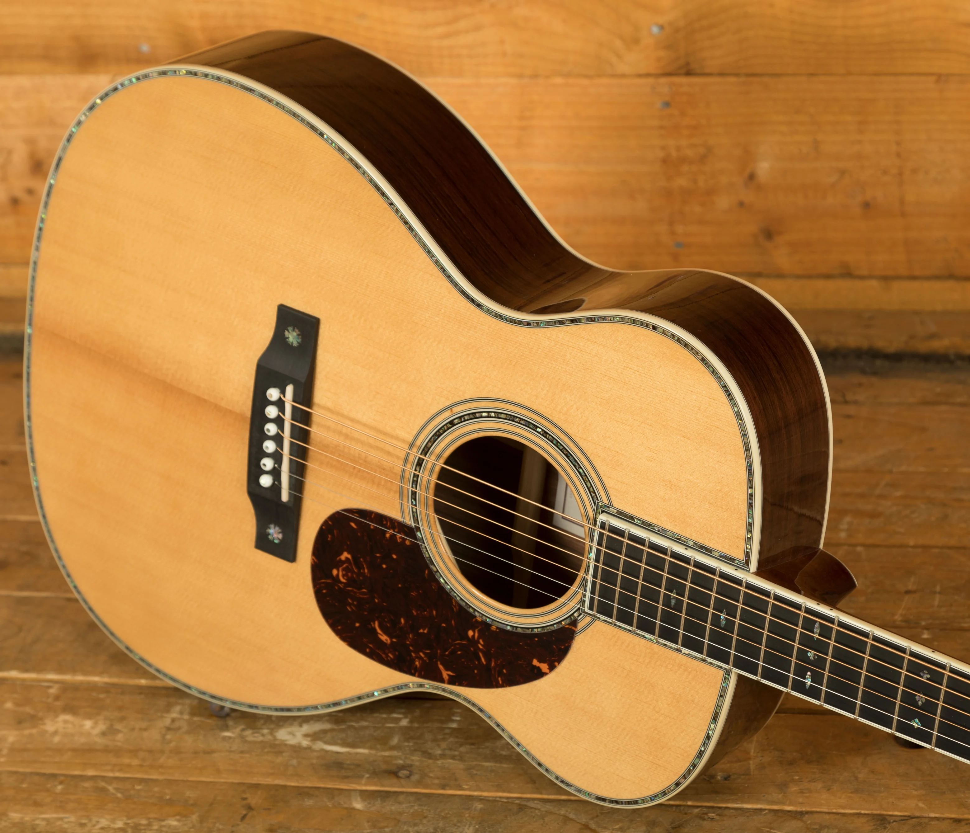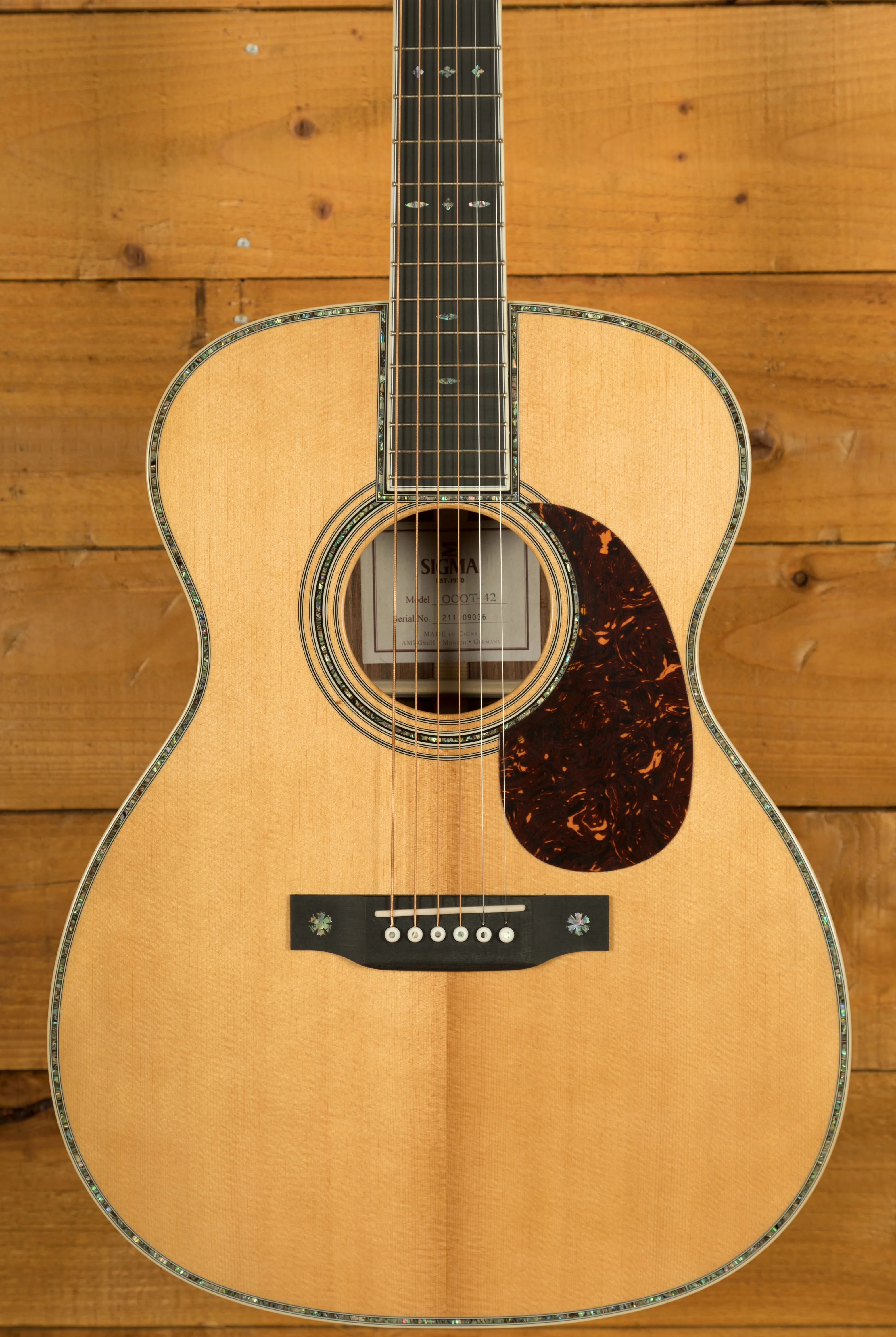 The 000T-42 is distinguished by its 000-14 fret body size, which delivers a balanced and focused sound ideal for fingerstyle players, while the ultra-thin high-gloss finish enhances both resonance and aesthetic appeal. The abalone inlay on the fretboard and rosette adds a luxurious touch, making this guitar a standout in any collection. For players with refined taste, the 000T-42 is crafted to exceed expectations.