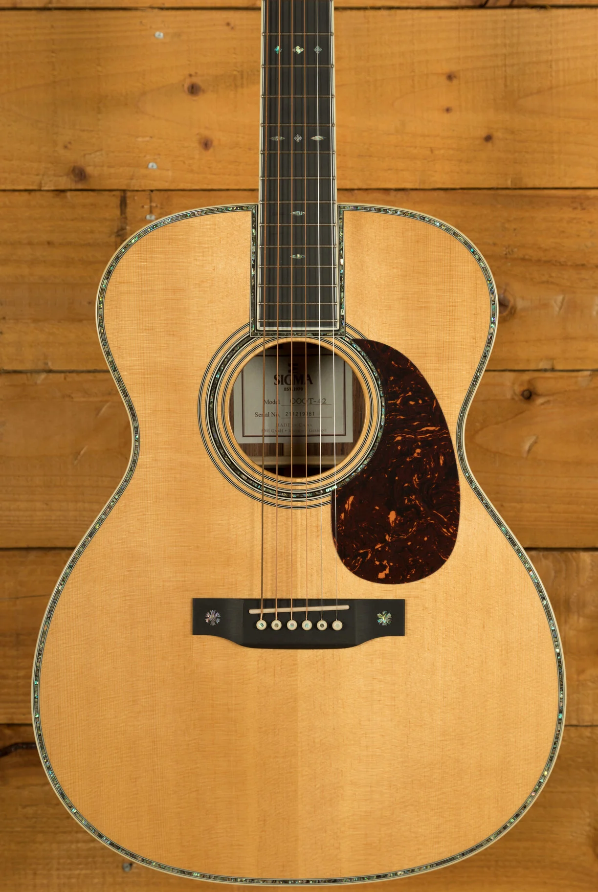 The Sigma 000T-42 from the Standard Series is a testament to the fine art of guitar craftsmanship, designed for players who demand both exquisite style and exceptional sound. Featuring a hand-selected solid Sitka spruce top, this guitar is as visually stunning as it is sonically impressive, offering a rich tonal palette with the added beauty of extensive abalone inlay.